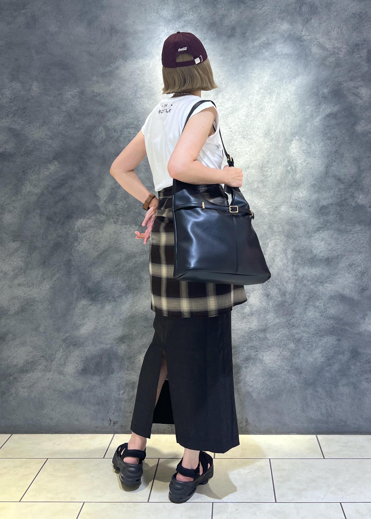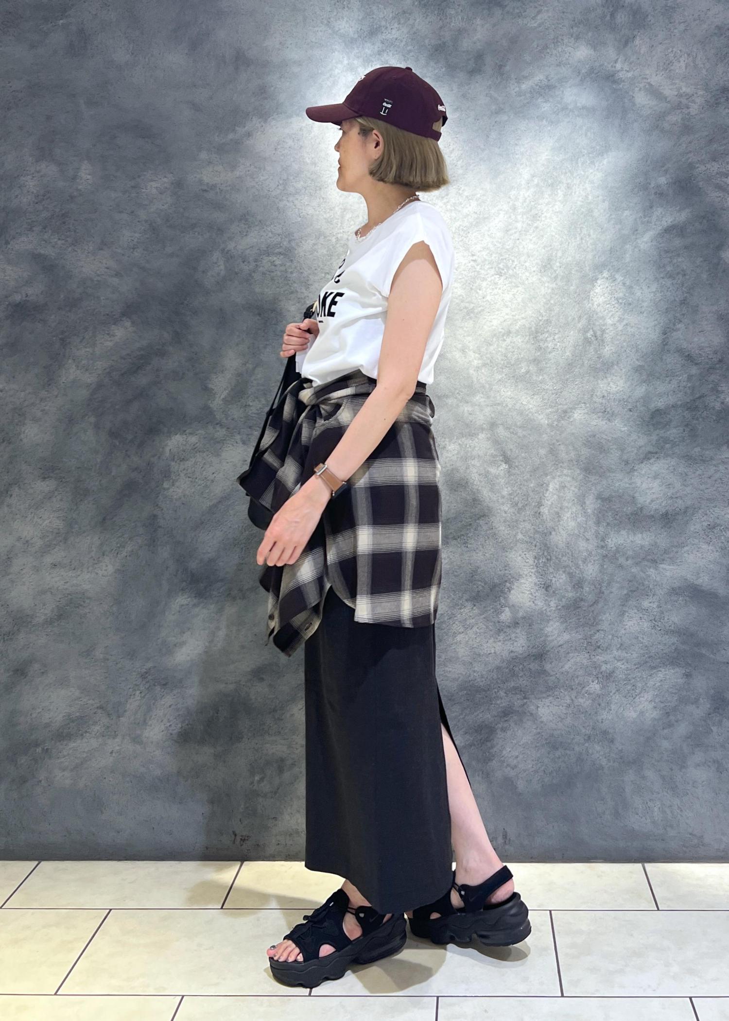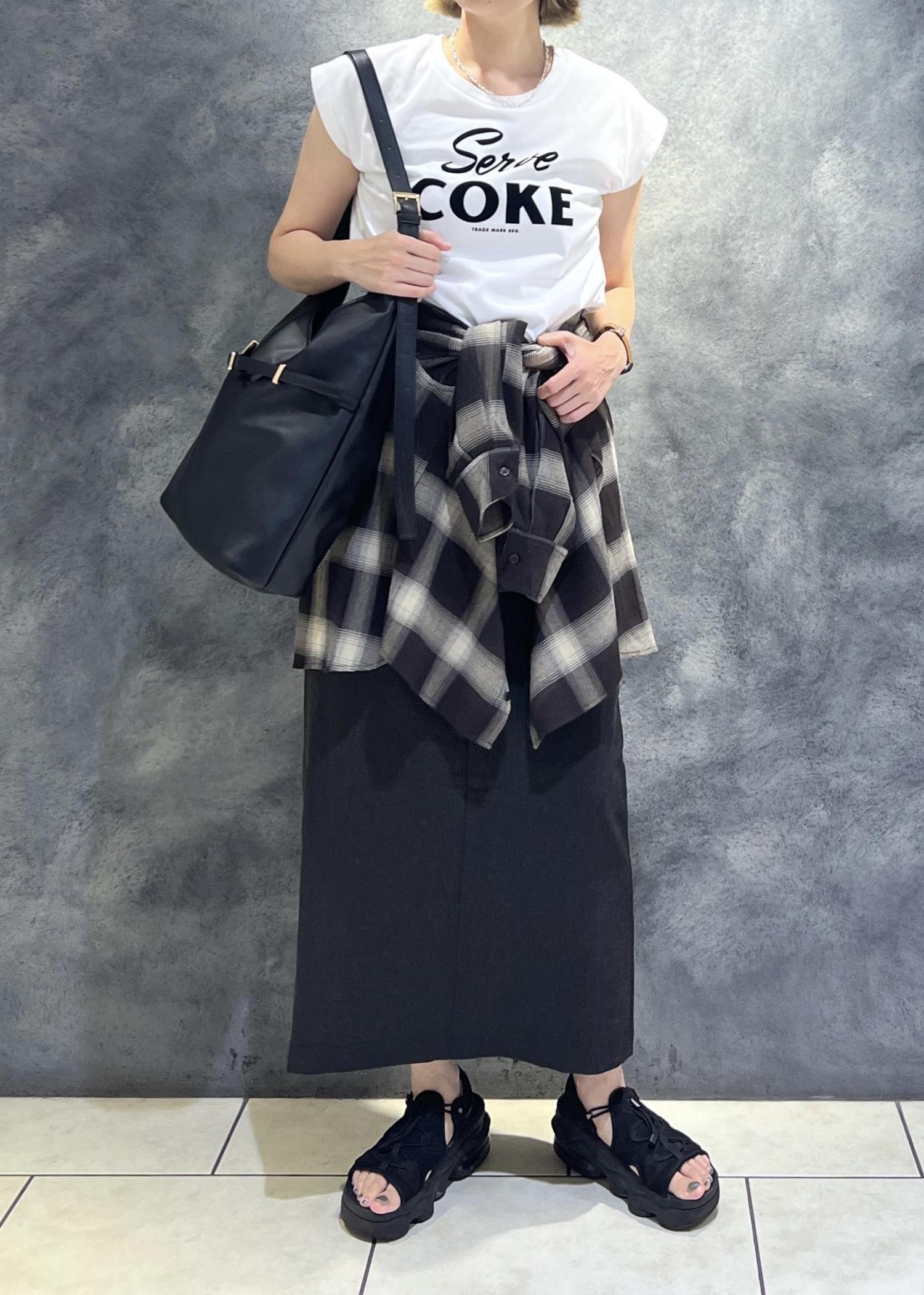 モノトーンでIラインシルエットにすることにより大人が安心のTシャツコーデに仕上げました。