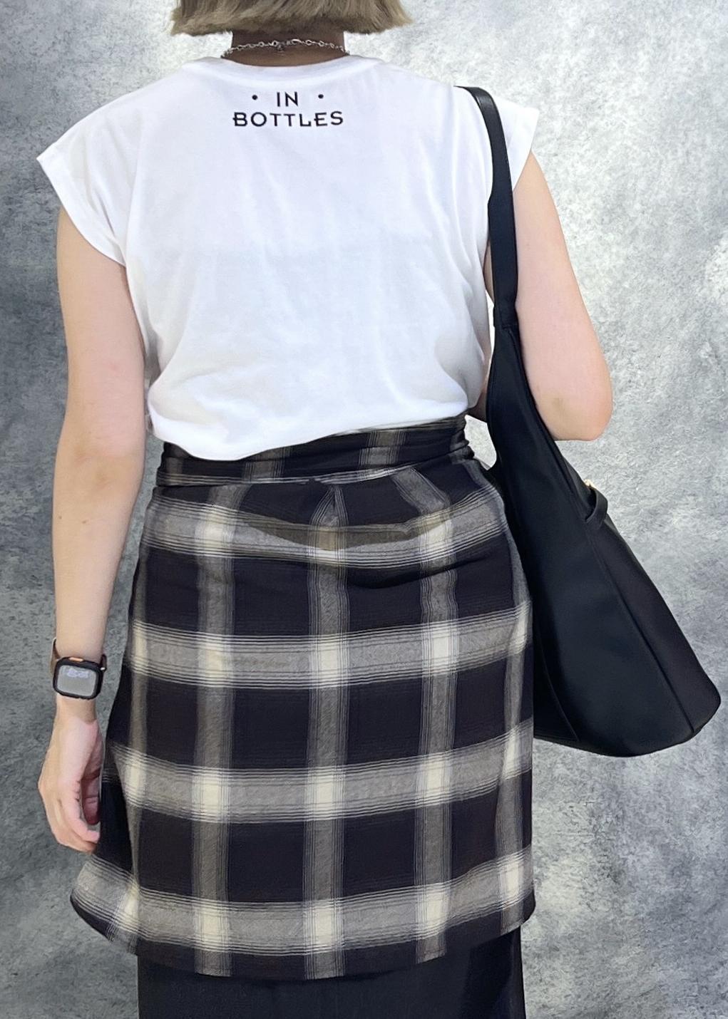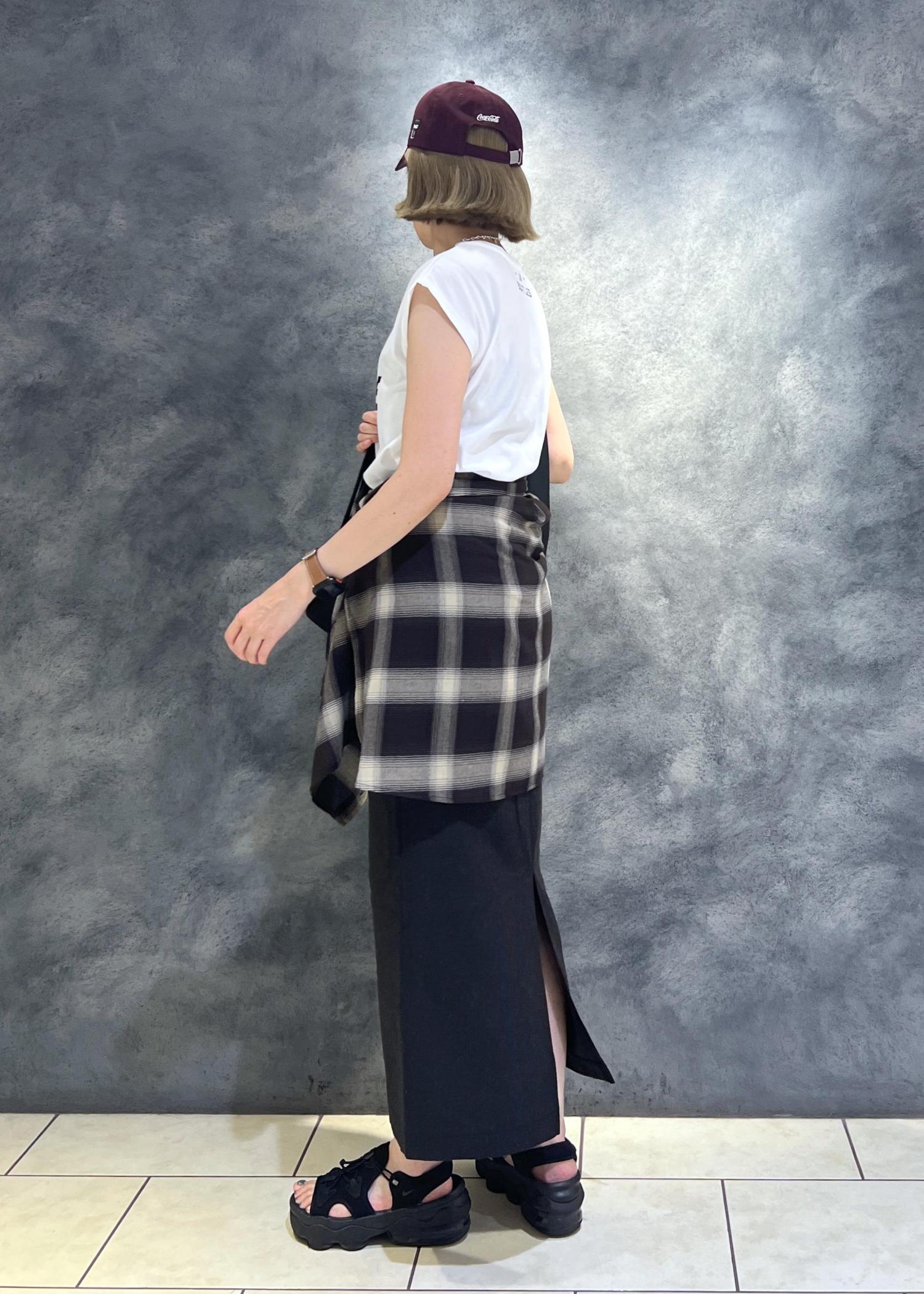 Tシャツとチェックだなんて間違ったらカジュアルすぎてしまうところですが、