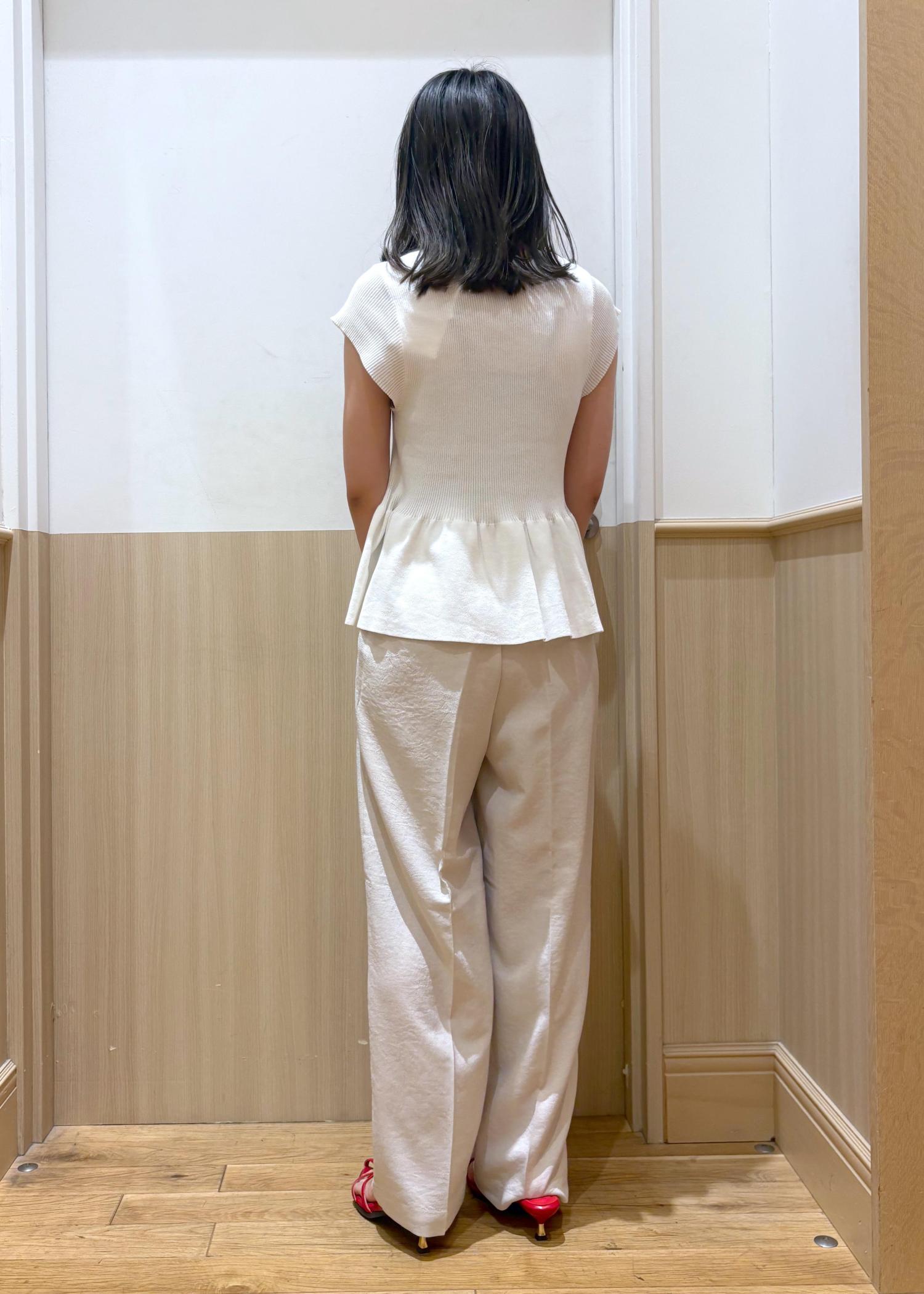 丈は156センチで腰くらいで、おへそ上くらいからパプラムの広がりがあります! -