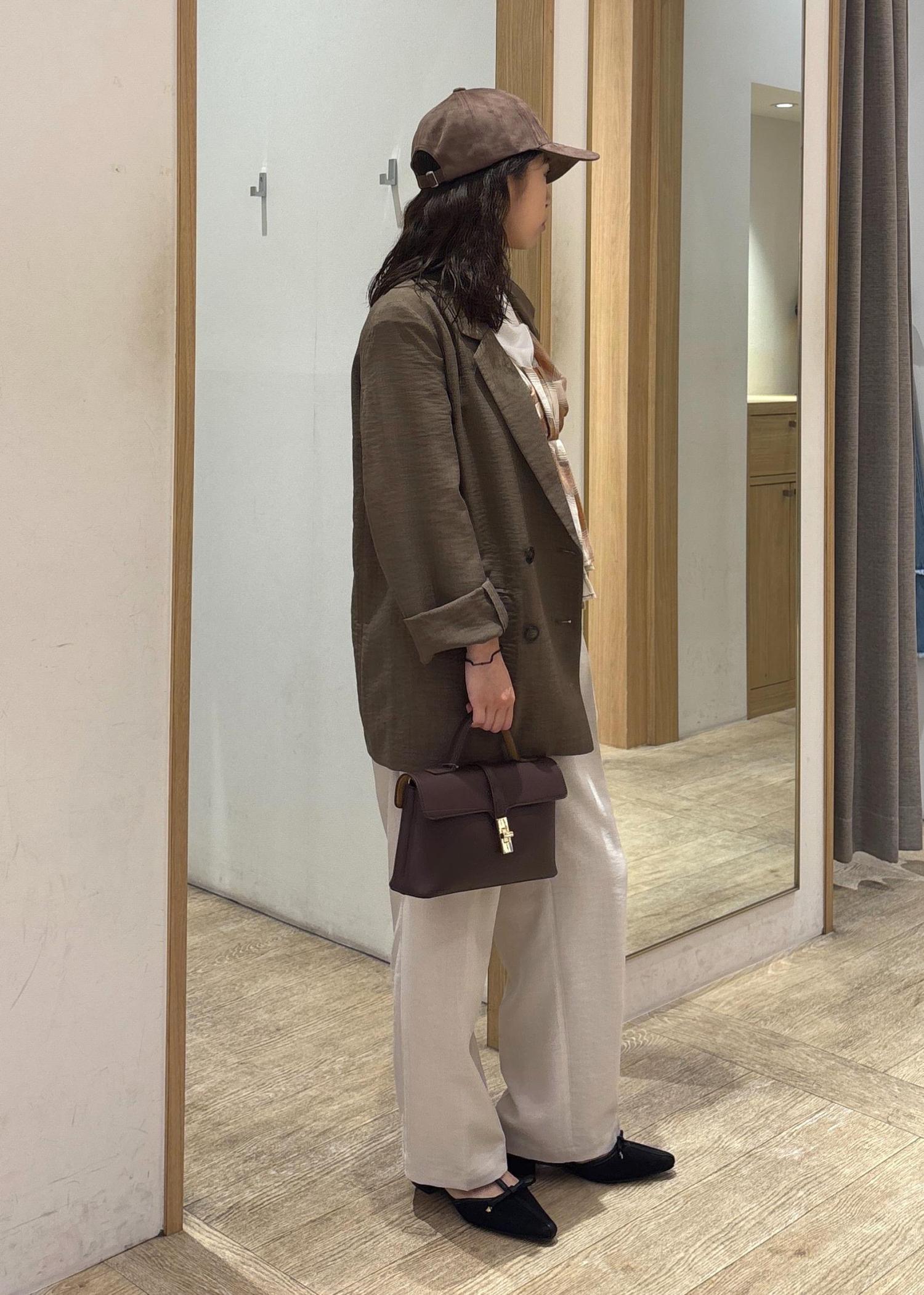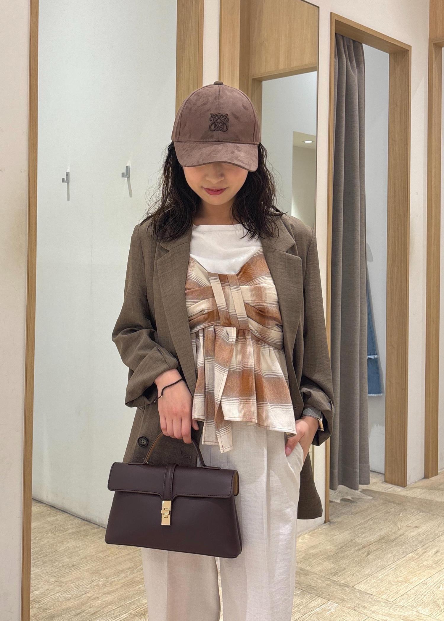 スエード調の上品なデザインで、キャップですがカジュアルすぎずフェミニンな印象に☺︎