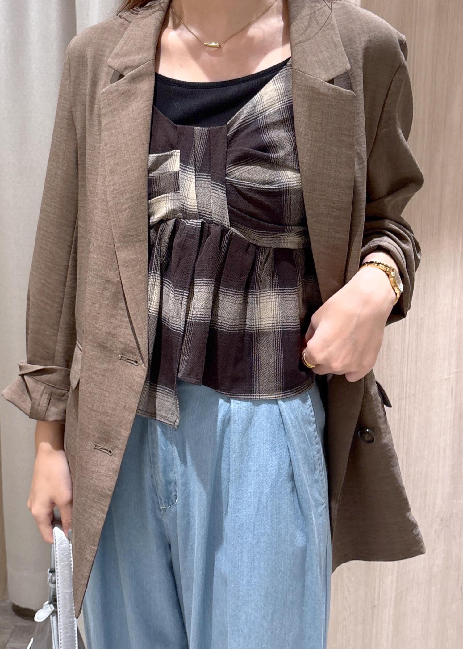 チェックのビスチェはさりげないリボンが可愛いアイテムです。