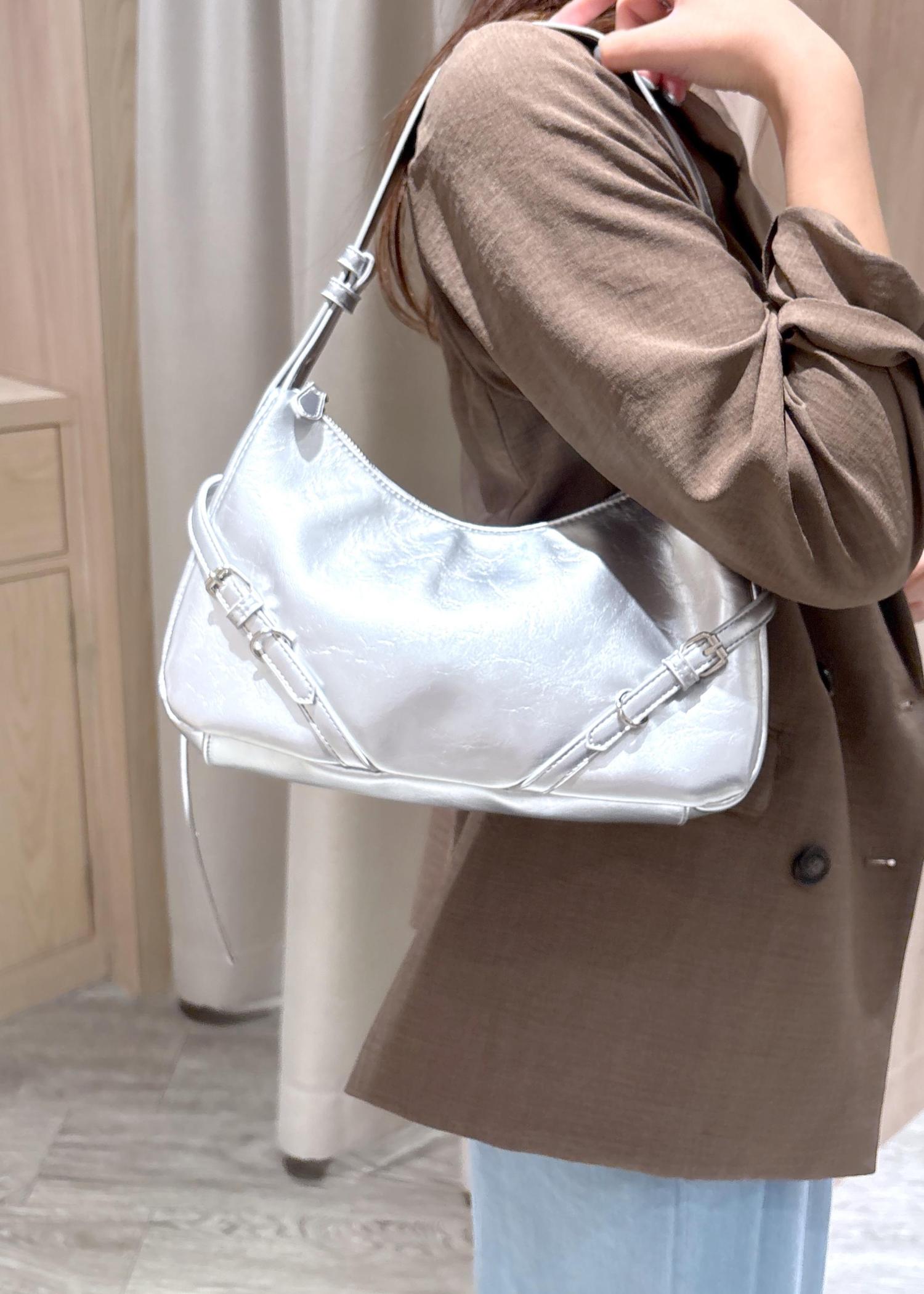 アウトレットVISフロントベルトショルダーバッグシルバー / F¥2,768レビュー500mlのペットボトルが余裕で入るサイズです。