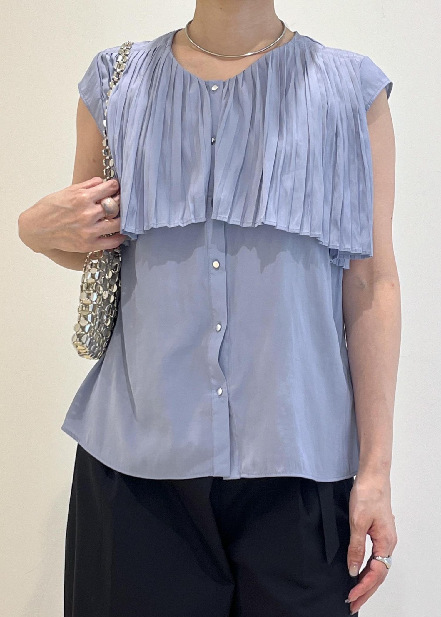 アウトレットVISプリーツデザインブラウス/通勤対応サックス / F¥2,745レビュー身長158㎝でFサイズ着用。