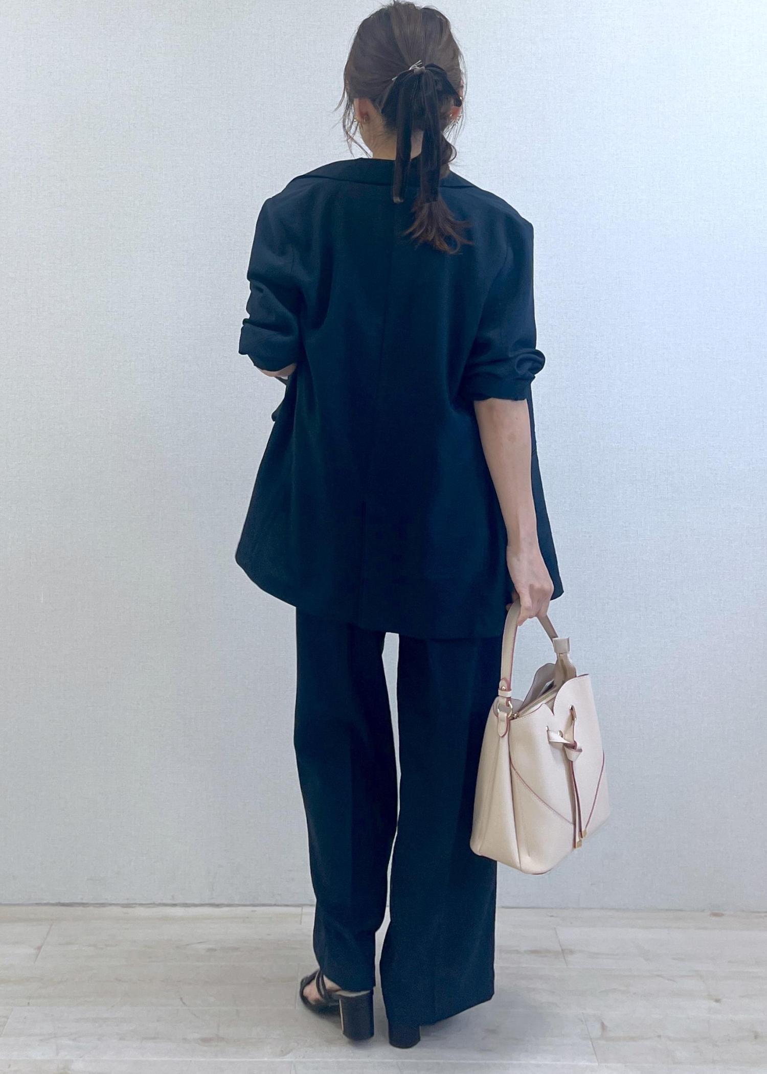 VIS【美easy】リラックスジャケット/セットアップ対応・洗えるネイビー / S¥7,909レビュー152cmでSサイズ着用し、着丈はお尻が隠れるくらいの長め丈。ややオーバーサイズでゆるっとリラックス感のあるシルエット。リネンライク素材で、サラッと着られて夏の冷房対策にも◎長い時期お召しいただけるので、これからの羽織りとしてお勧めです。