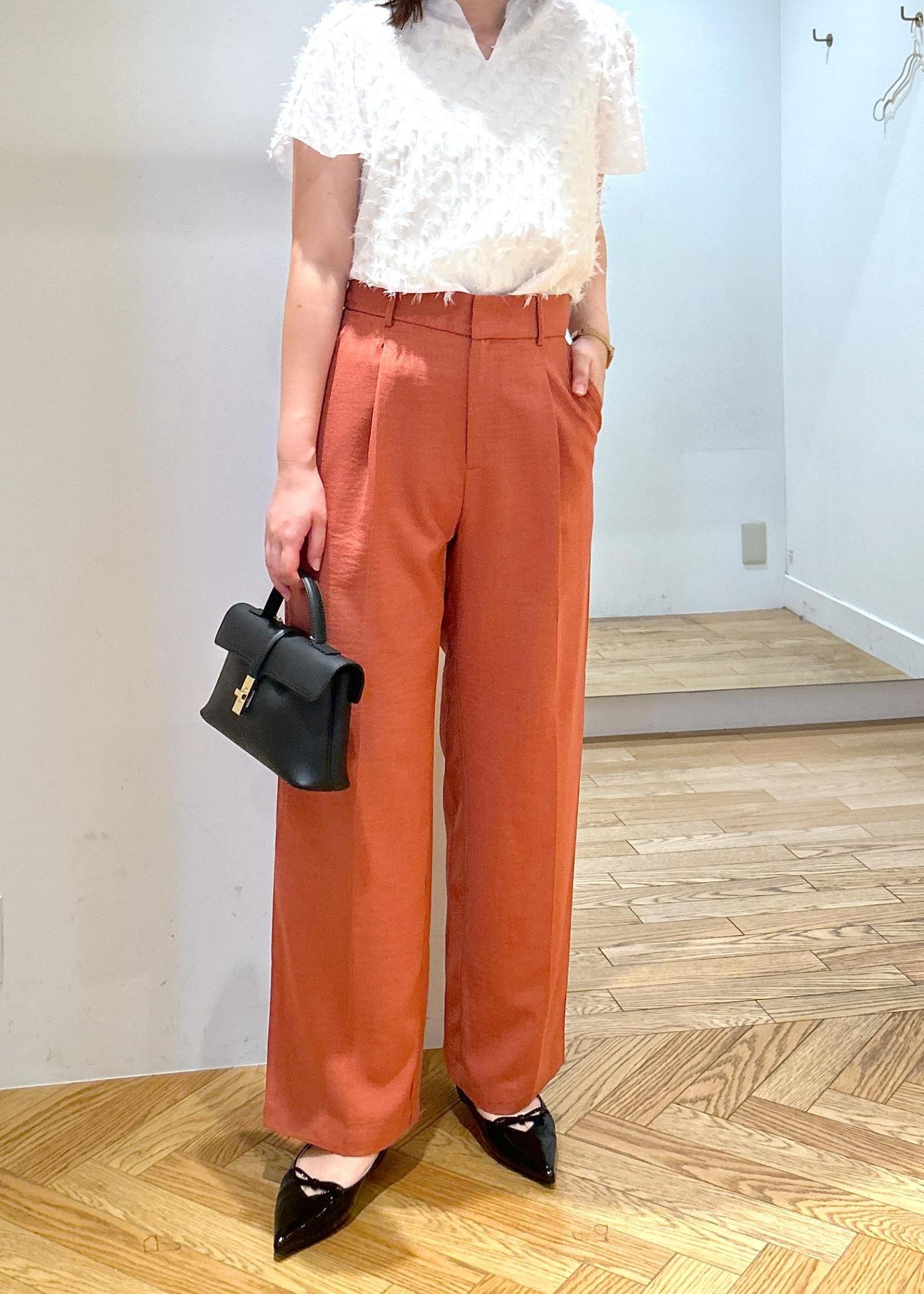 ピンクよりのオレンジカラーのパンツを主役にオンオフ兼用コーデ♡