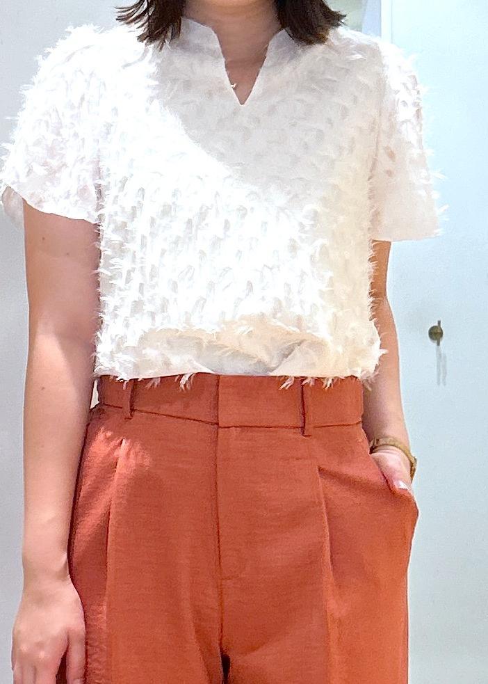 ジャガードのブラウスと合わせて少しフェミニンな雰囲気にしました♪