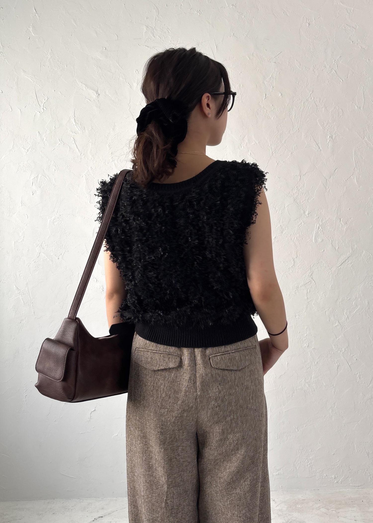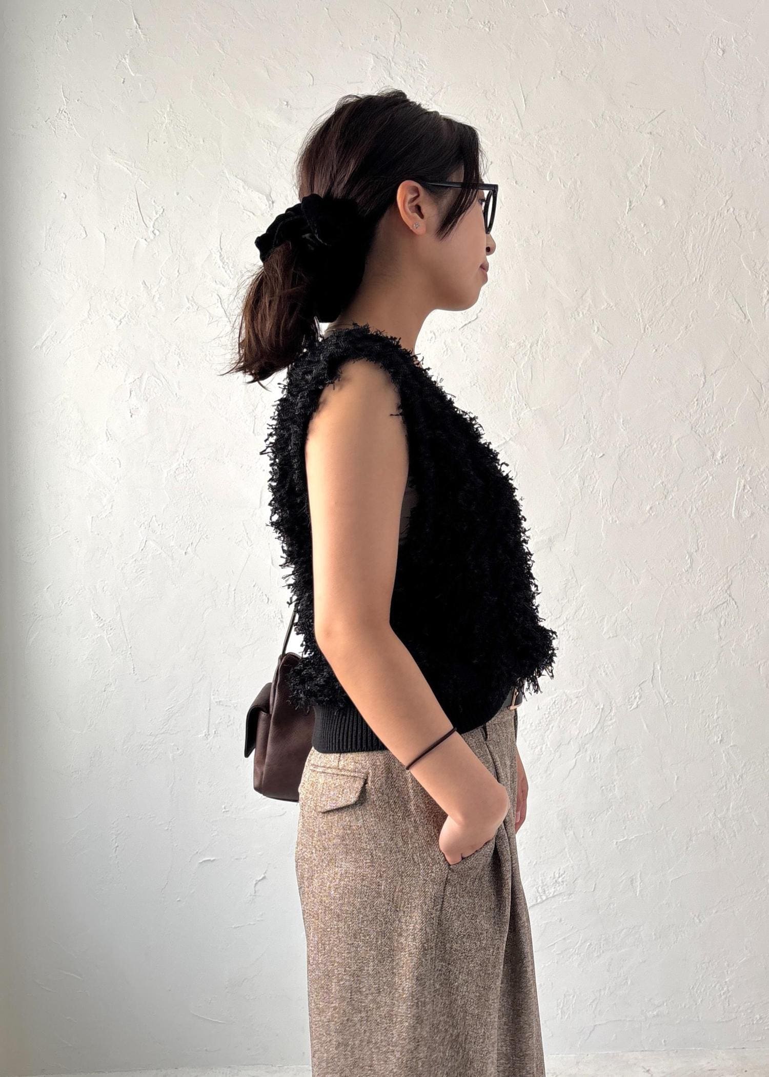 VIS【2WAY】フリンジニットベストブラック系 / F¥5,929レビュー152センチで腰にかかる丈感です。