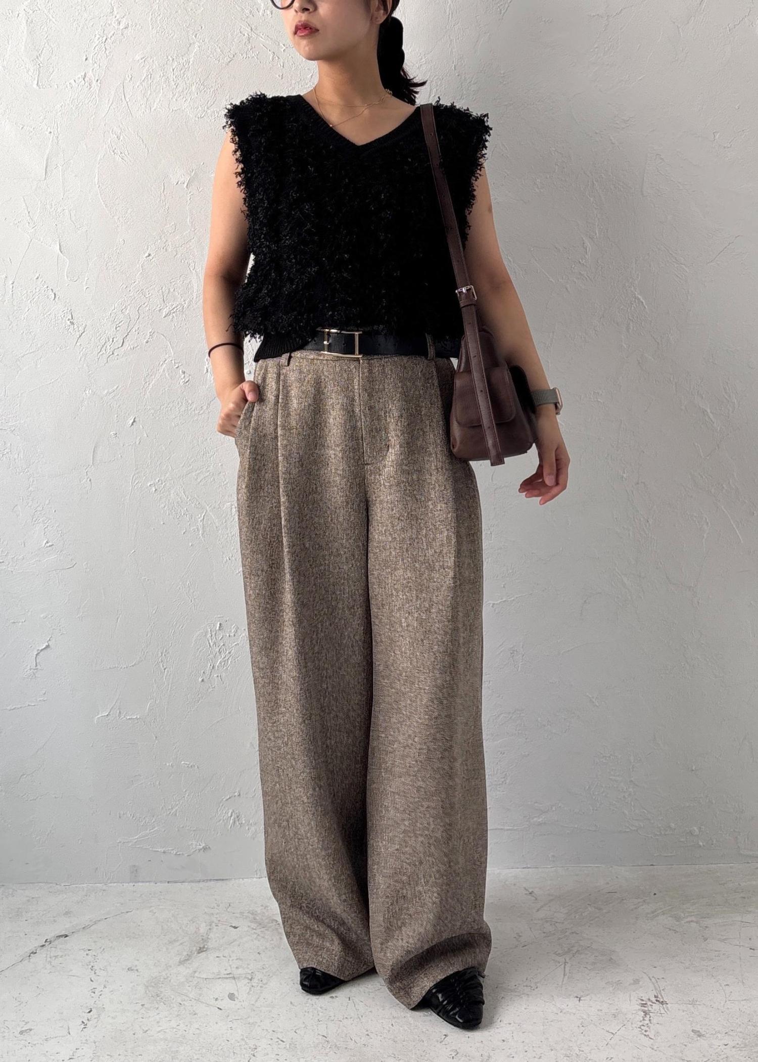毛足が短くボリュームが出にくいトップスなら低身長ウェーブもボリューミーにならず着やすい!
