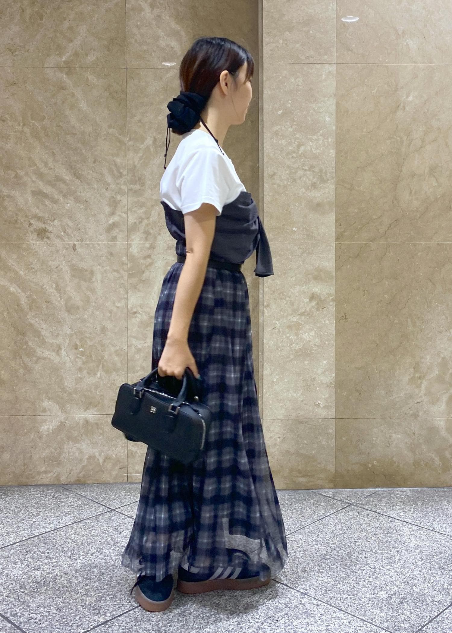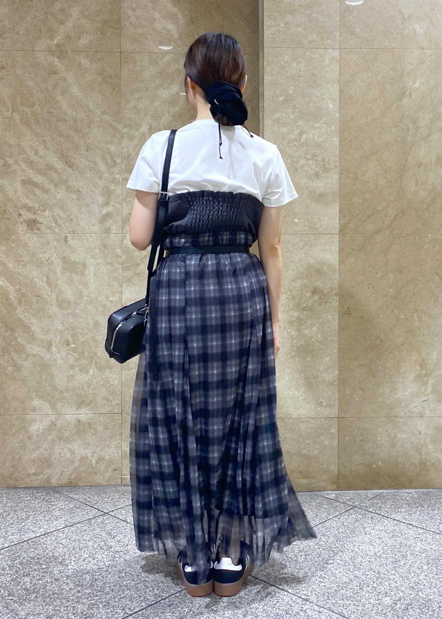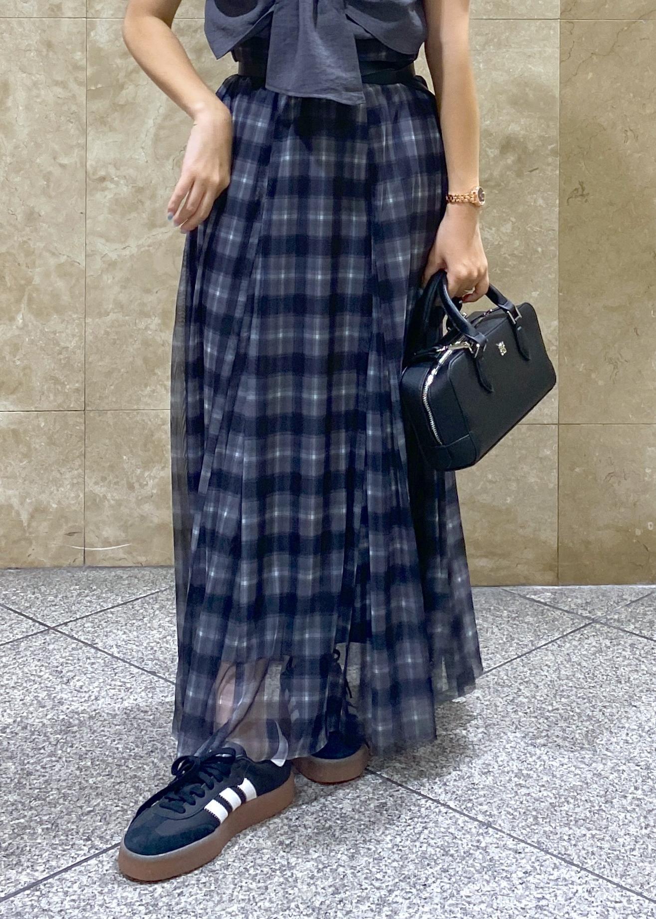 VIS【洗える】チュールプリントチェックスカートブラック系 / F¥4,612レビュー150cmでかかとに当たるぐらいの丈感でした。