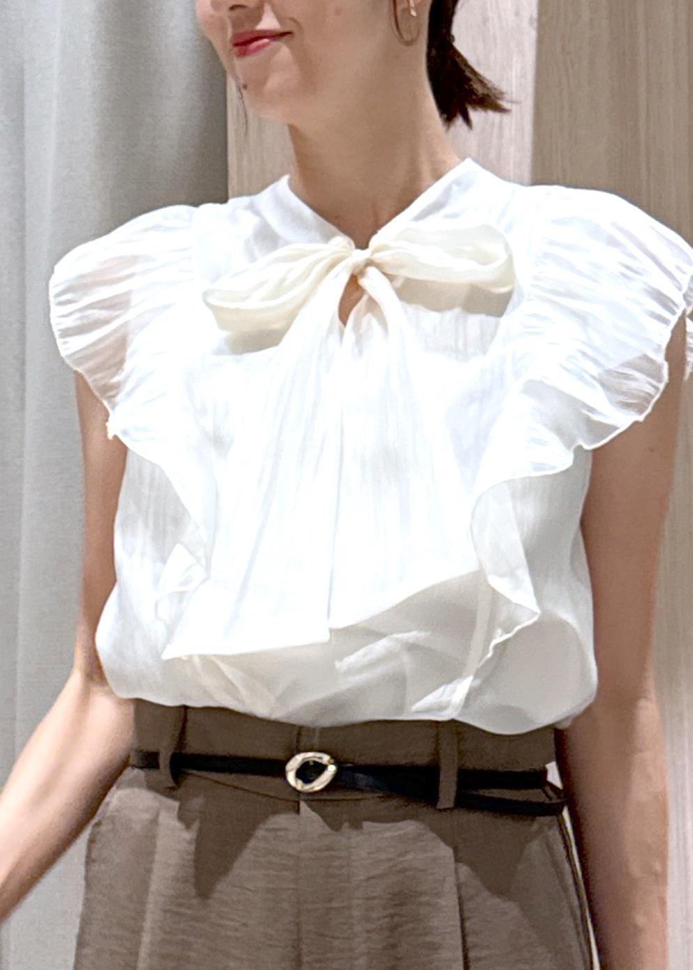 VIS【店頭人気】主役級!華やぎシアーシャイニーボウタイフリルブラウス【前後2WAY】【洗える】キナリ / F¥5,489レビュー身長166センチでお尻に掛かる長さでした。