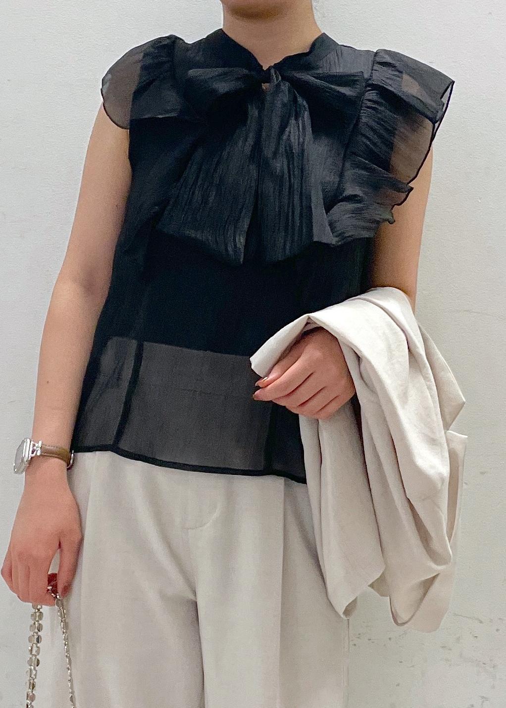VIS【店頭人気】主役級!華やぎシアーシャイニーボウタイフリルブラウス【前後2WAY】【洗える】ブラック / F¥5,489レビュー2wayでも使えるリボンブラウス.⋆