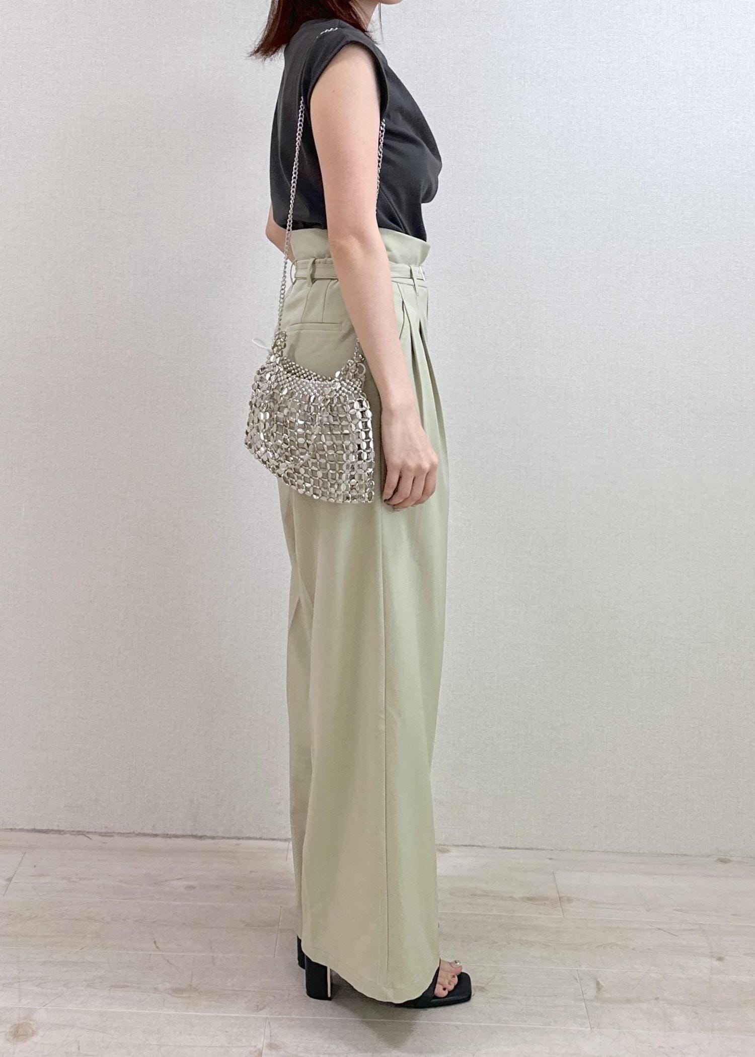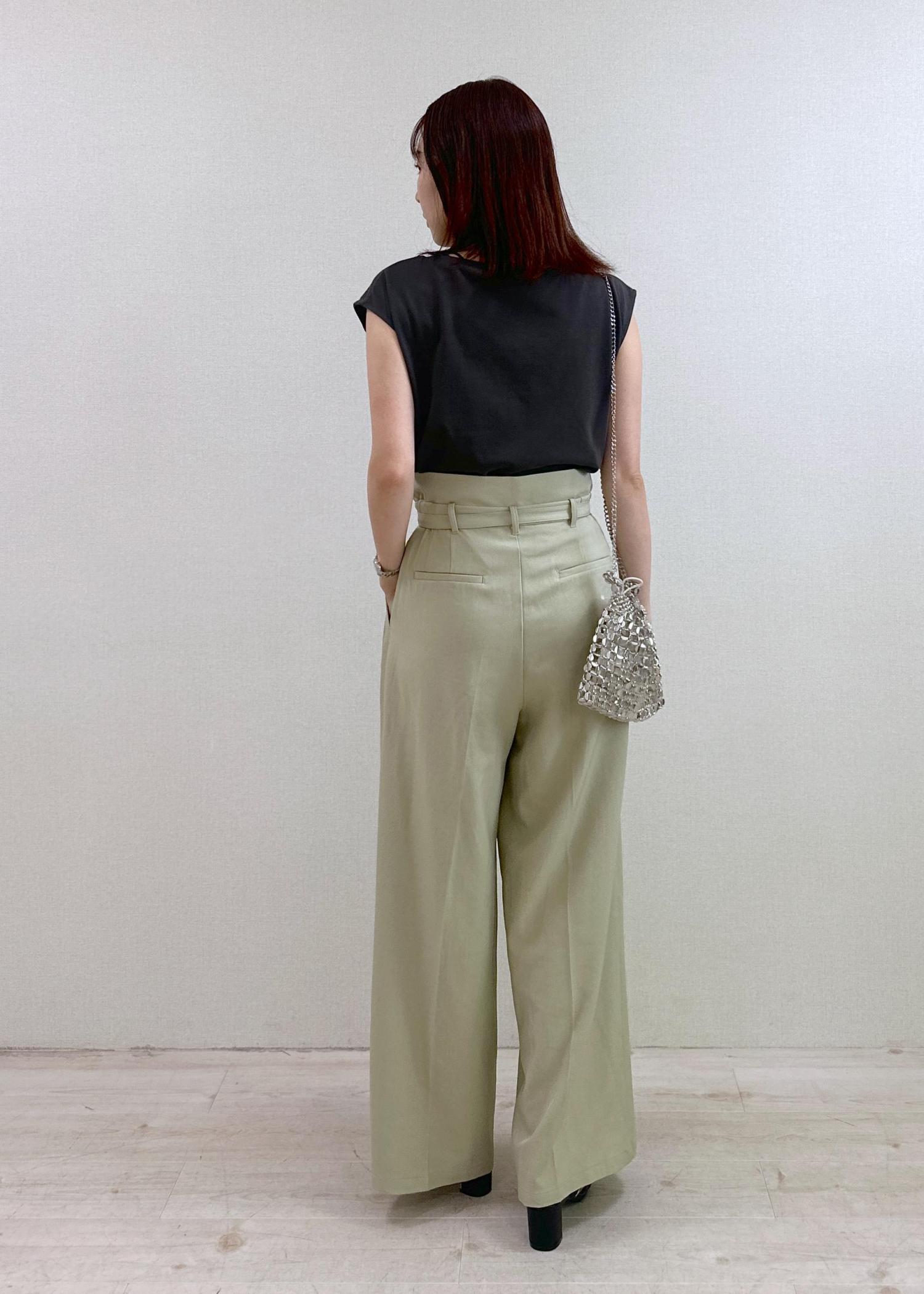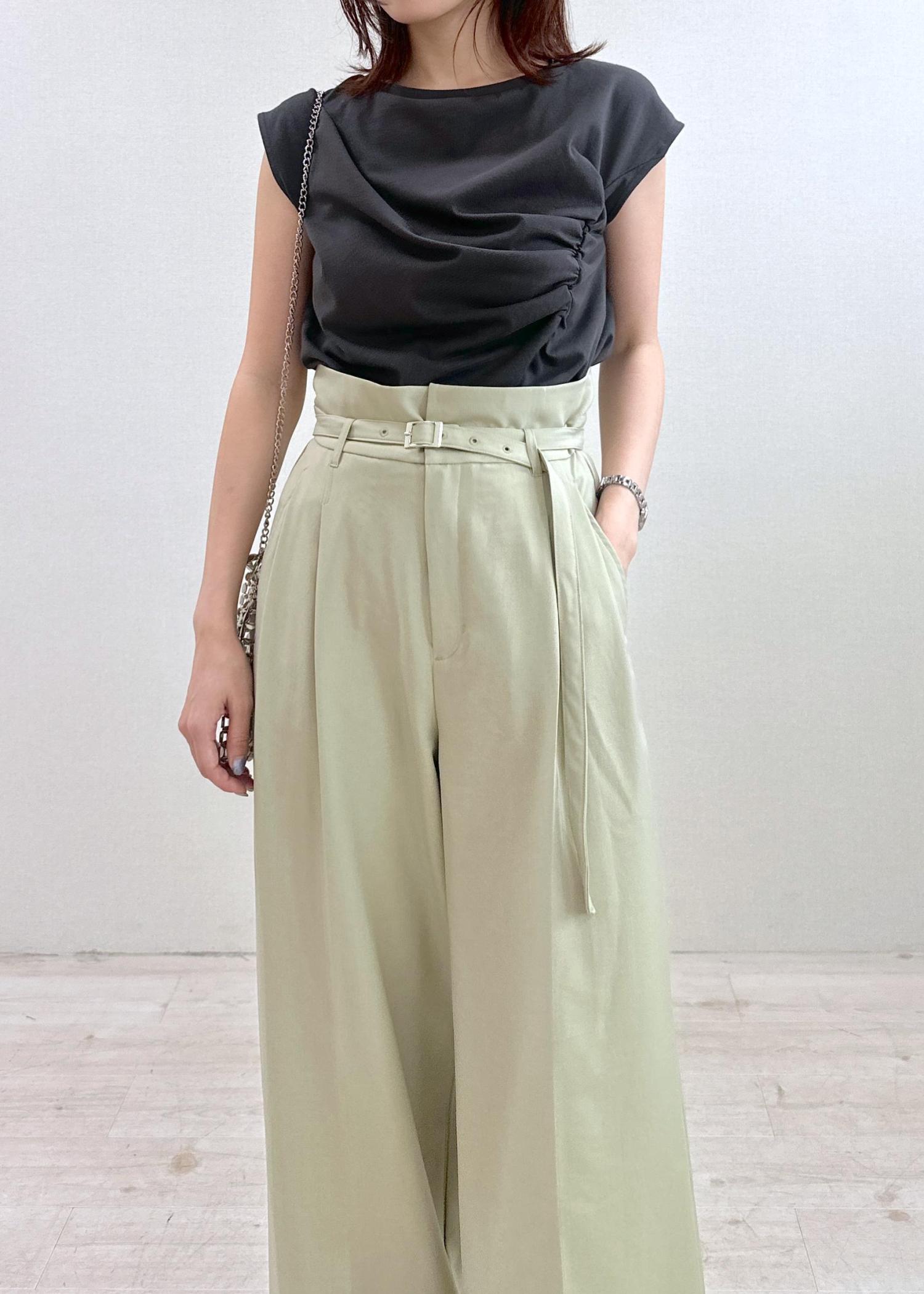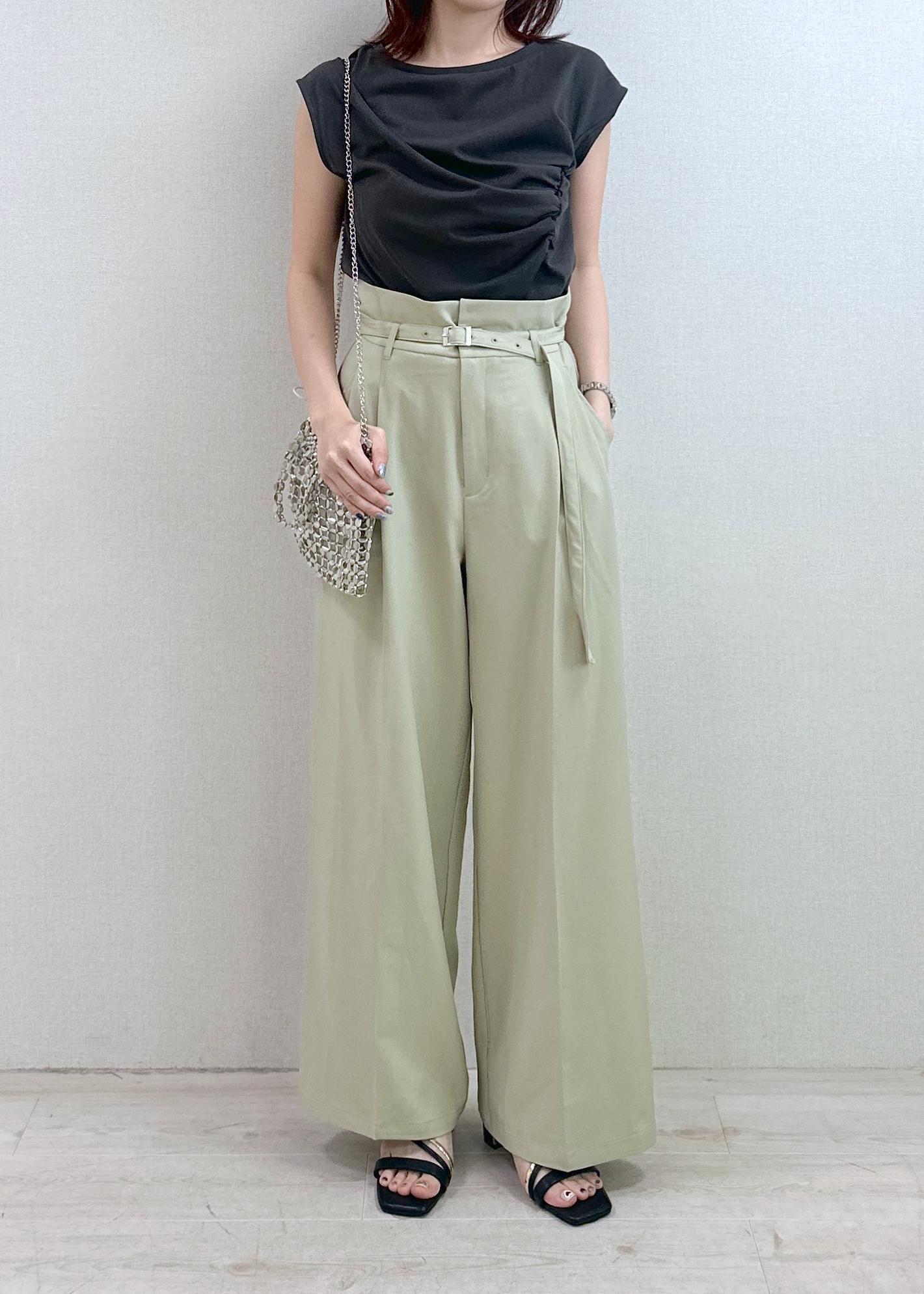 VIS【新色追加】【防シワ/接触冷感】ベルトディテールタックワイドスラックスパンツライトグリーン / M¥6,589レビュー162cmでMサイズを着用しております。