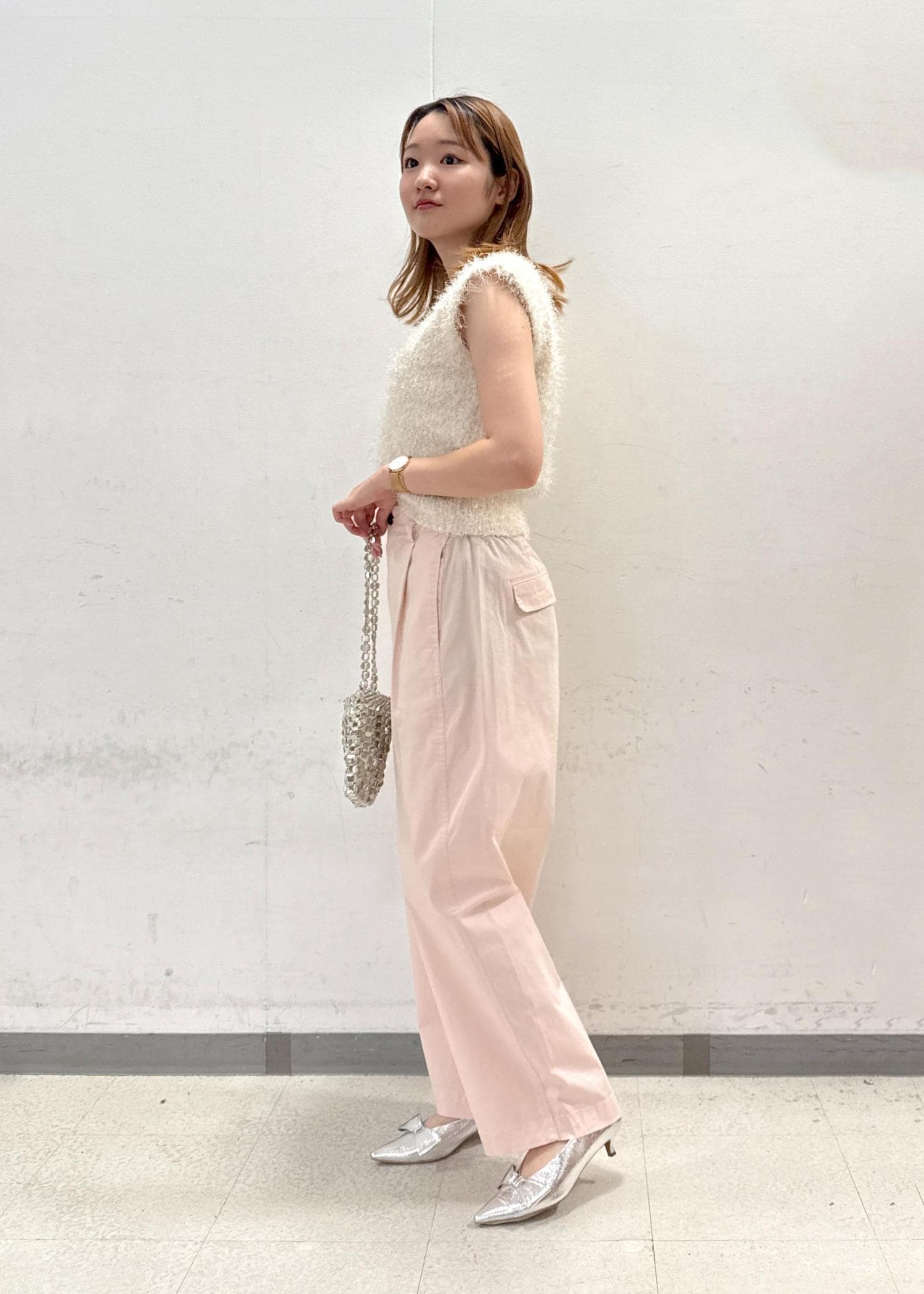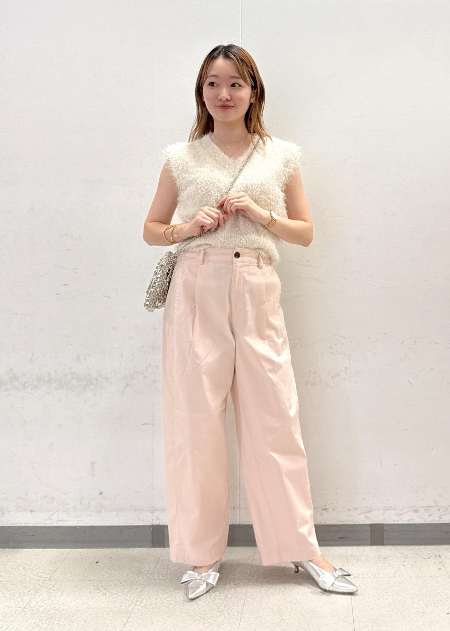 アウトレットVISバレルシルエットコットンパンツピンク / F¥3,460レビューウエストが少し大きめでしたが、前だけインするとちょうどいいサイズ感でした!