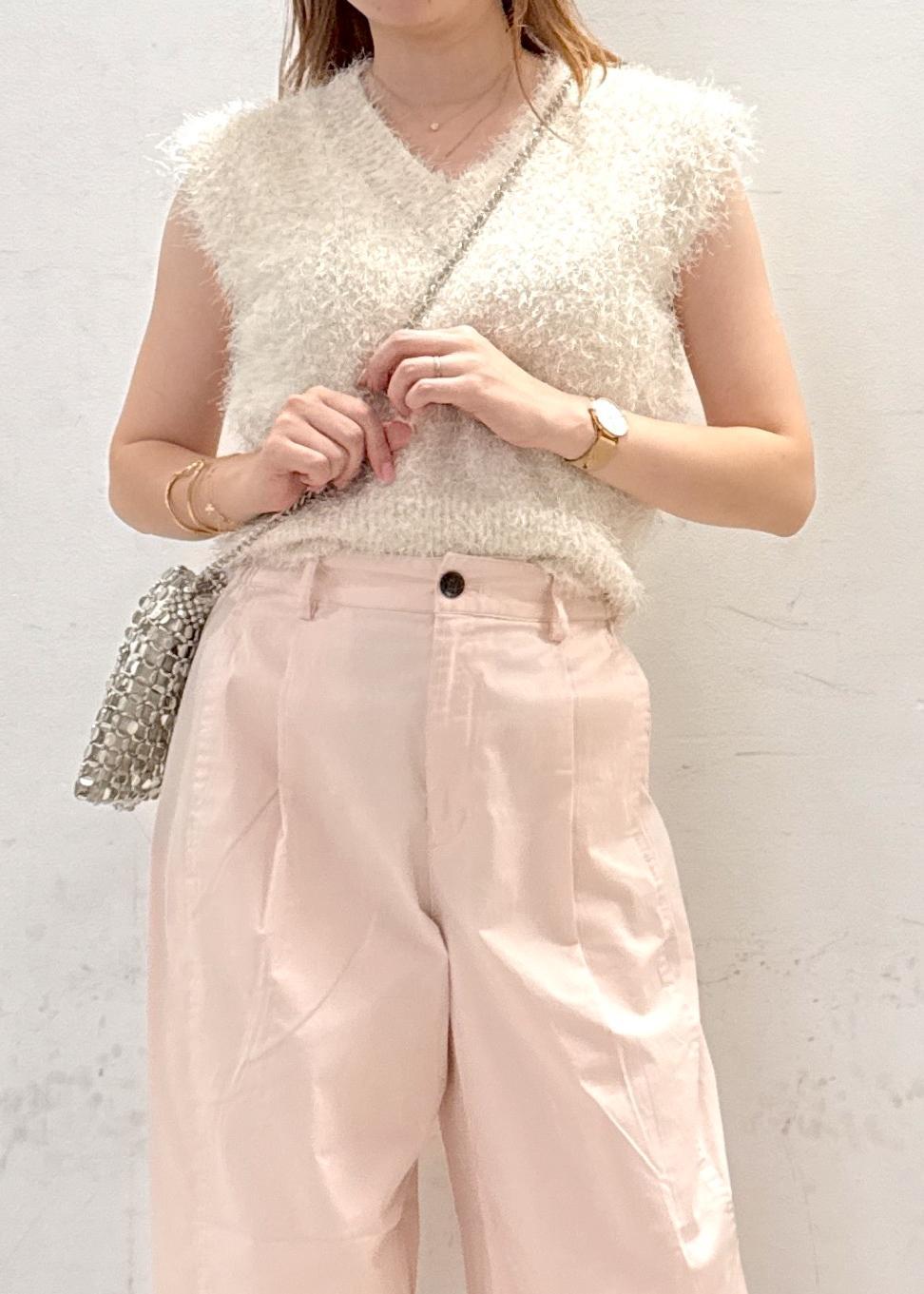 VIS【WEB限定サイズ:MT/着丈が選べる】【洗える】フェザーヤーンニットベストキナリ / M¥3,293レビュー着丈はウエストくらいの丈感です!