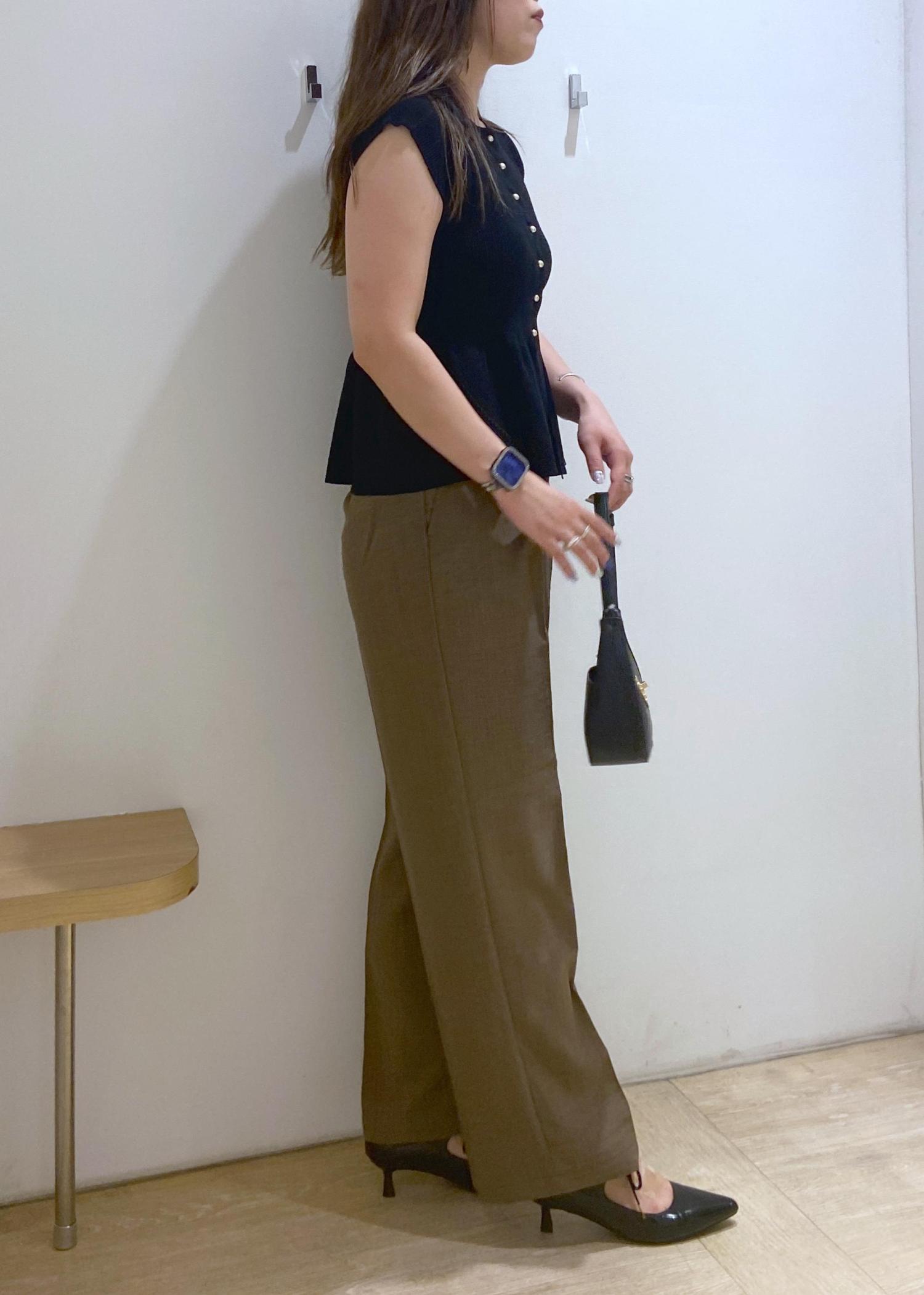 VIS【美easy】ワンタックワイドスラックスパンツ/洗えるカーキ系 / L¥5,489レビューMサイズは踵が出る丈感でスッキリと見えやすいです。