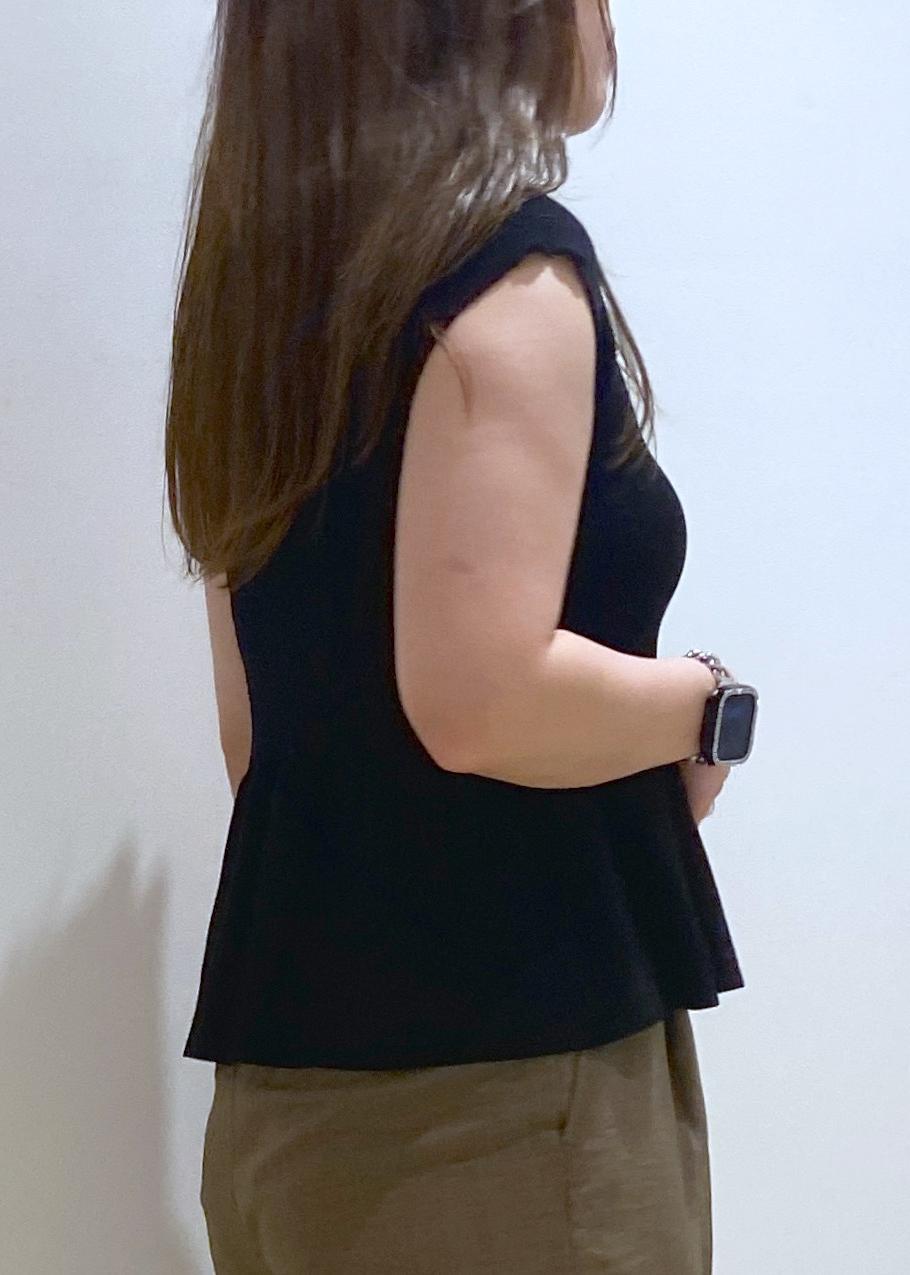 肩まで隠れる袖丈で、二の腕がスッキリ見えやすいです。