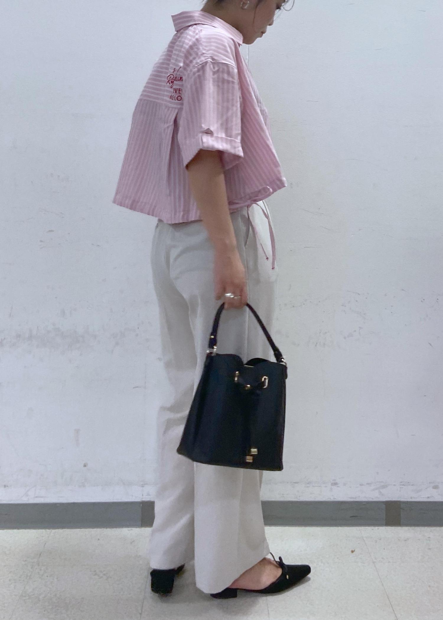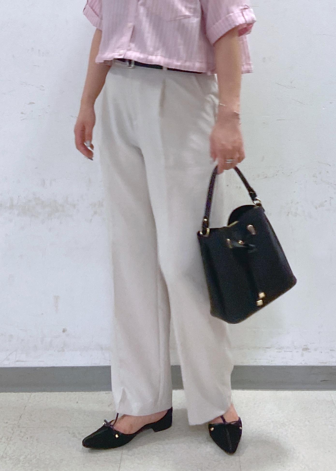 裾を絞るも丸みのあるシルエットが作りやすく、後ろから見た時もウエストの位置が高く見えやすいです。 -
