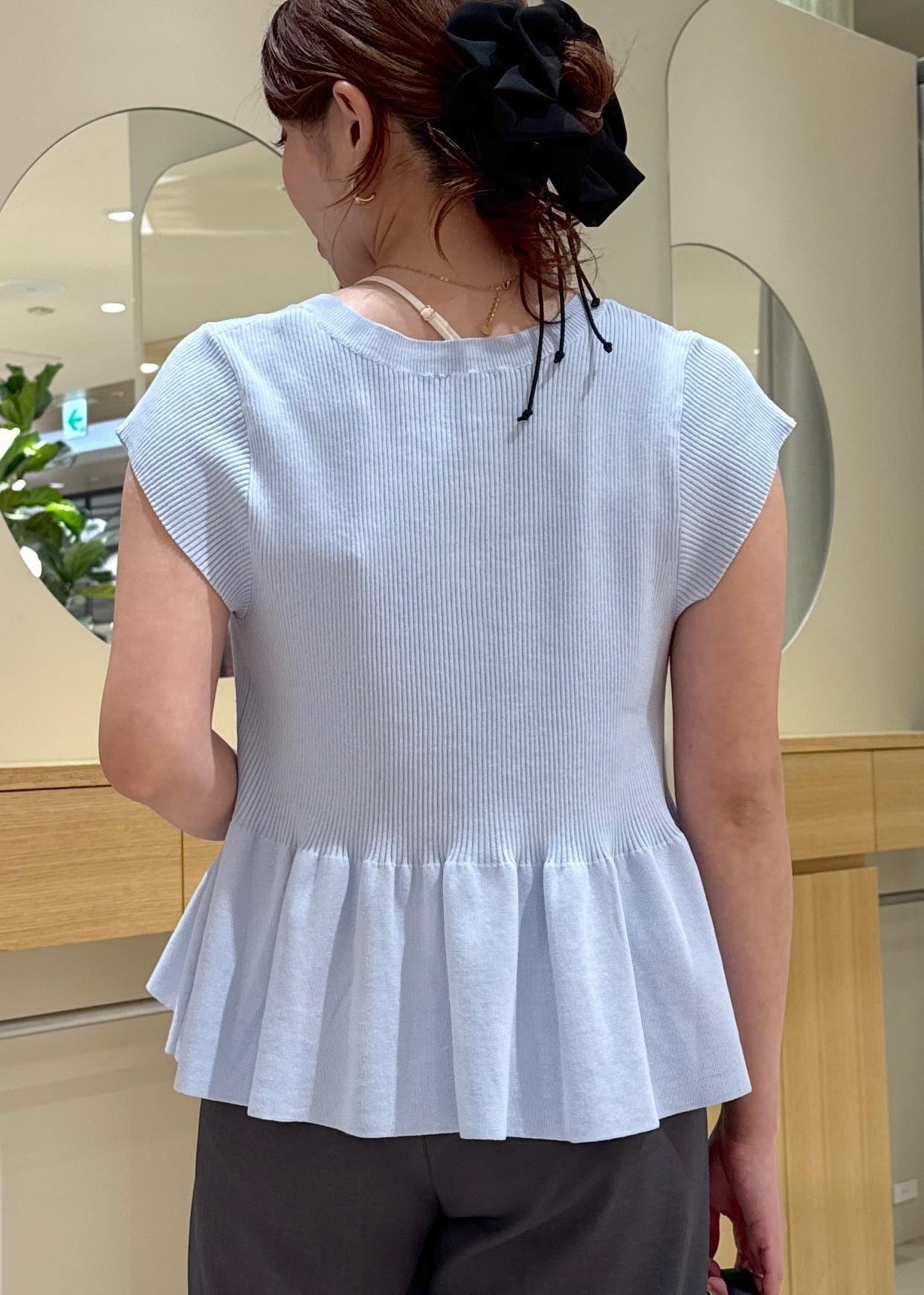 VIS【アンチピリング/洗える】美SMARTショートスリーブペプラムニットサックス / F¥5,489レビュー【着心地】