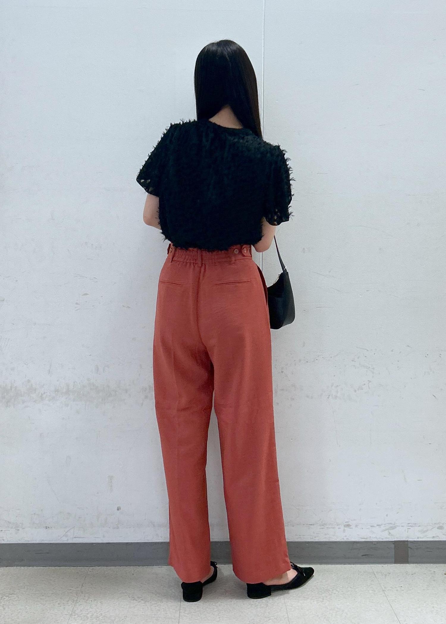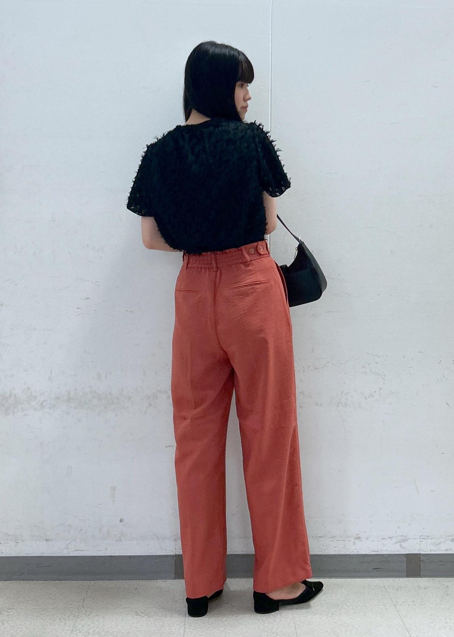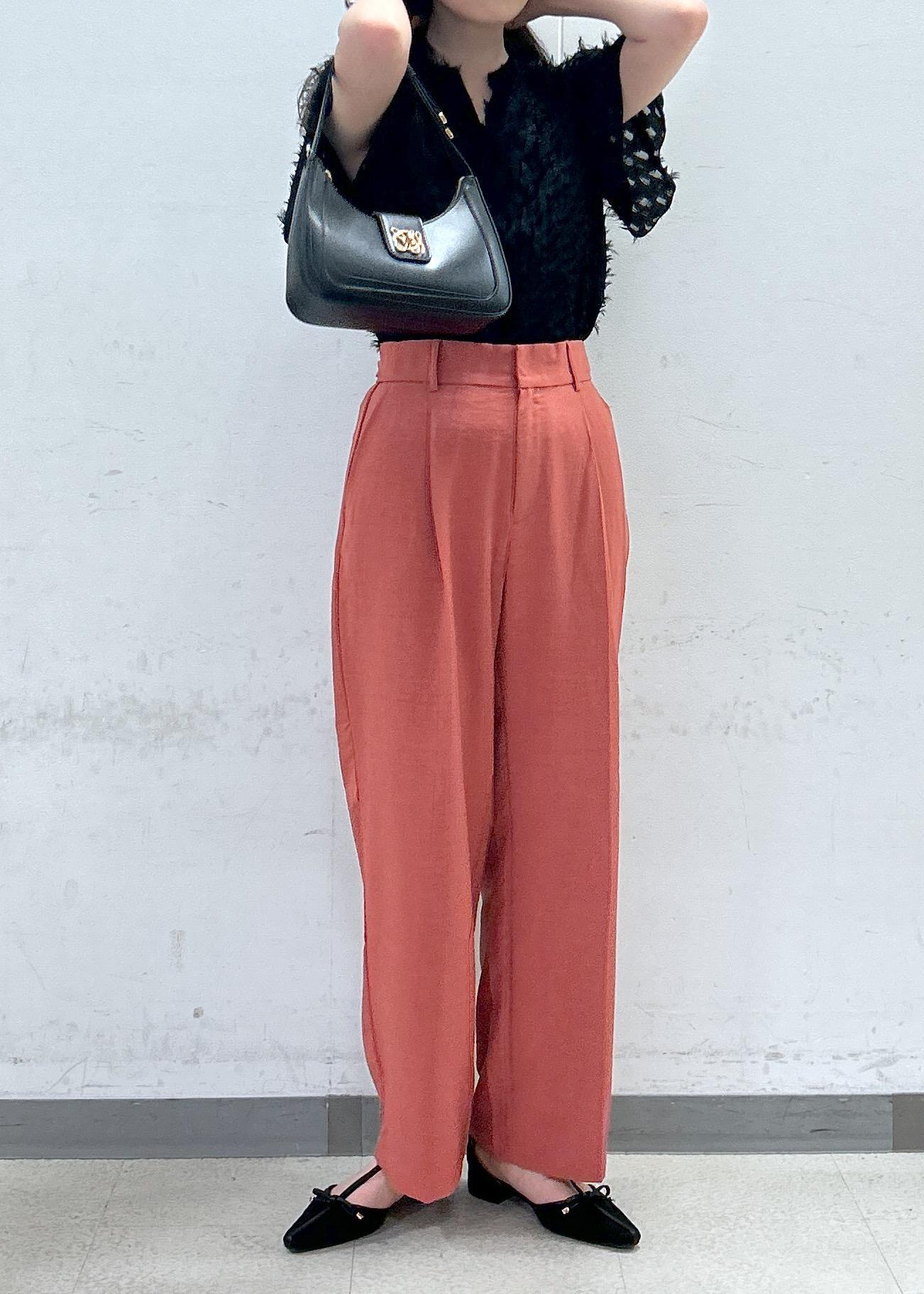 VIS【美easy】ワンタックワイドスラックスパンツ/洗えるオレンジ系 / M¥5,489レビュー接触冷感のため肌触りも良く、サラッとした着用感です。身長166cmでくるぶしが隠れる丈感です。股上が深めで、ヒップをスッキリ見せてくれます!