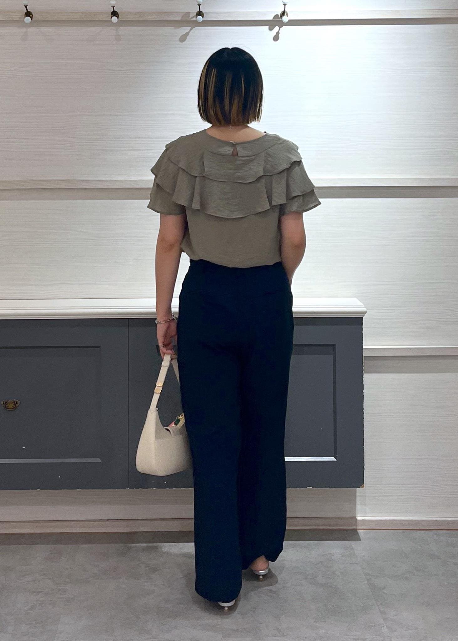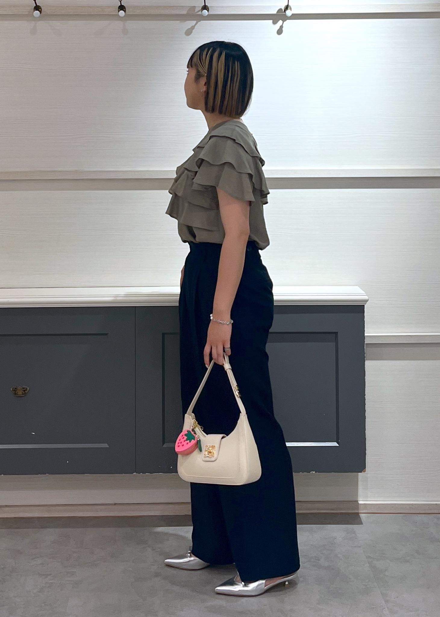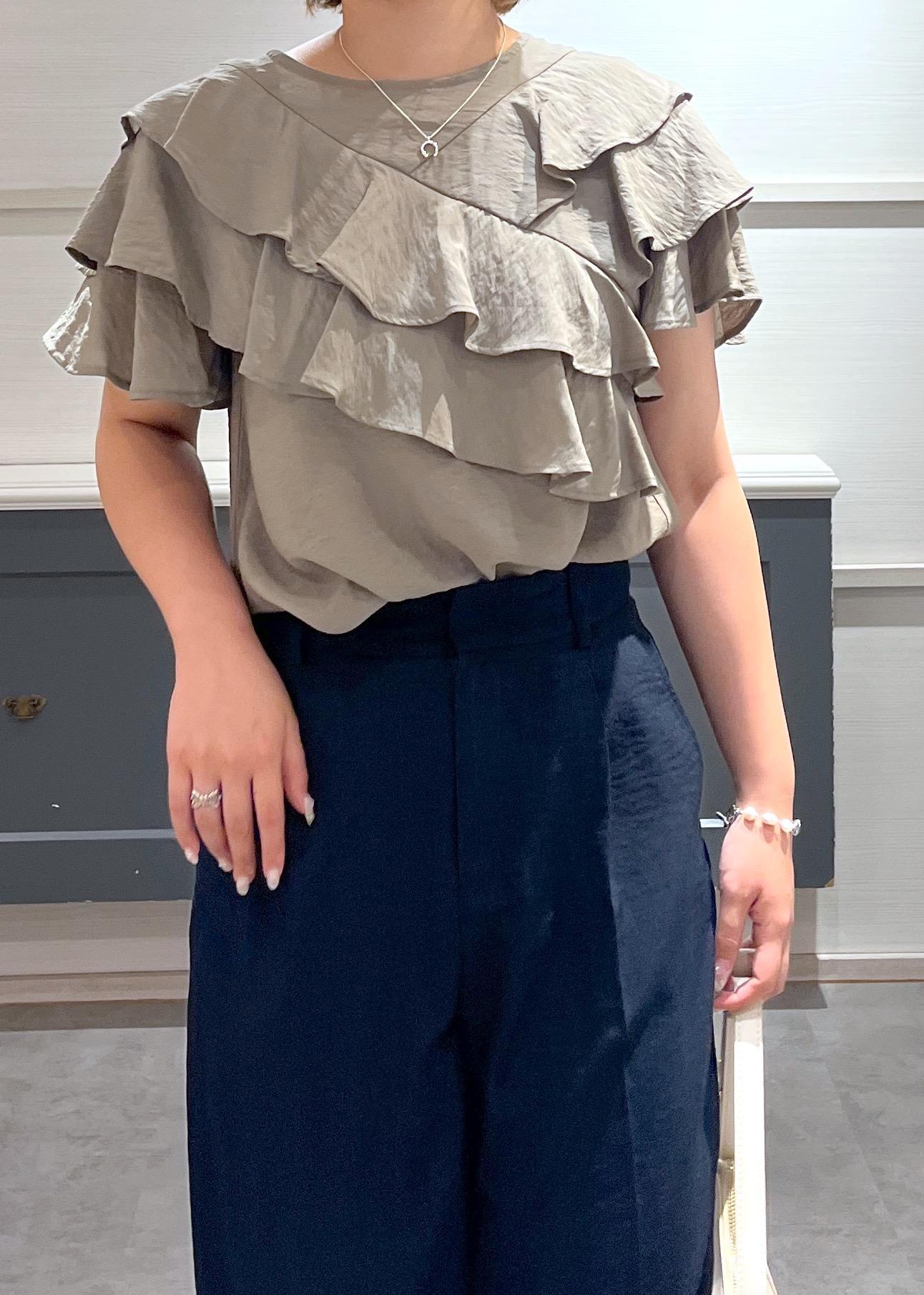 フリルのトップスが華やかさを引き立てるコーディネート☆