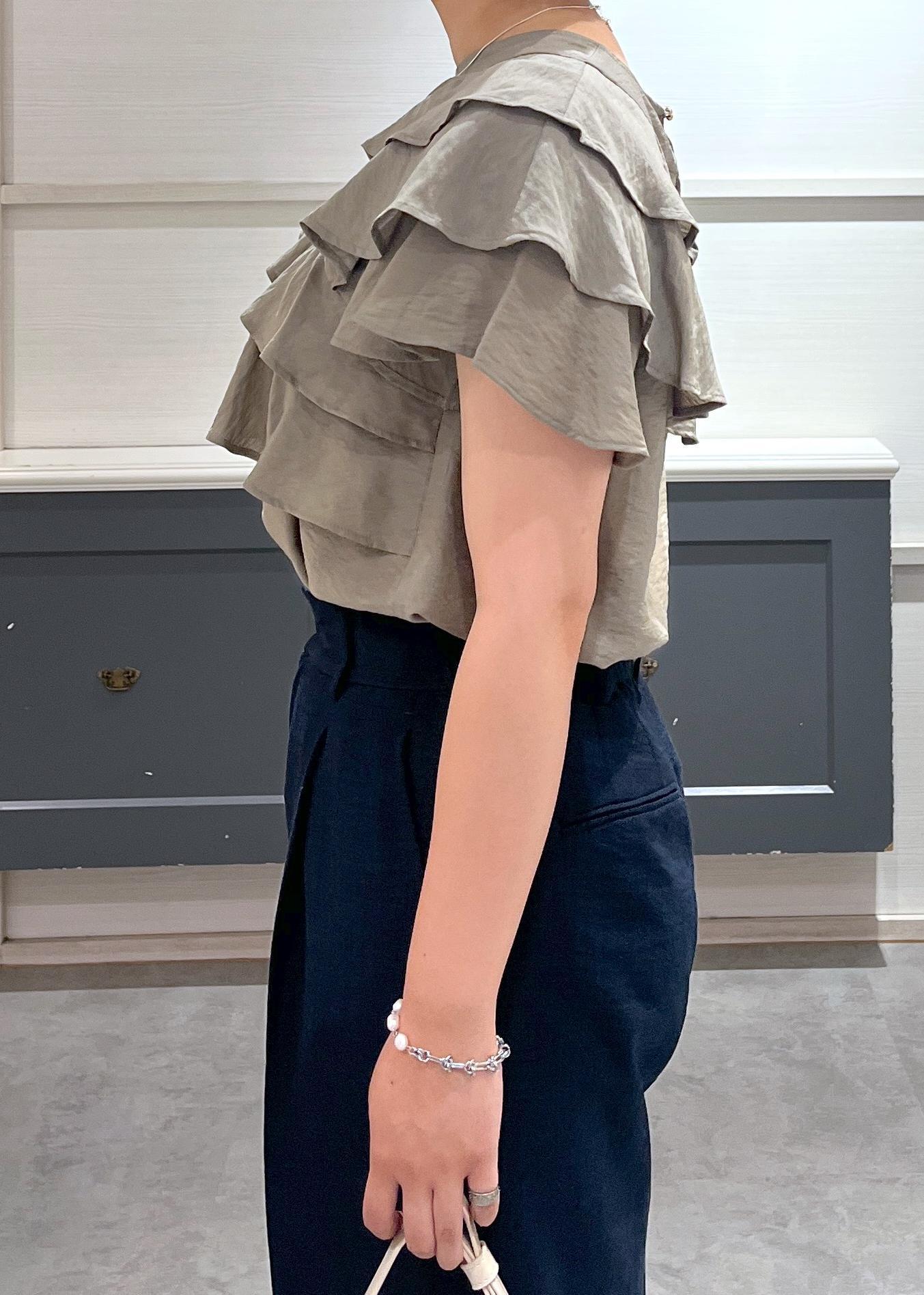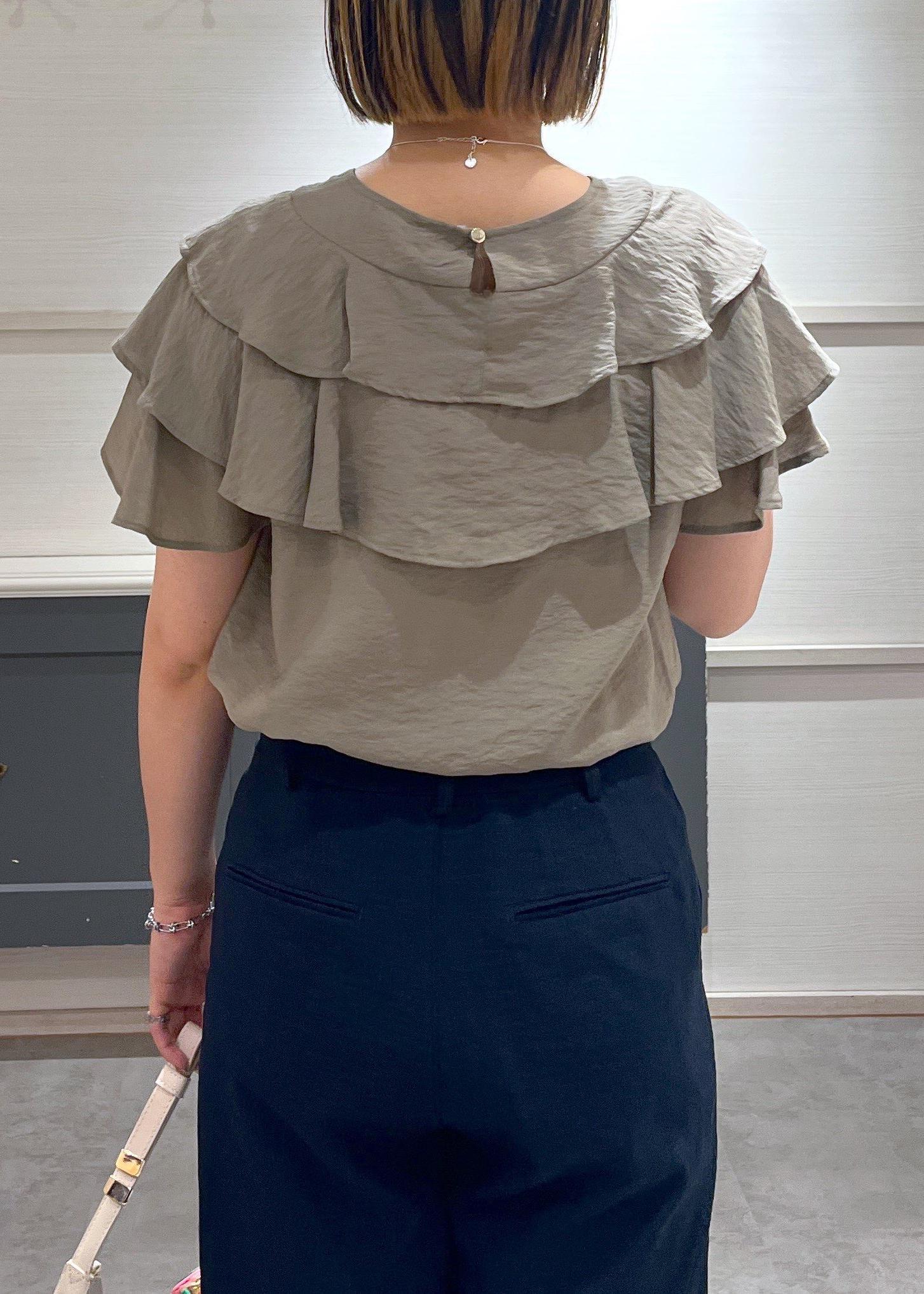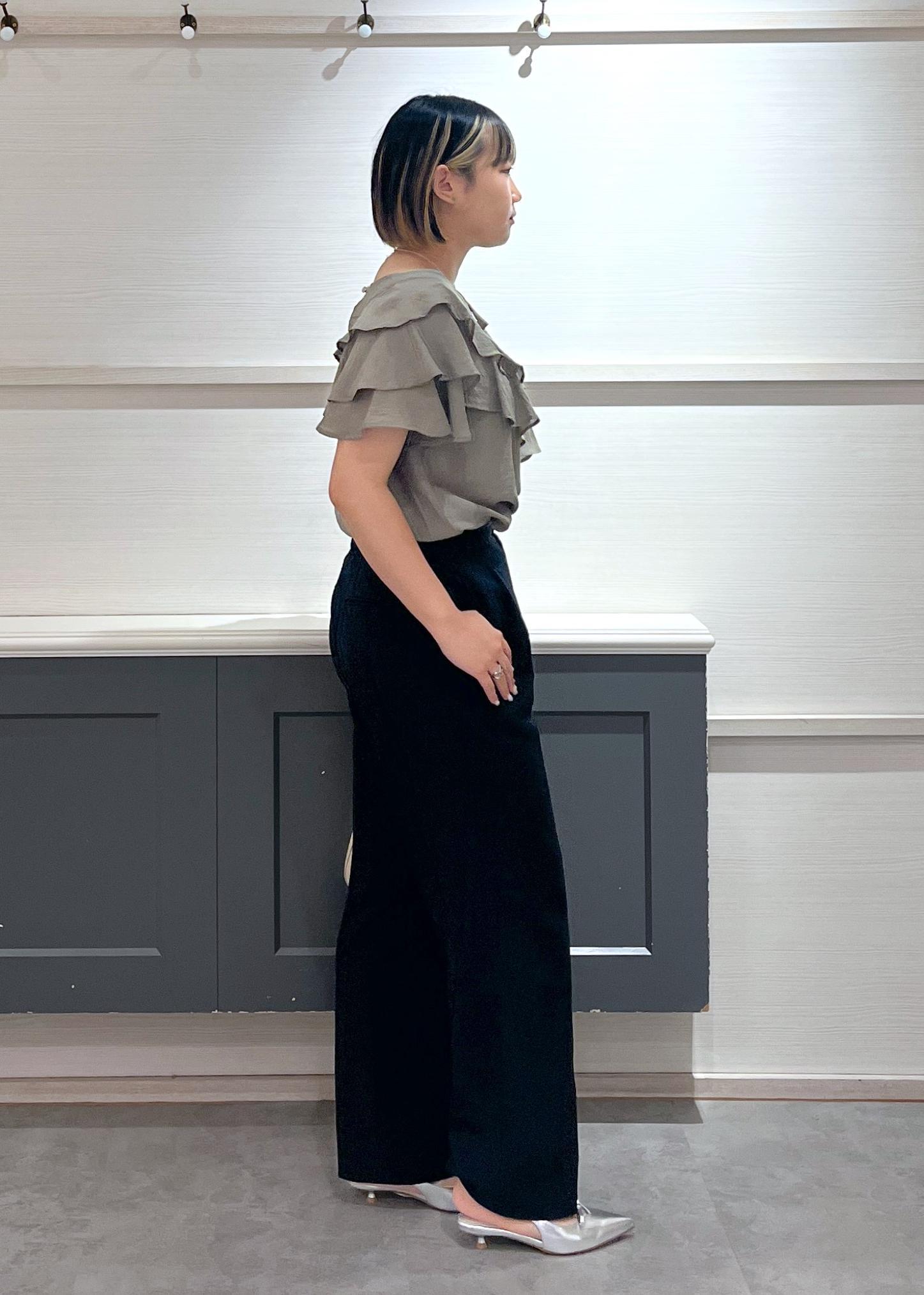 フリルのトップスが華やかさを引き立てるコーディネート☆