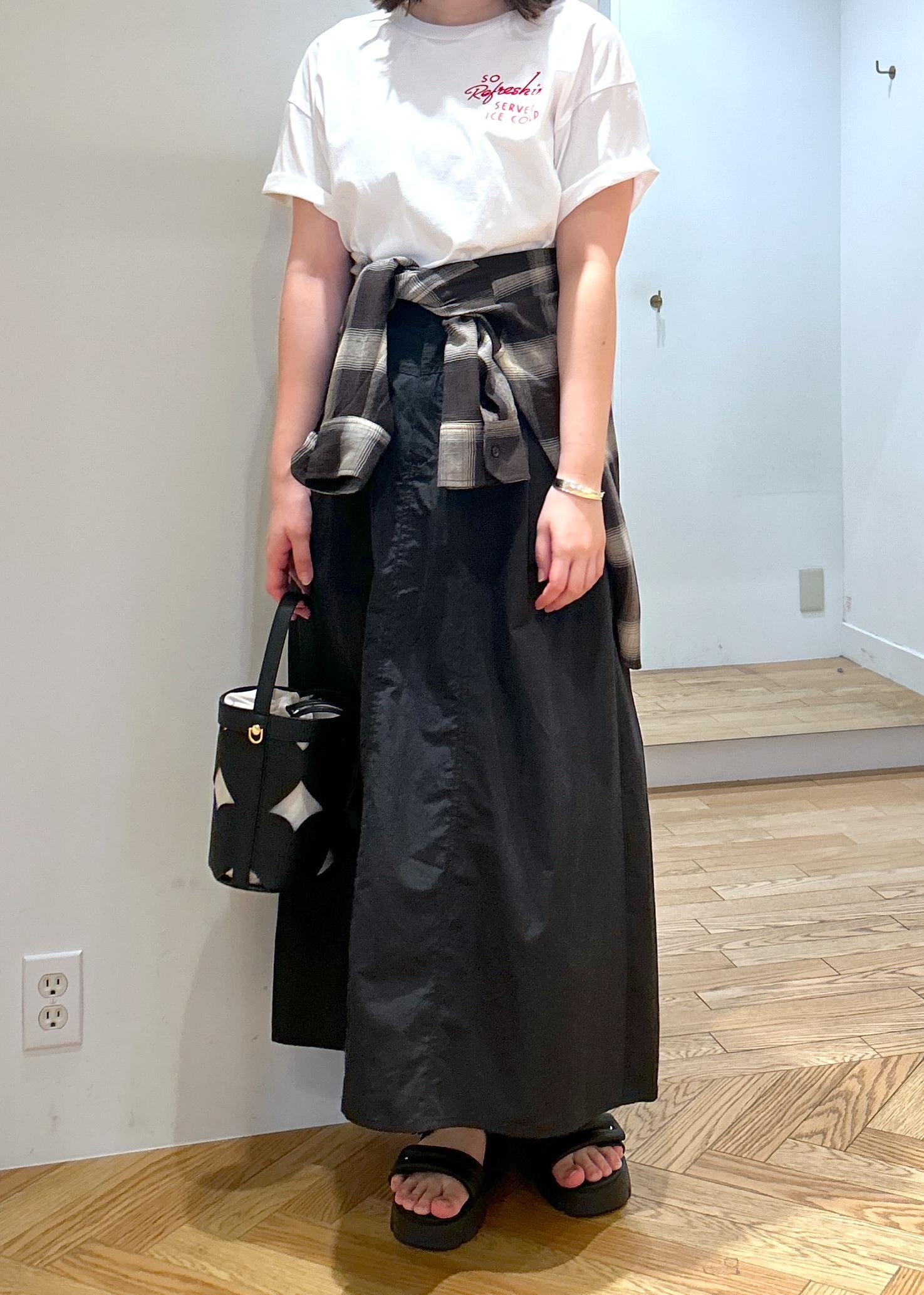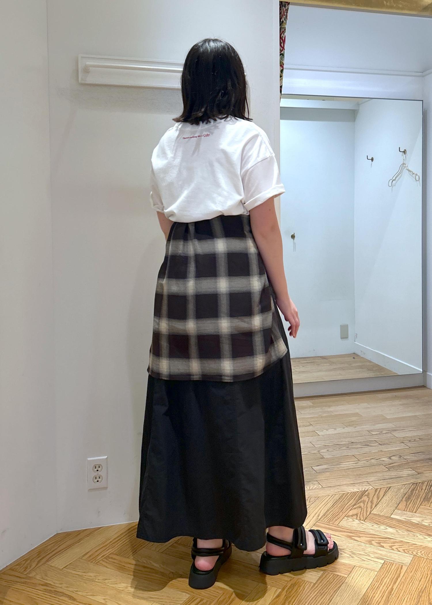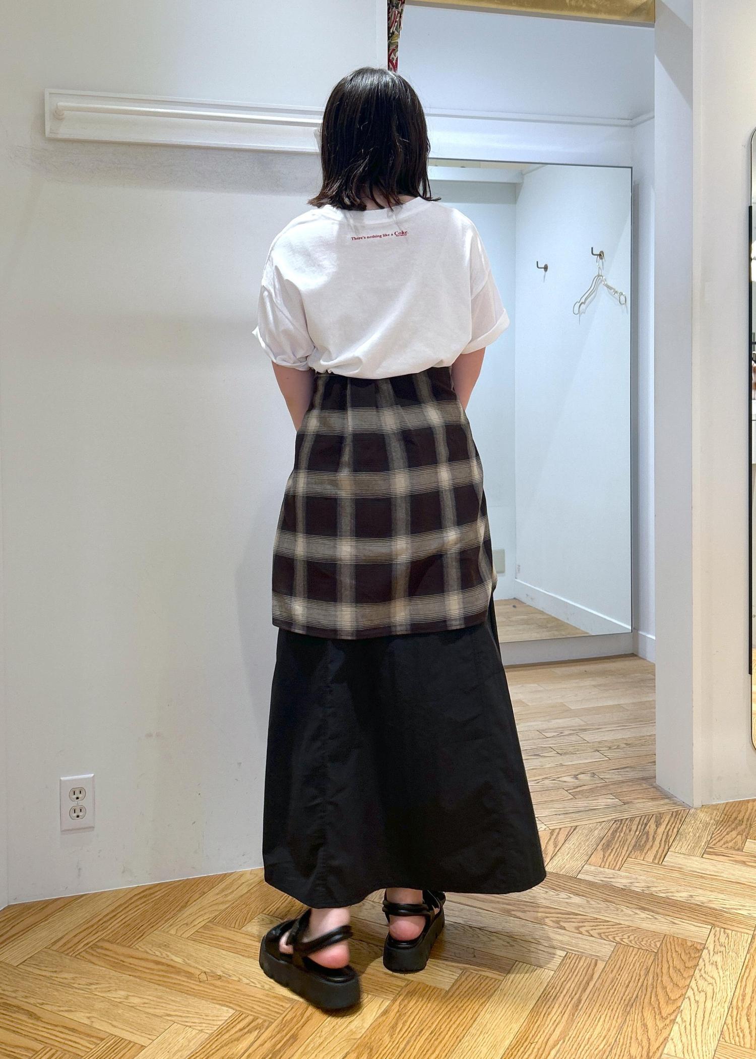 シンプルな合わせなのでチェックのシャツを腰巻きに♪