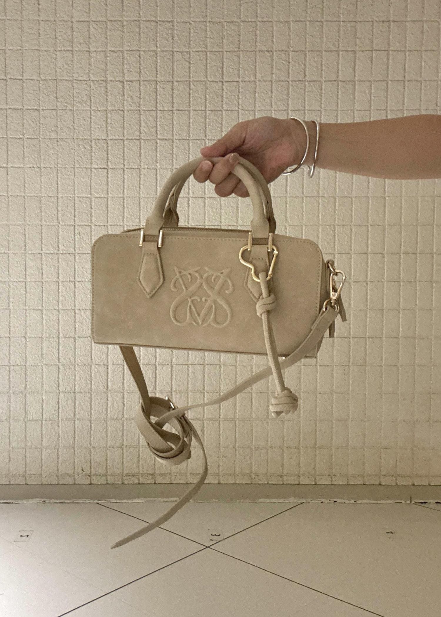 VISロゴスエードミニボストンバッグ/2WAYベージュ系 / F¥6,919レビューコンパクトなシルエットですがまちが大きめなので見た目以上に荷物をたくさんいれられます。