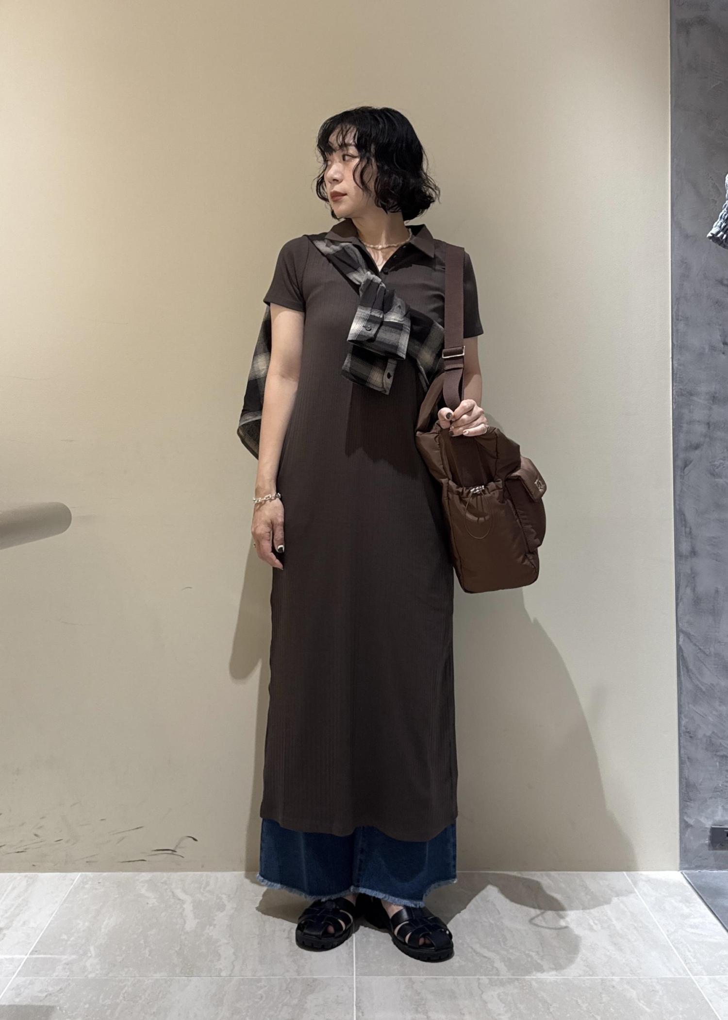 VISポロ衿ランダムリブワンピースダークブラウン / F¥4,612レビュー薄手で伸び感もあり楽な着心地です!