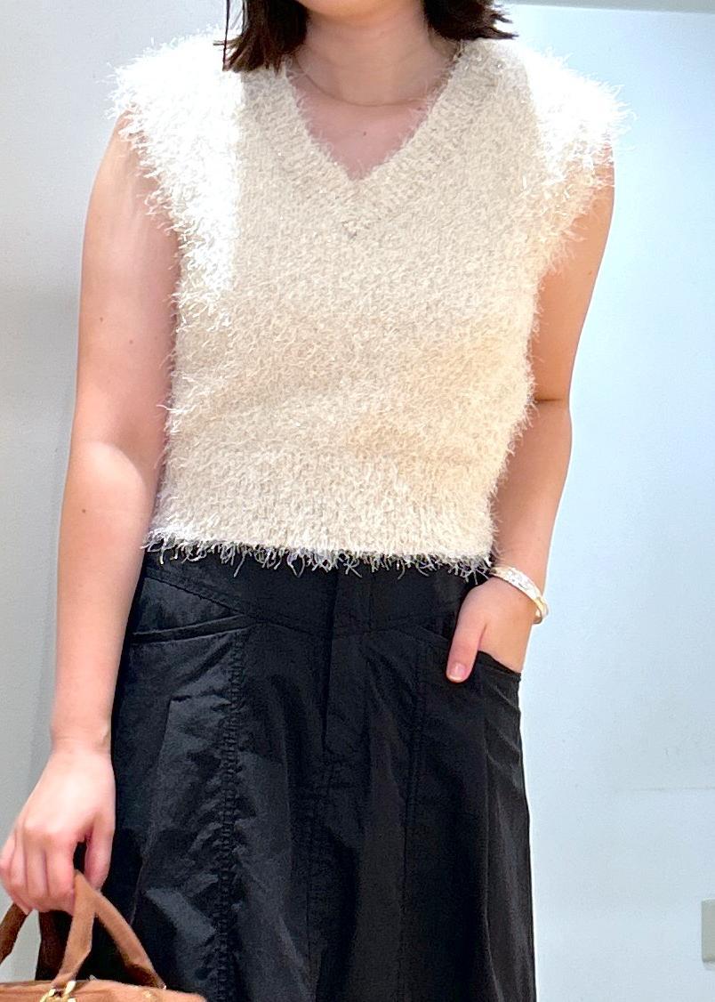 VIS【WEB限定サイズ:MT/着丈が選べる】【洗える】フェザーヤーンニットベストキナリ / M¥3,293レビューラメ感が華やかでかわいいです◎