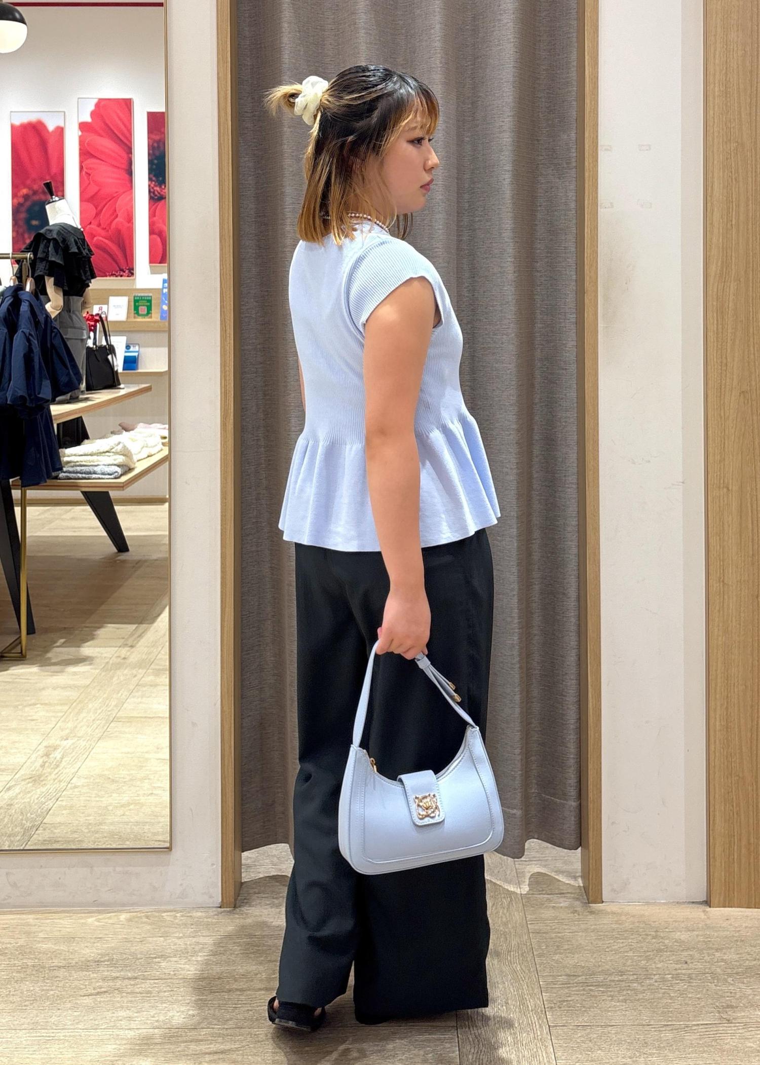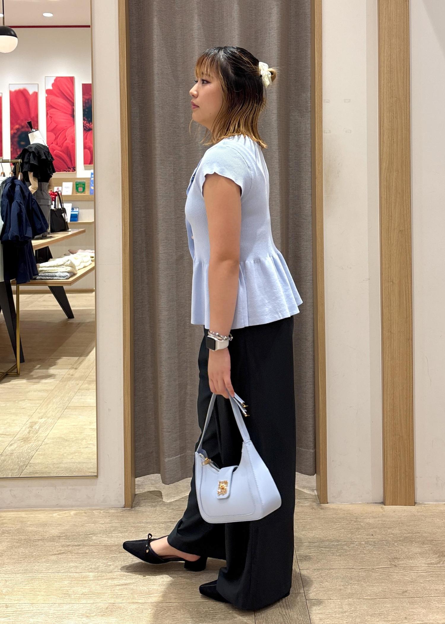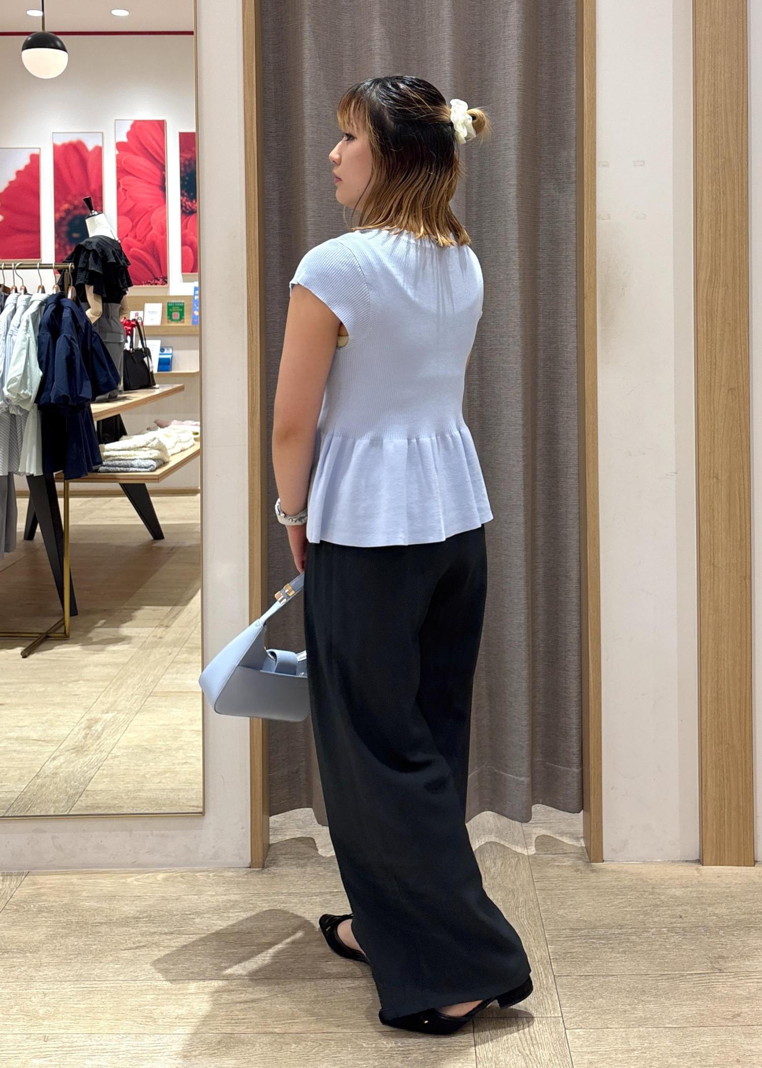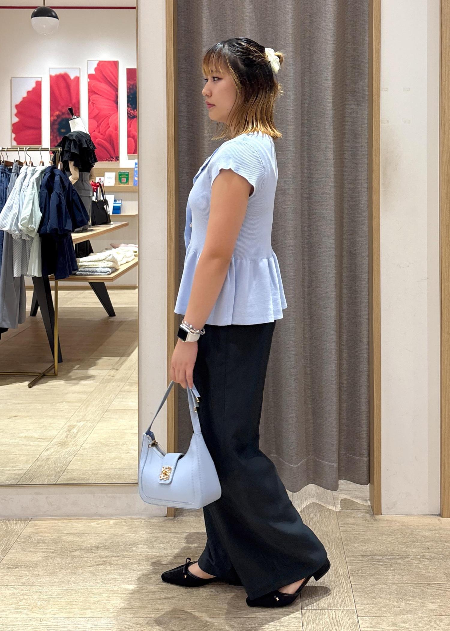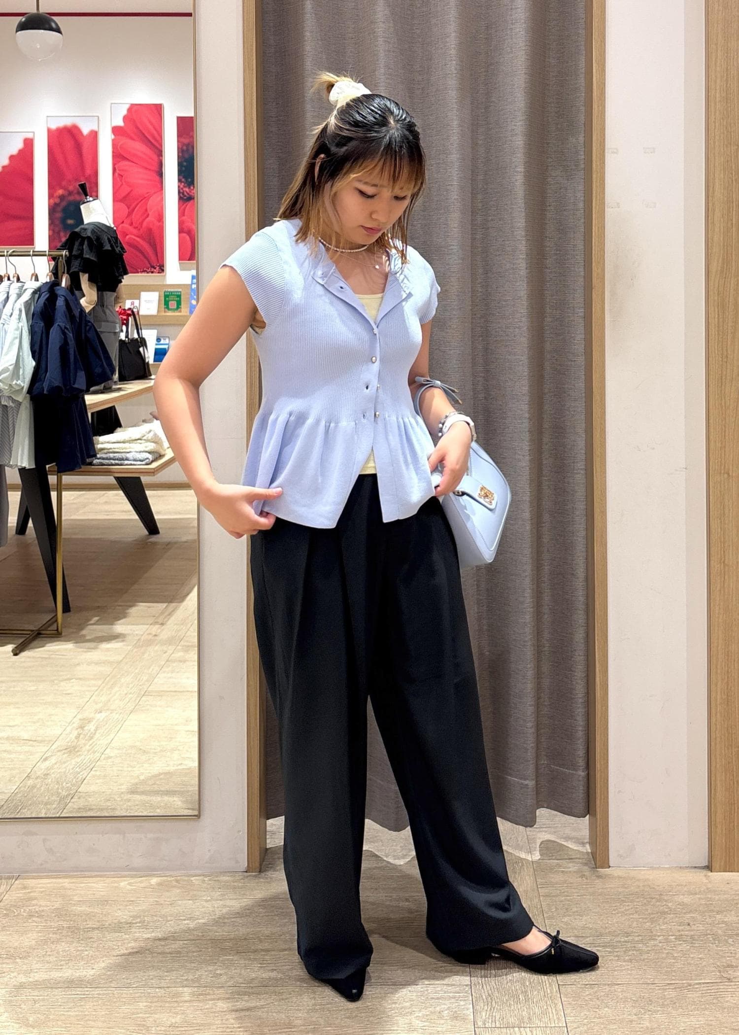 肩幅が広いのですが、羽織として着るとスッキリして見えましたし、ペプラムデザインが腰周りのカバーもしてくれるので体型カバーにもなります! -