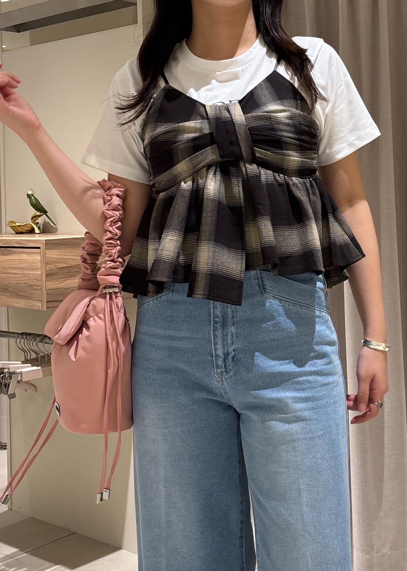 VISオンブレチェックリボンビスチェブラック系 / F¥5,489レビュー165cmで腰にややかかる丈感です!