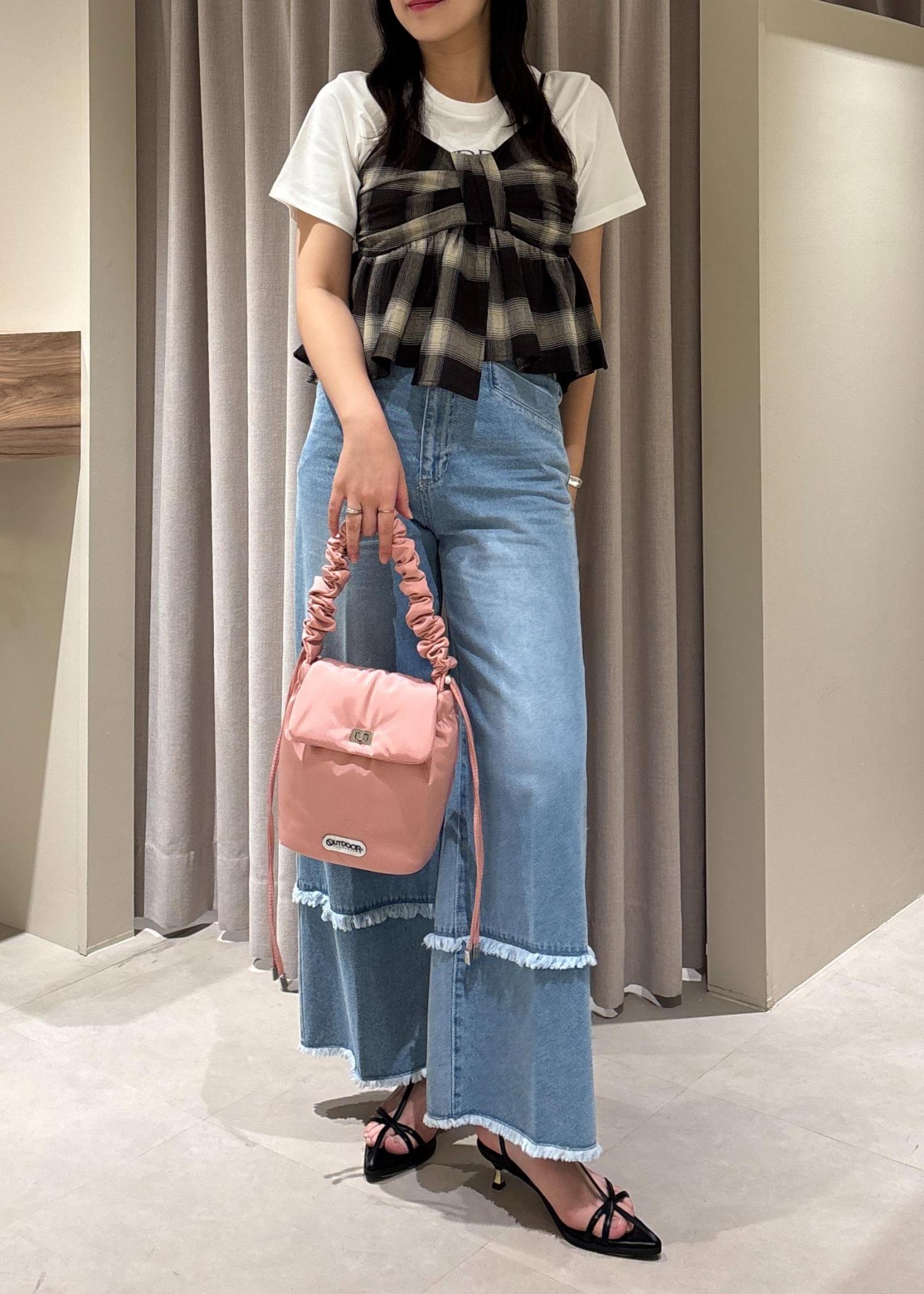くしゅっと持ち手の長さを変えられて、斜めがけも可能です◎