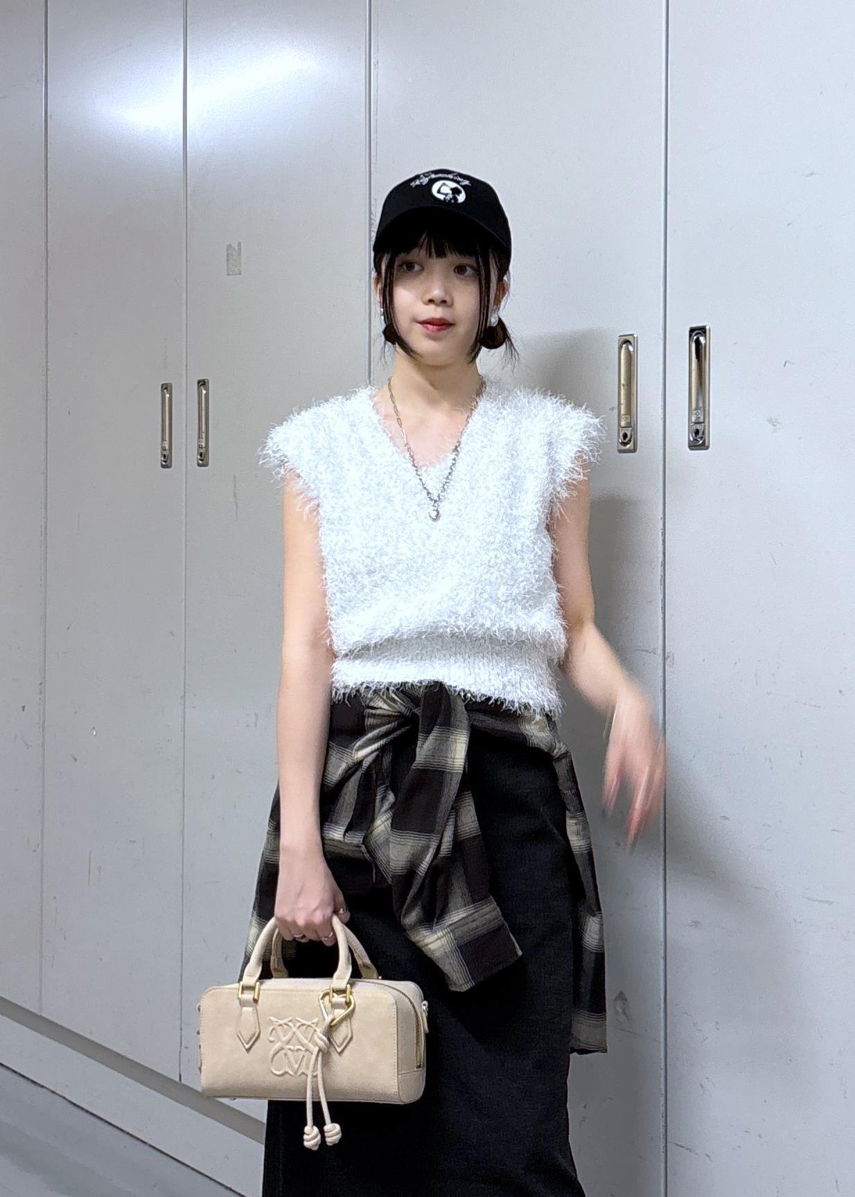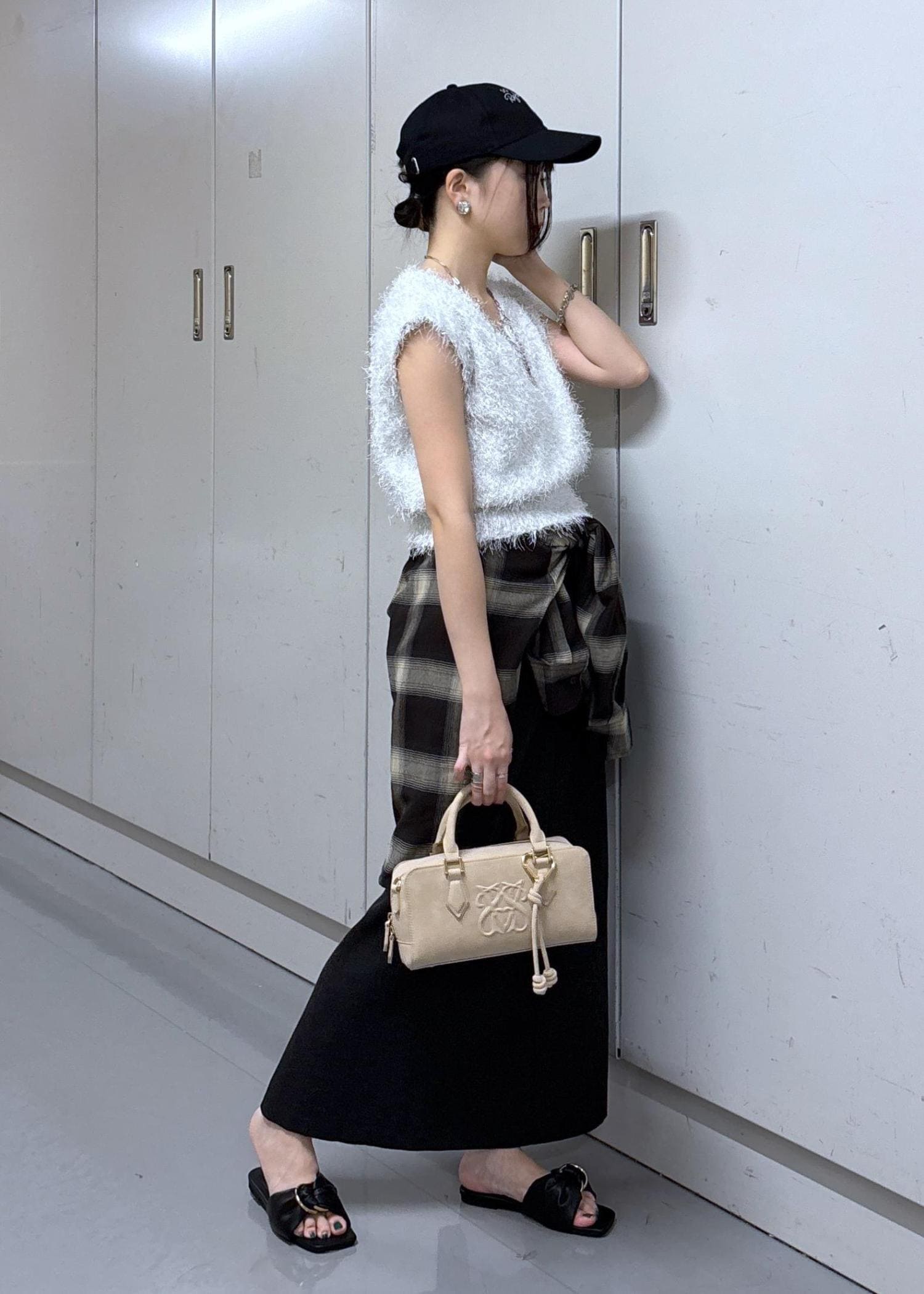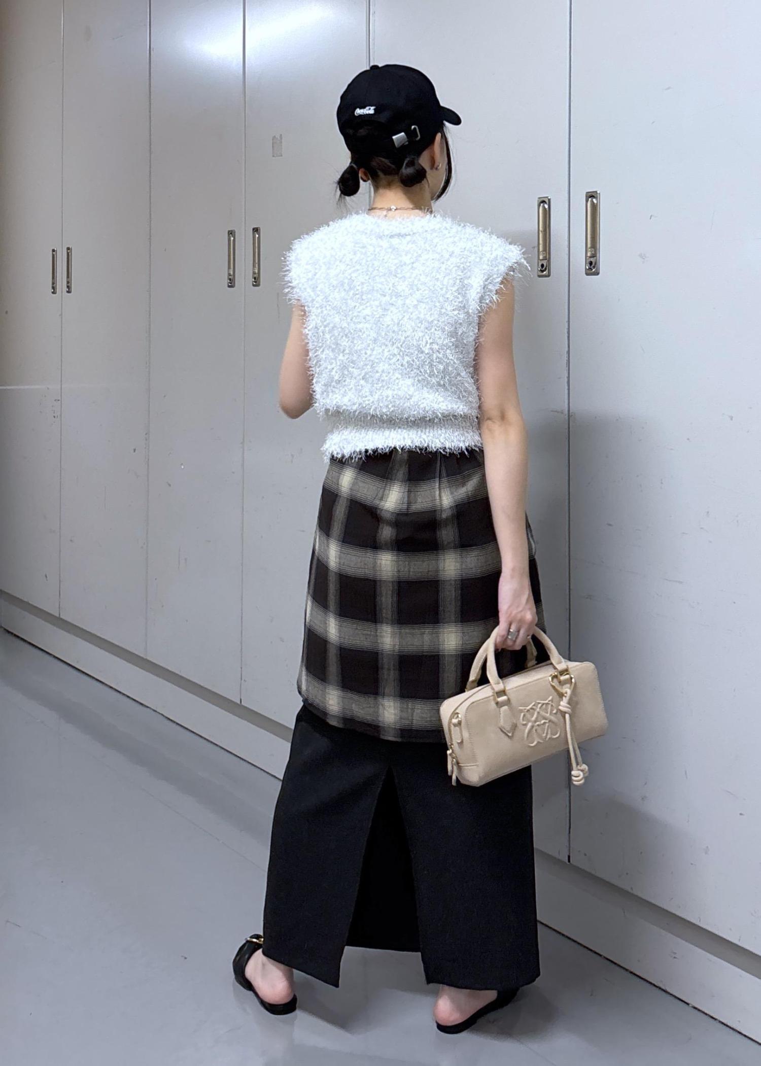 リアルバイしたニットとスカートに、ワンポイントでチェックシャツとキャップを合わせてみました!