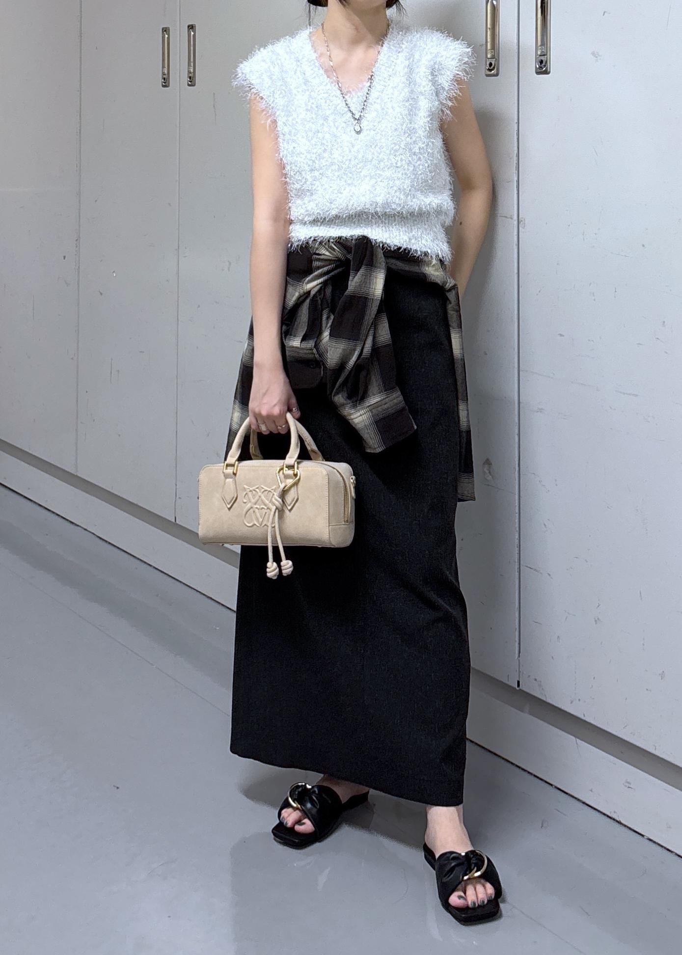 チェックシャツは腰巻きで一気にコーディネートの雰囲気が変わって良いですね☺︎