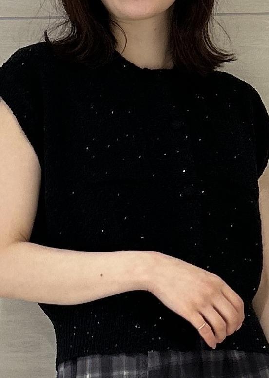 VISくるみ釦ニットトップスカーデ/洗えるブラック系 / F¥4,939レビューラメ感が上品です♡