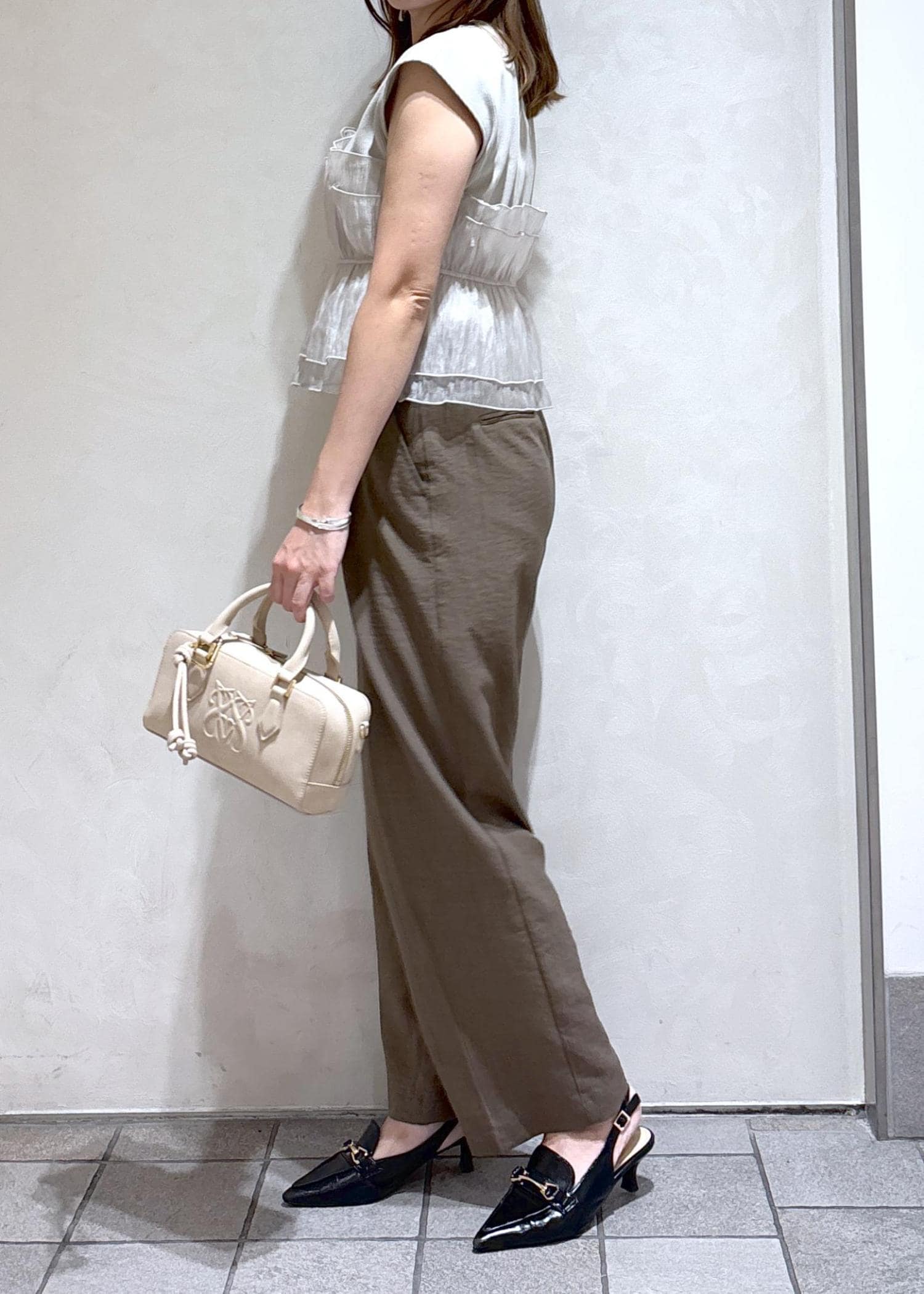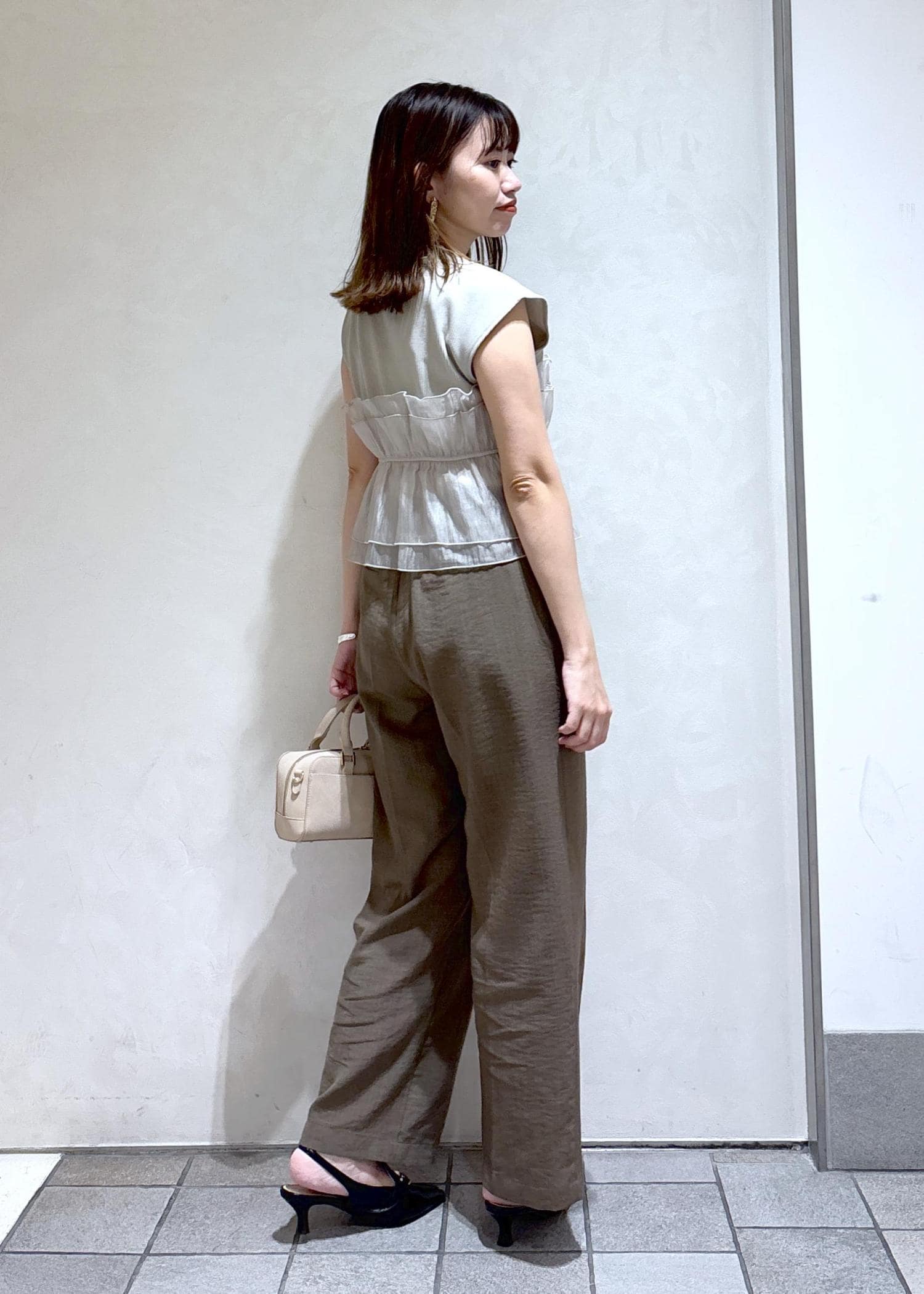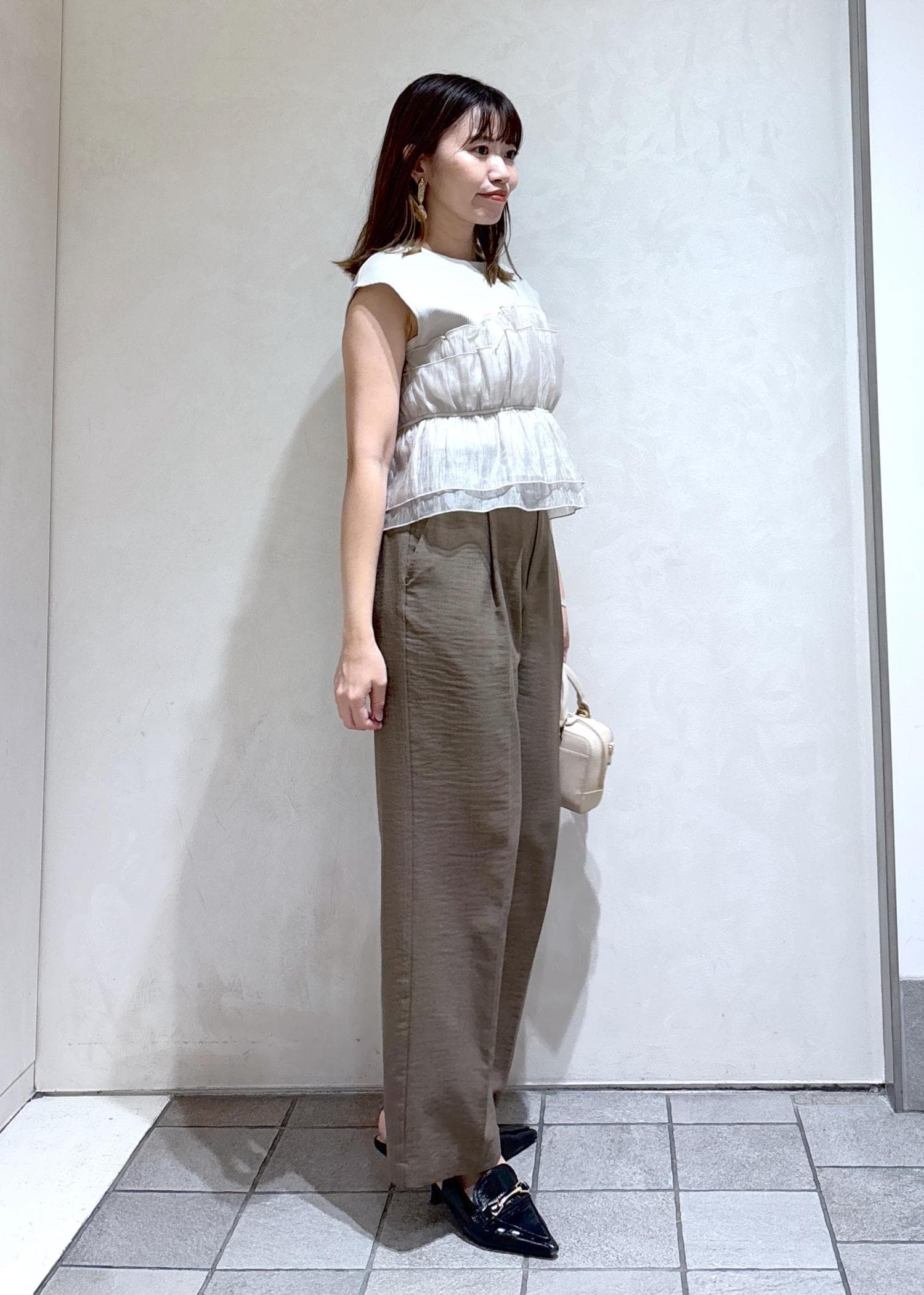 カーキのワイドパンツを合わせました♫