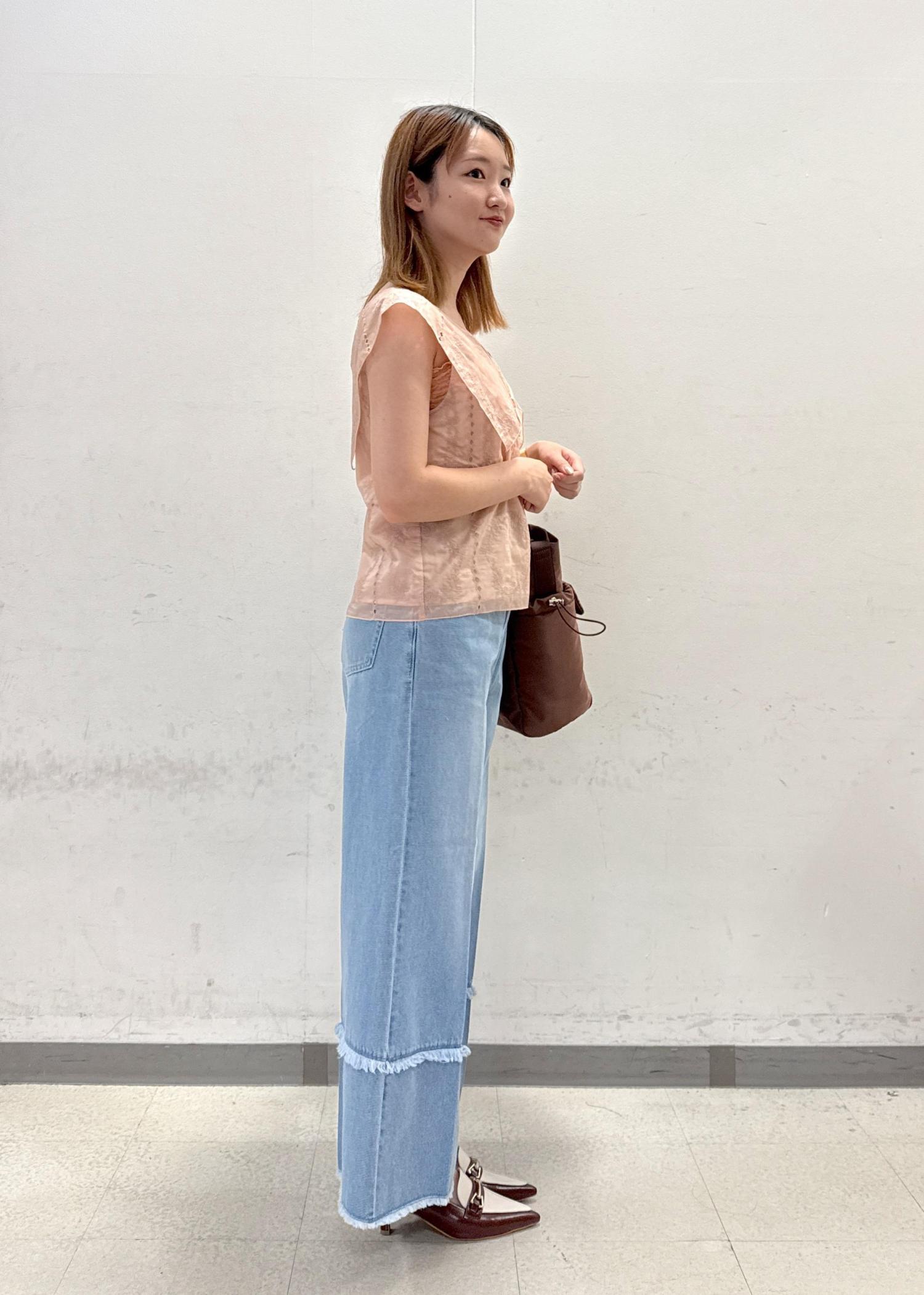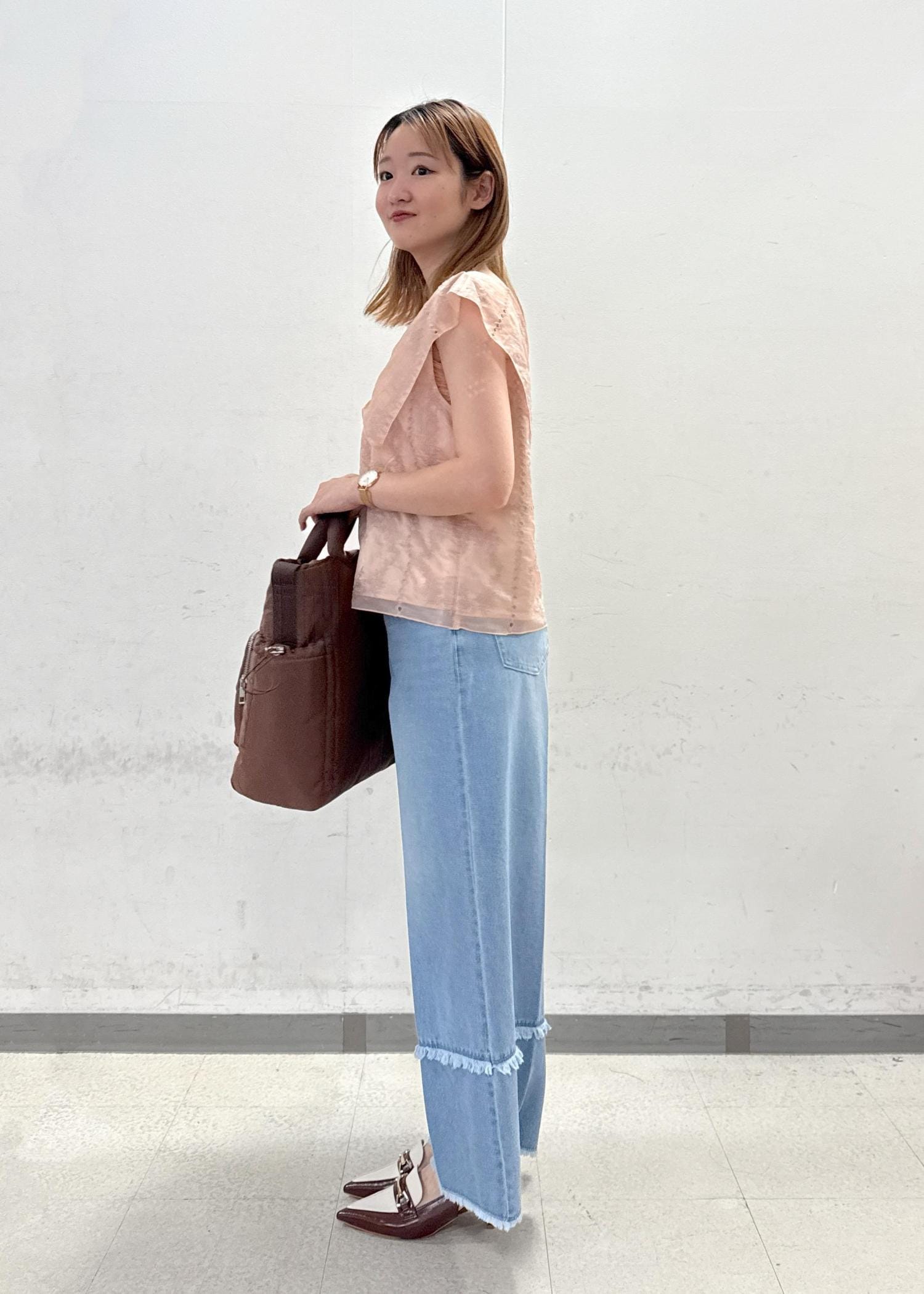 ピンクの可愛いらしさのあるトップスをデニムと合わせてカジュアルして着てみました!