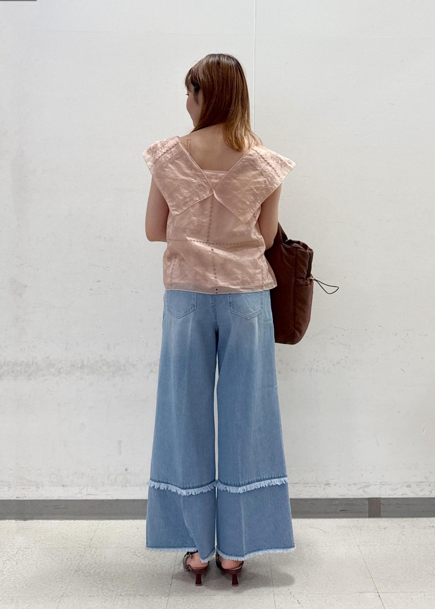 デザイン性のあるインナーを着用すると、首元の広いトップスでも気になりません☆☆