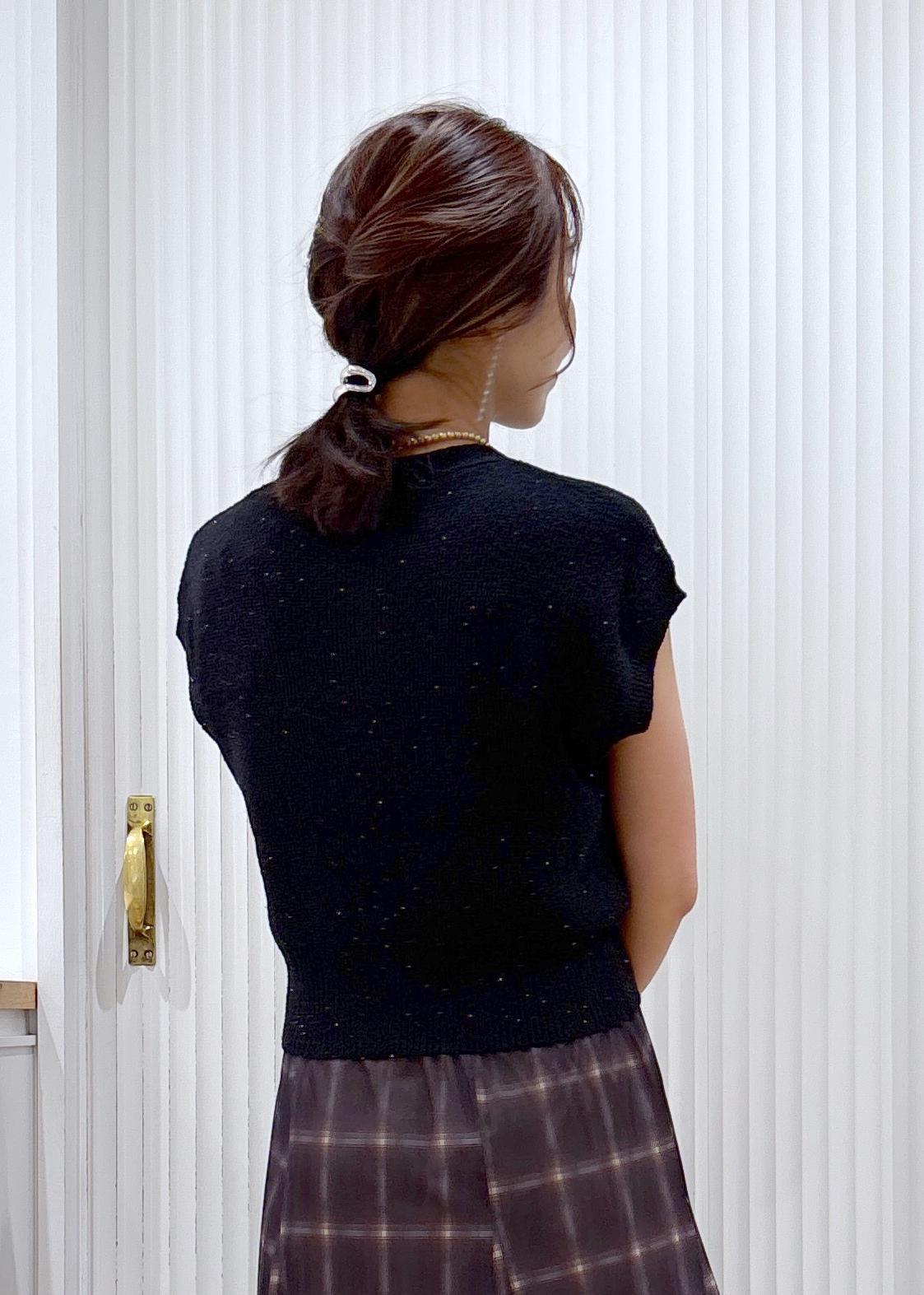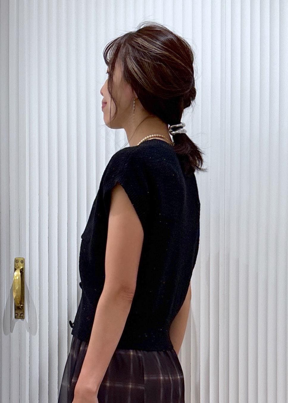 VISくるみ釦ニットトップスカーデ/洗えるブラック系 / F¥4,939レビュー身長164センチで腰骨ぐらいの着丈です。