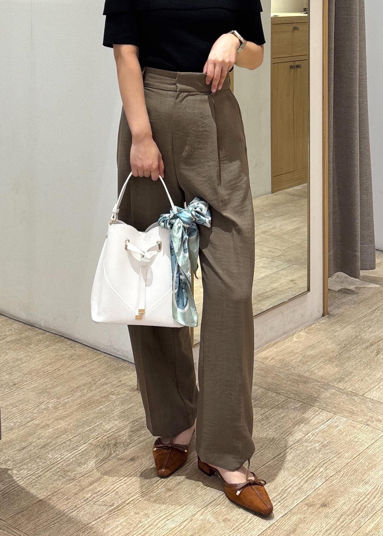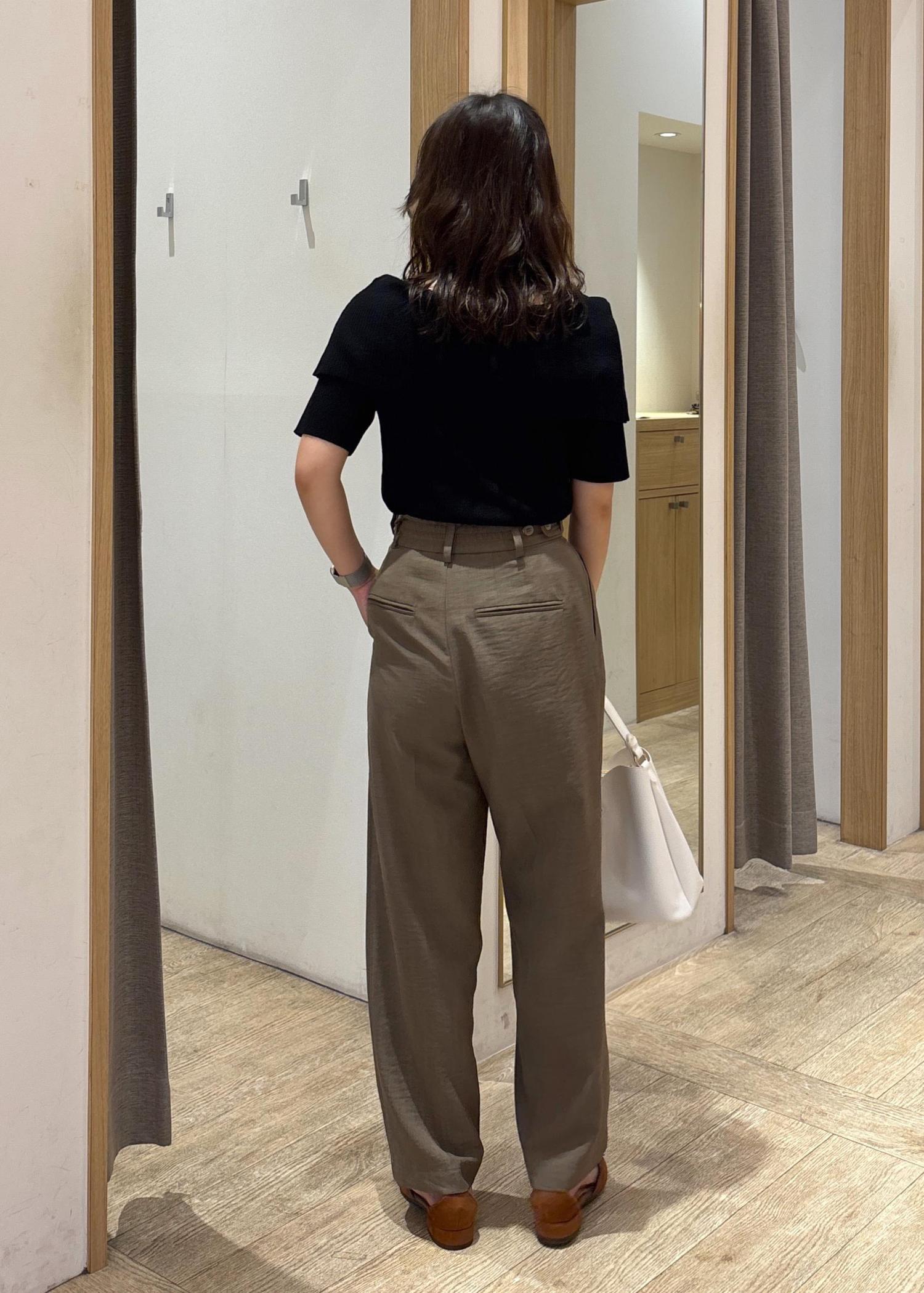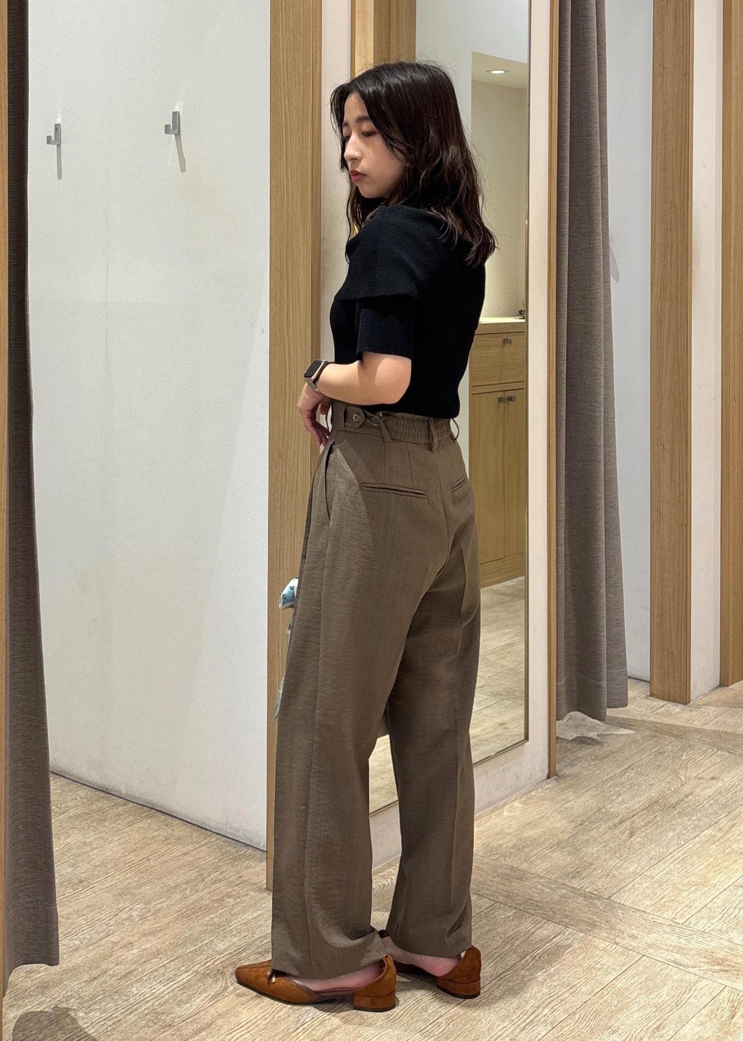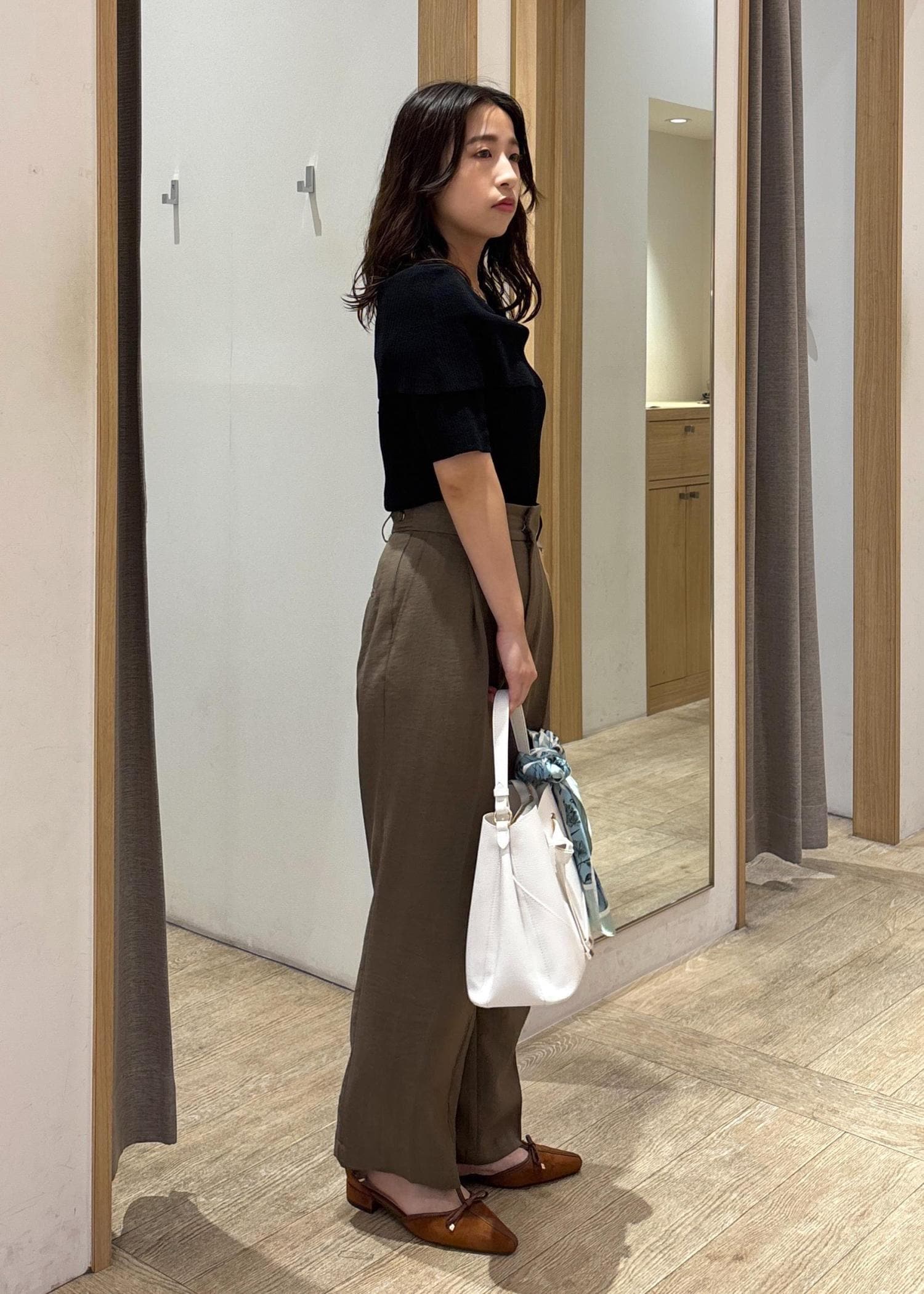 パンツはワイドすぎずスッキリ見えするので下重心にならず低身長もスタイルアップ。