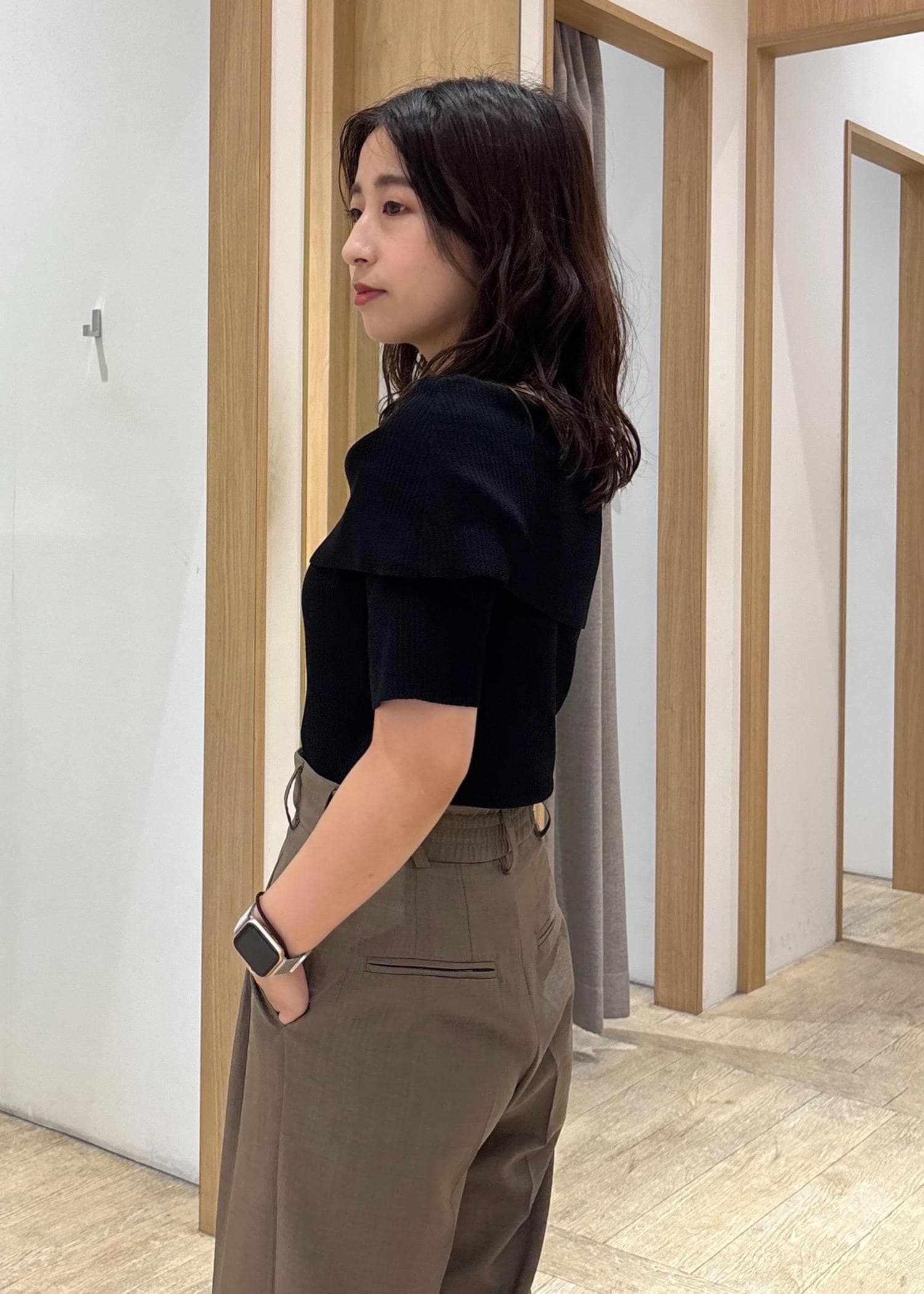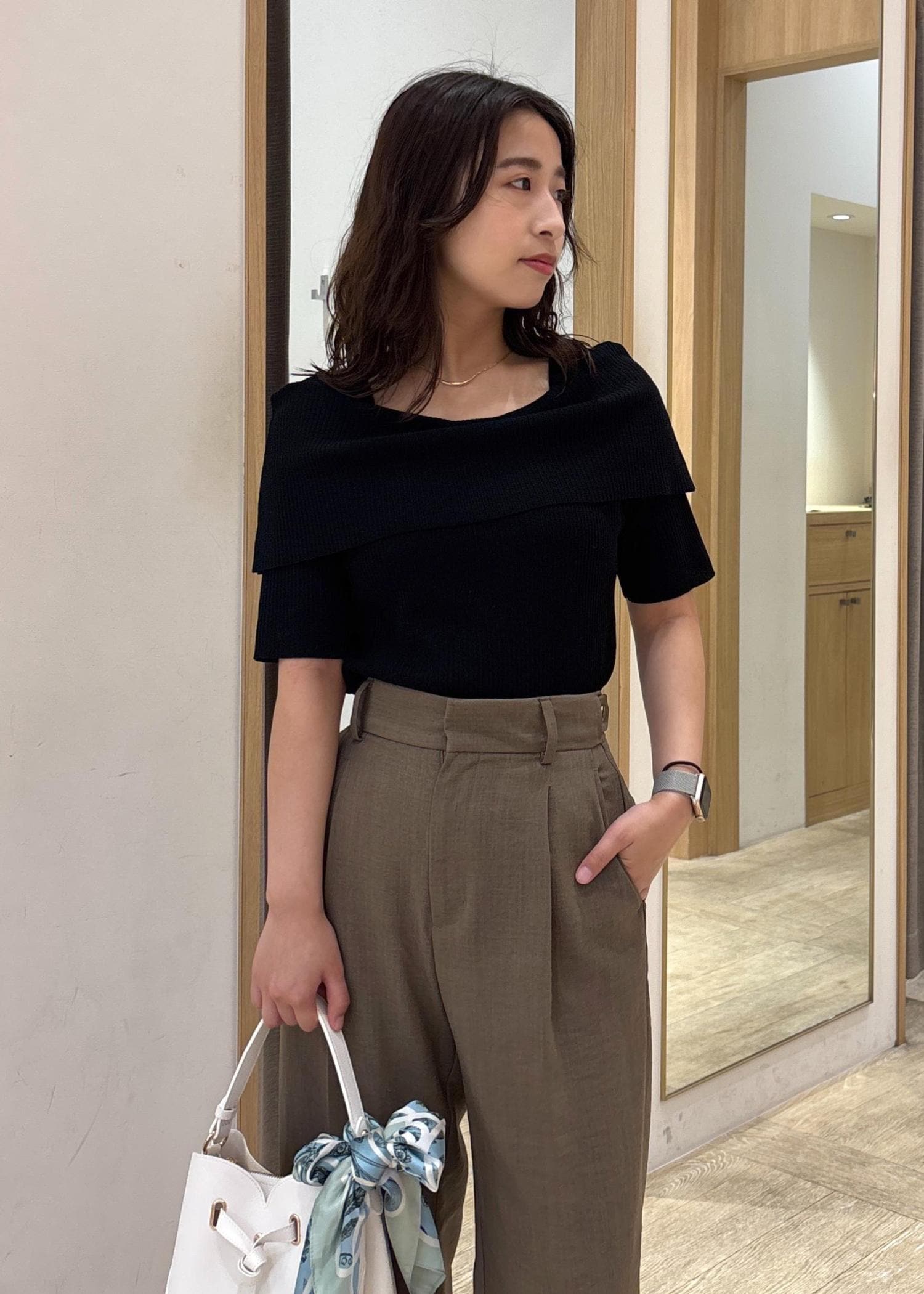 トップスはデコルテが綺麗に見えるので骨格ウェーブの華奢な鎖骨を見せるのにぴったり!