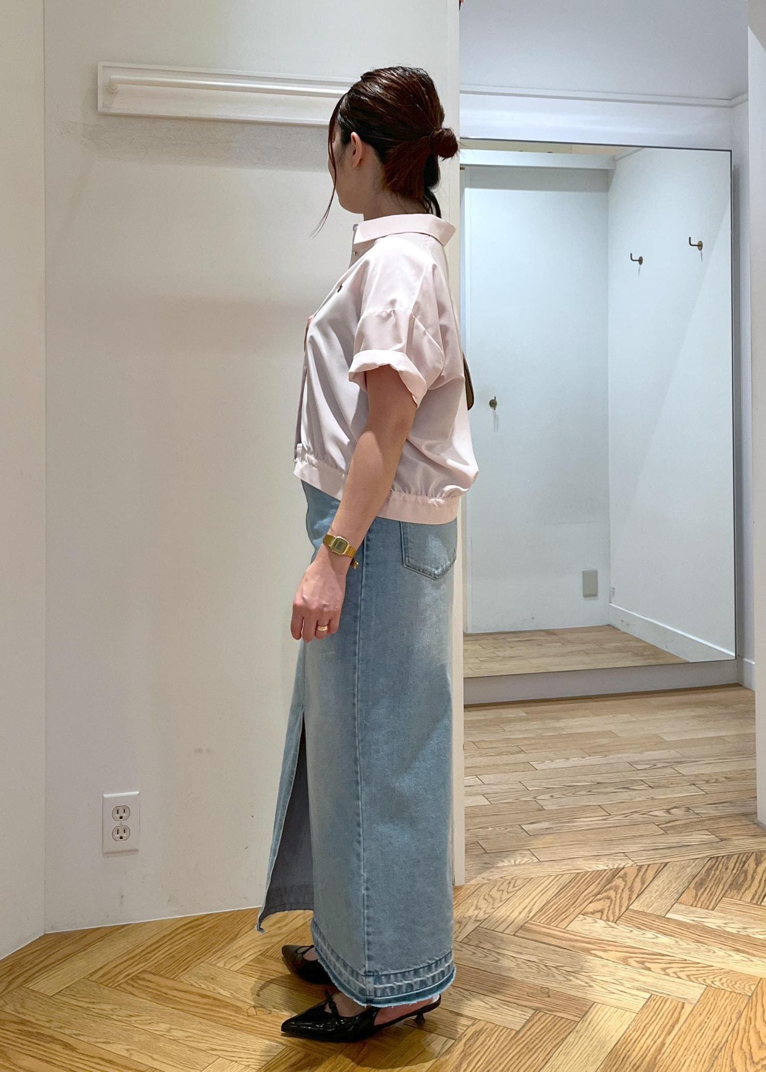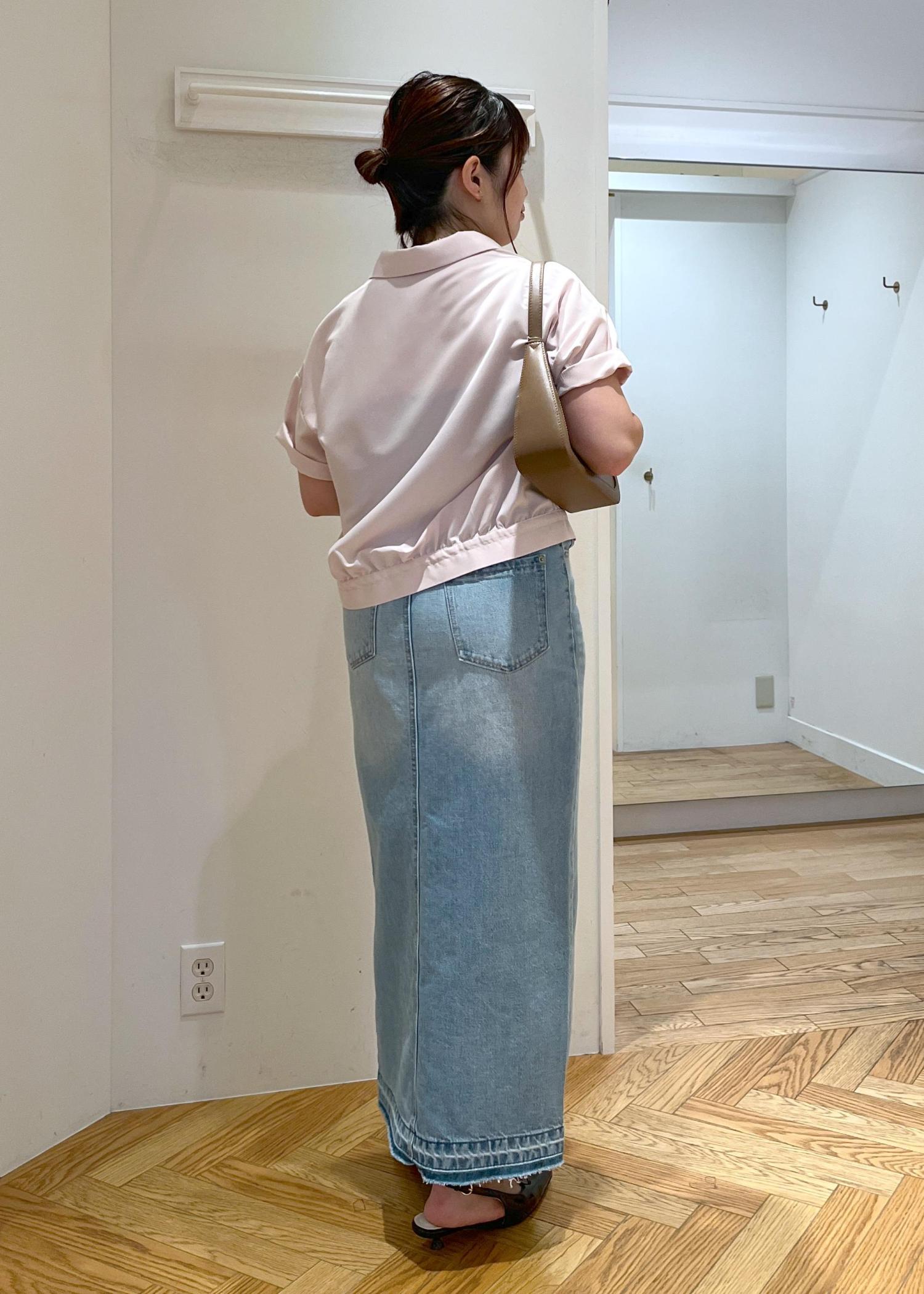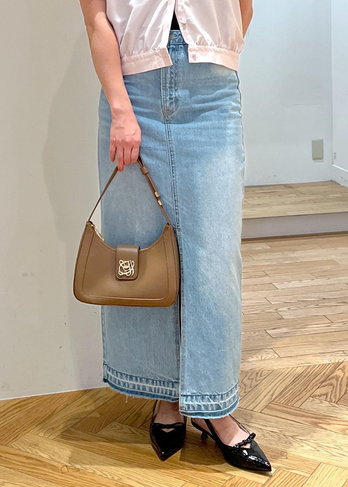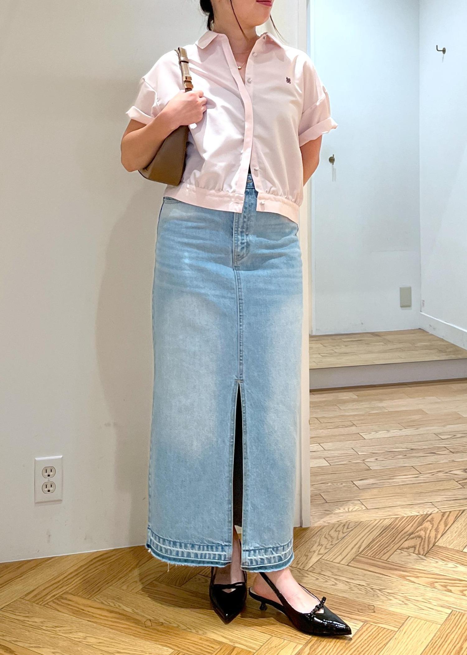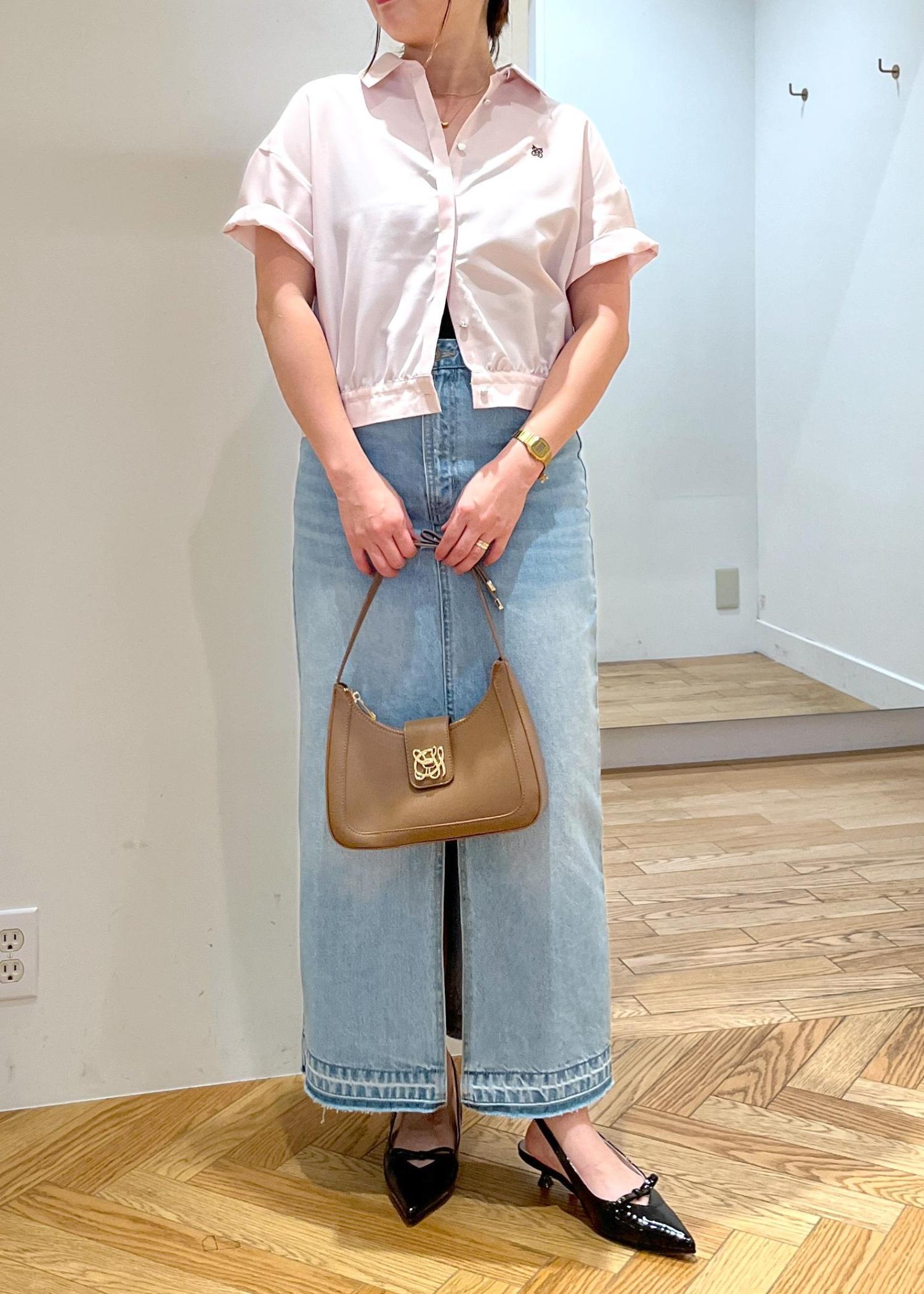 デニムスカートと合わせて、甘さを抑えつつ女性らしさも楽しめる、大人フェミニンコーデにまとめました♡