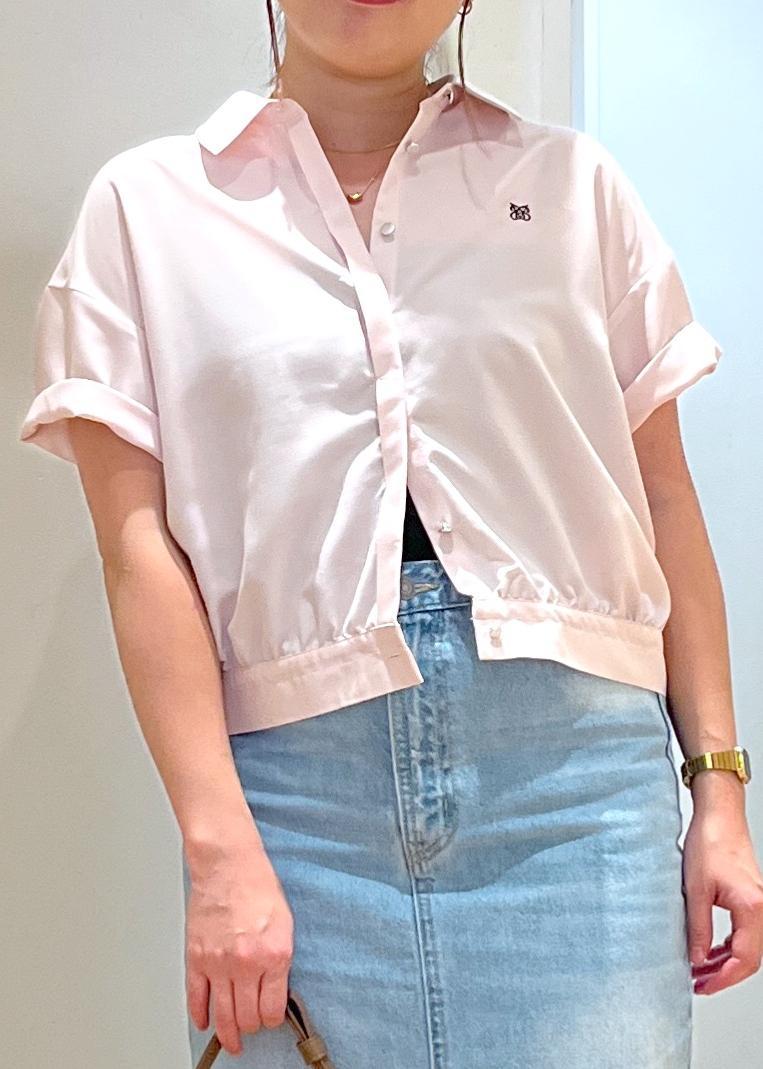 ピンクカラーがかわいいシャツを使ったコーディネートのご紹介です。