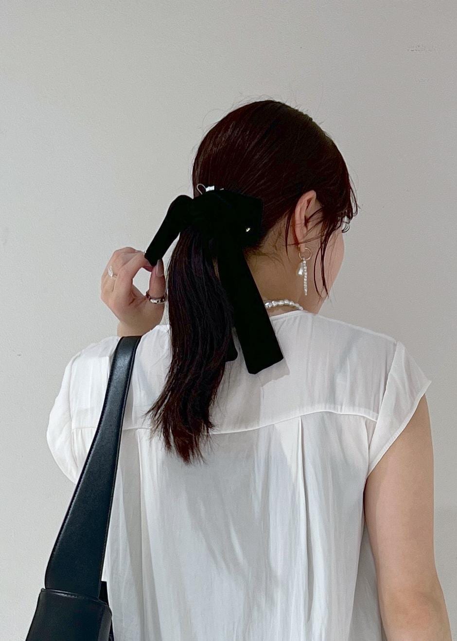VISベロアリボンヘアカフブラック / F¥2,189レビューくくった髪の毛に差し込むタイプなので、楽に付けれます◎