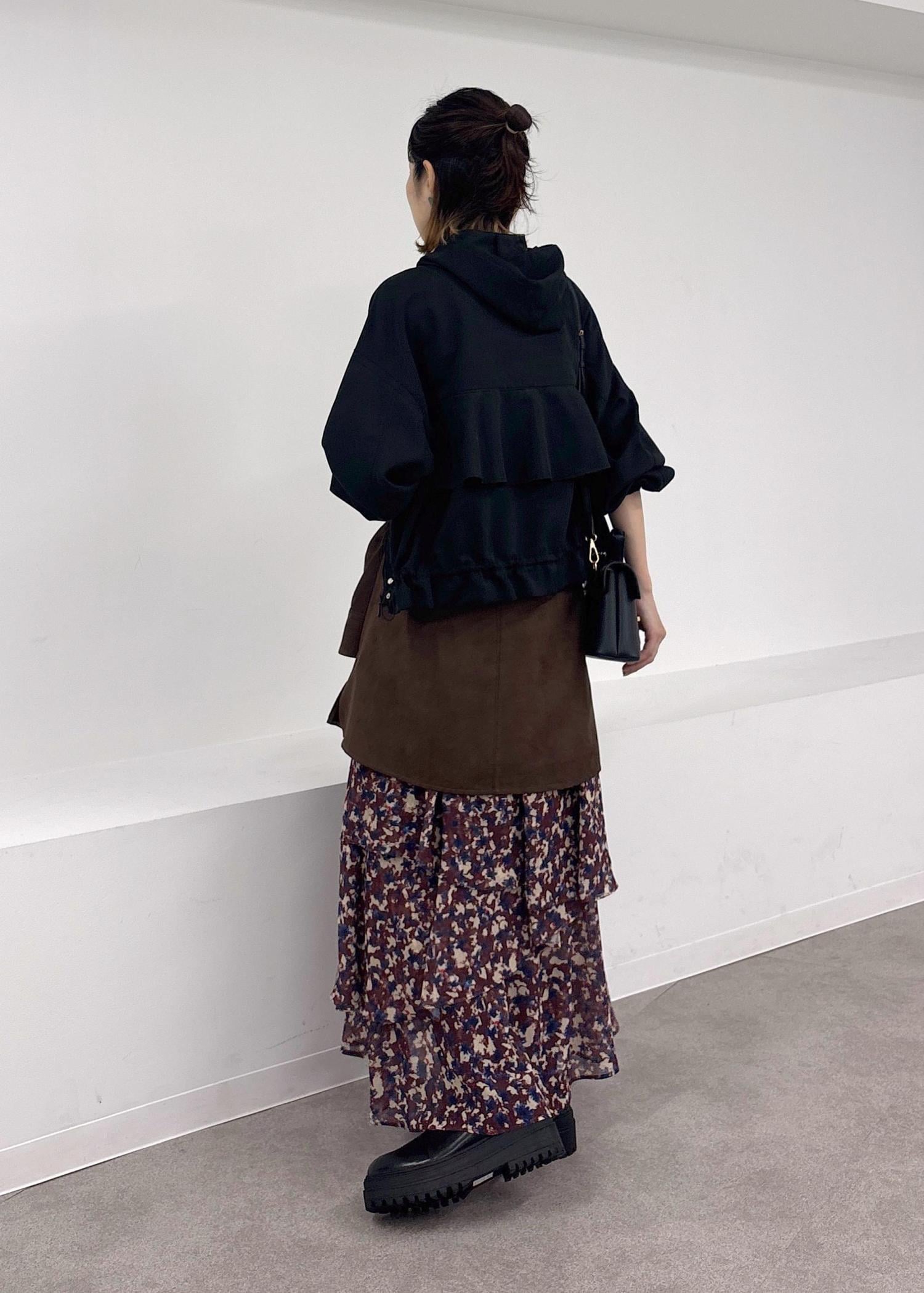 VIS【WEB限定】バックフリルライトフードブルゾンブラック / F¥3,845レビュー春夏大人気だったバックフリルブルゾンが秋バージョンで登場です♪ゆるめなシルエットですが、裾はドロスト使用でシルエットの変化を楽しめます◎初秋から着やすい軽めな素材で、チャックを閉じてジャケットと合わせたりと着回し◎全体的にゆったりめ、着丈は腰くらいの長さでした。