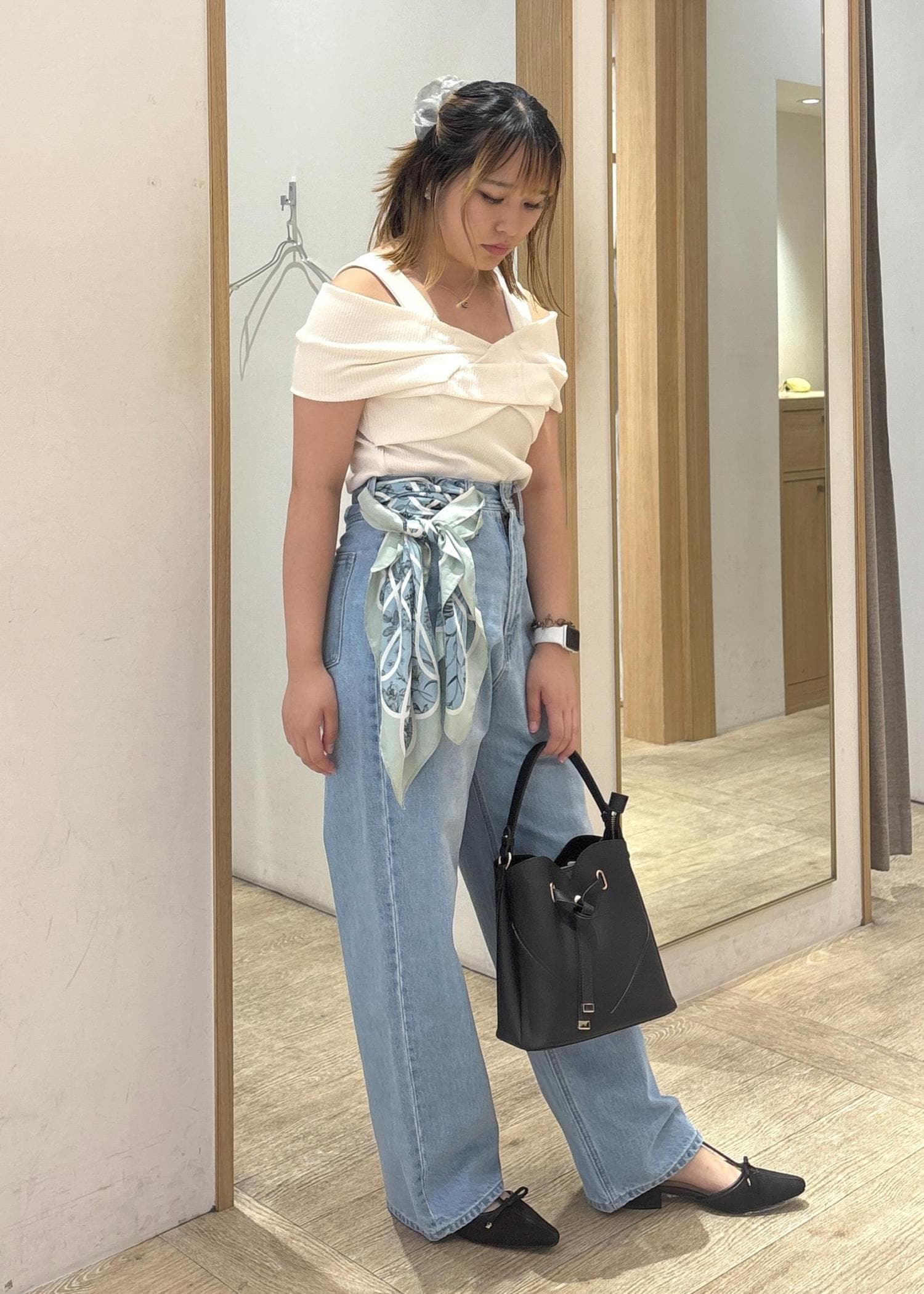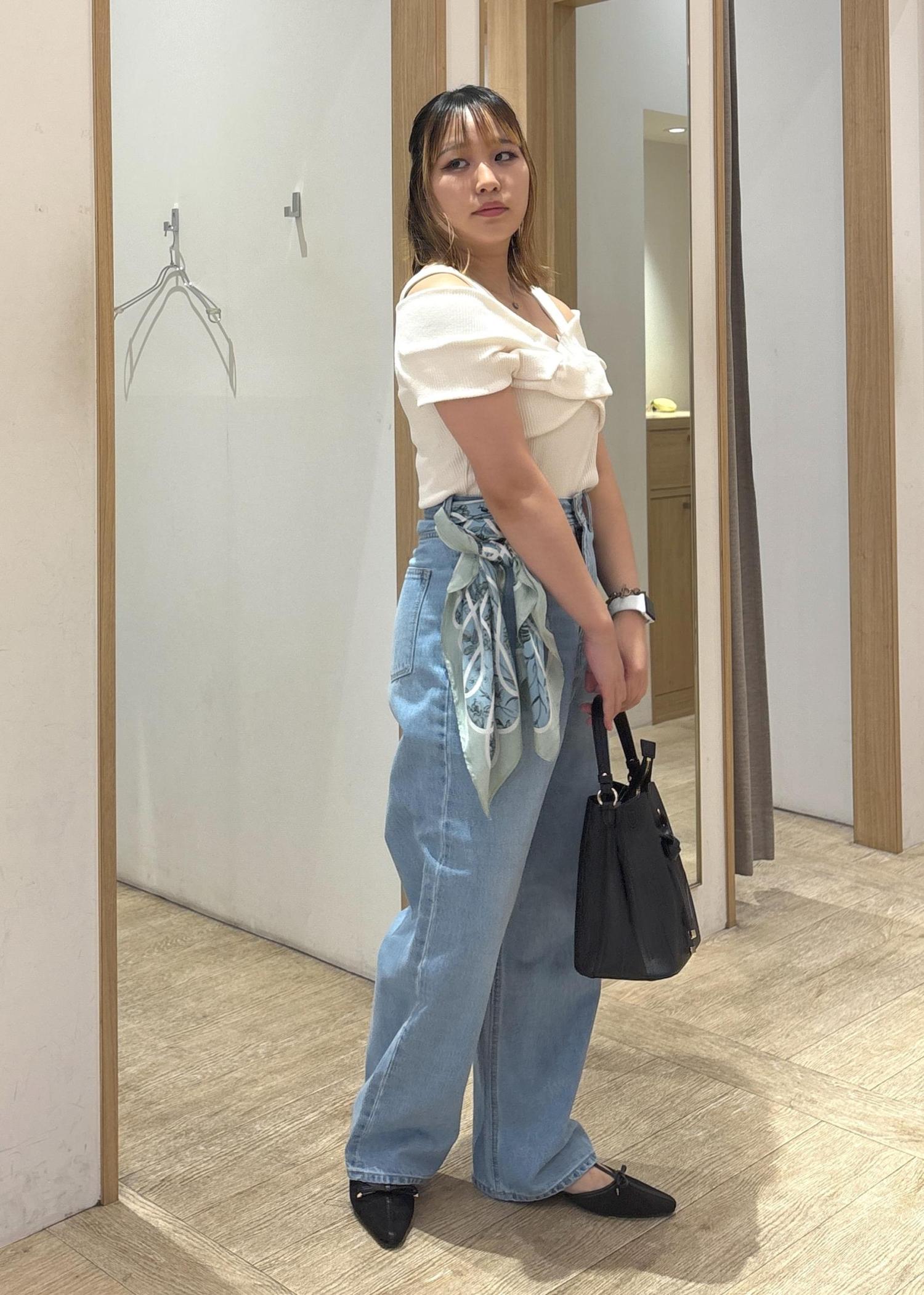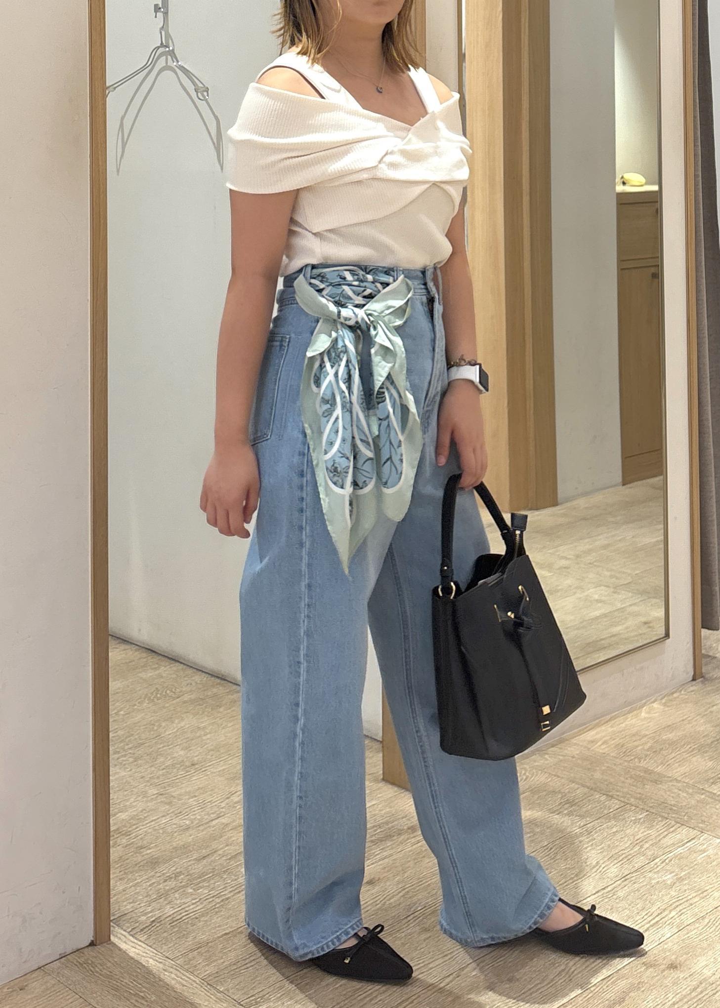 カジュアルコーデがスカーフ1枚で涼しげに大人っぽく見えるのでオススメです!