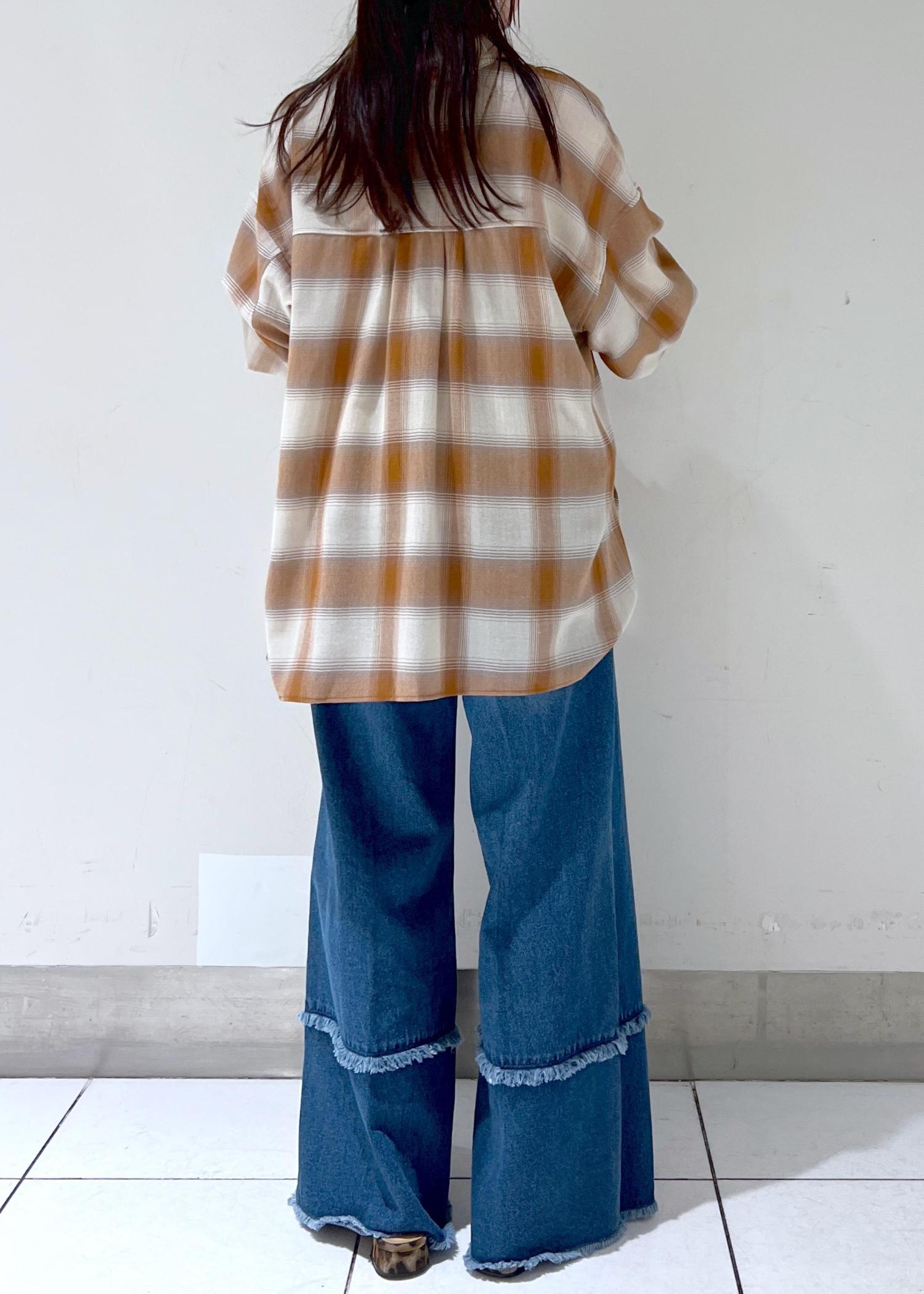 VISオンブレチェックオーバーシャツベージュ系 / F¥6,589レビュー152cmでヒップが隠れるくらいの長さでしたが、前が少し短めなのと、柔らかい肌馴染みの良い生地なので着られた感じにもなりにくく低身長でも抜け感が出て良かったです◎