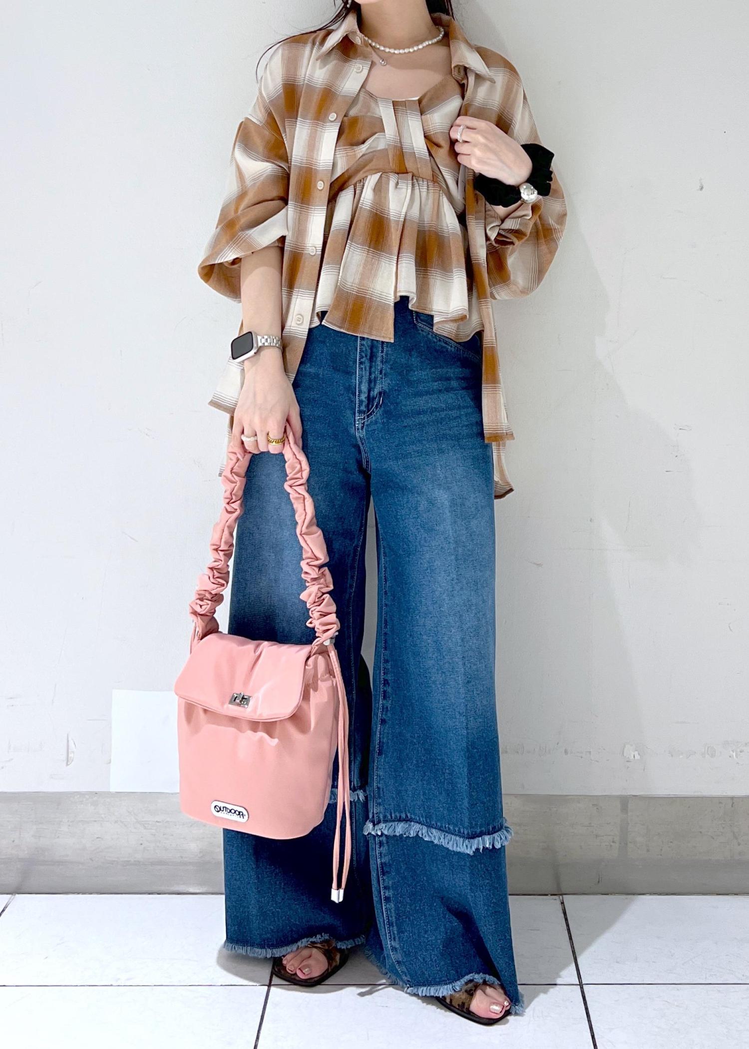 VISオンブレチェックリボンビスチェベージュ系 / F¥5,489レビュー肩の長さは調整できるタイプで、腰にかかるくらいの長さでした◎