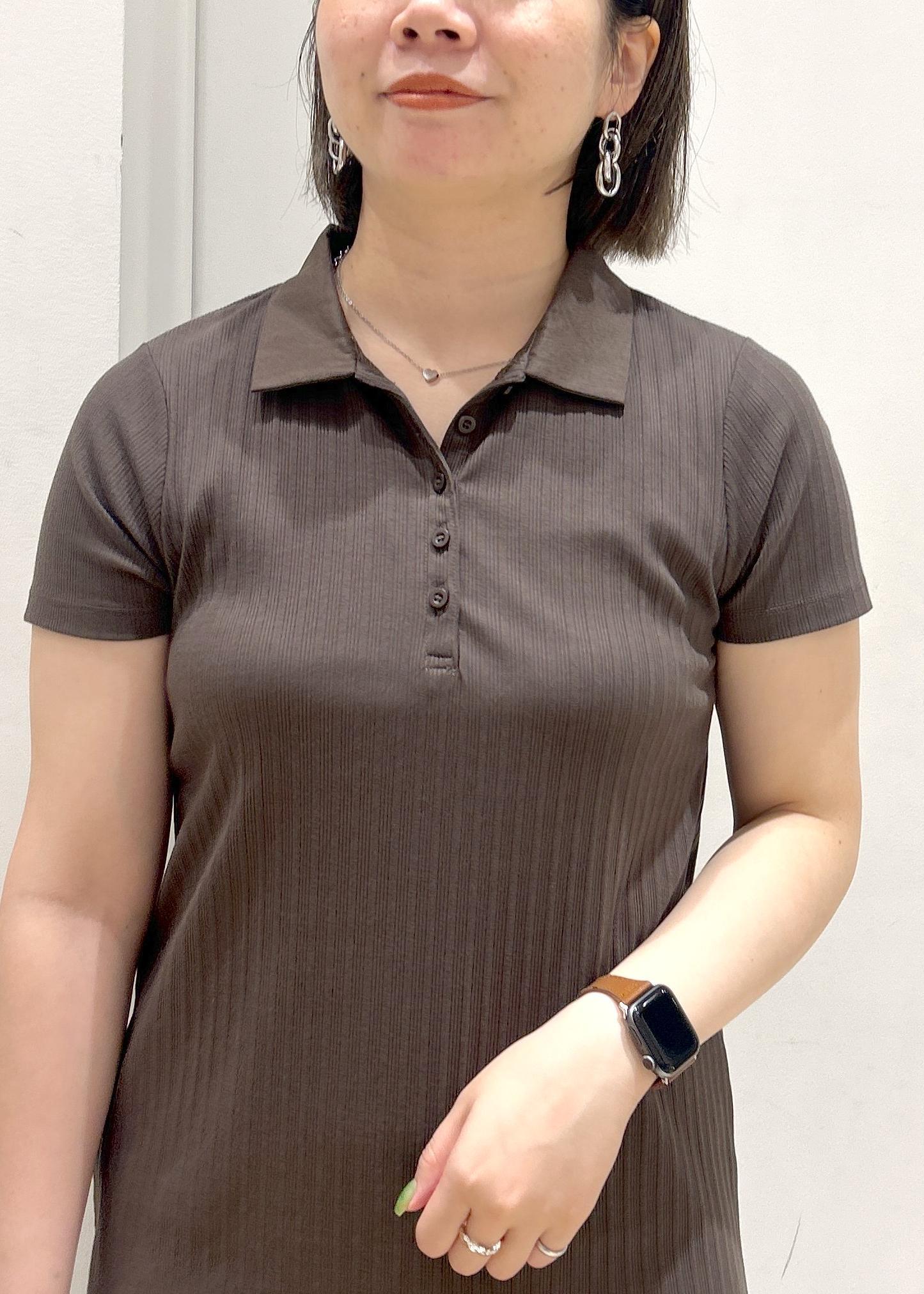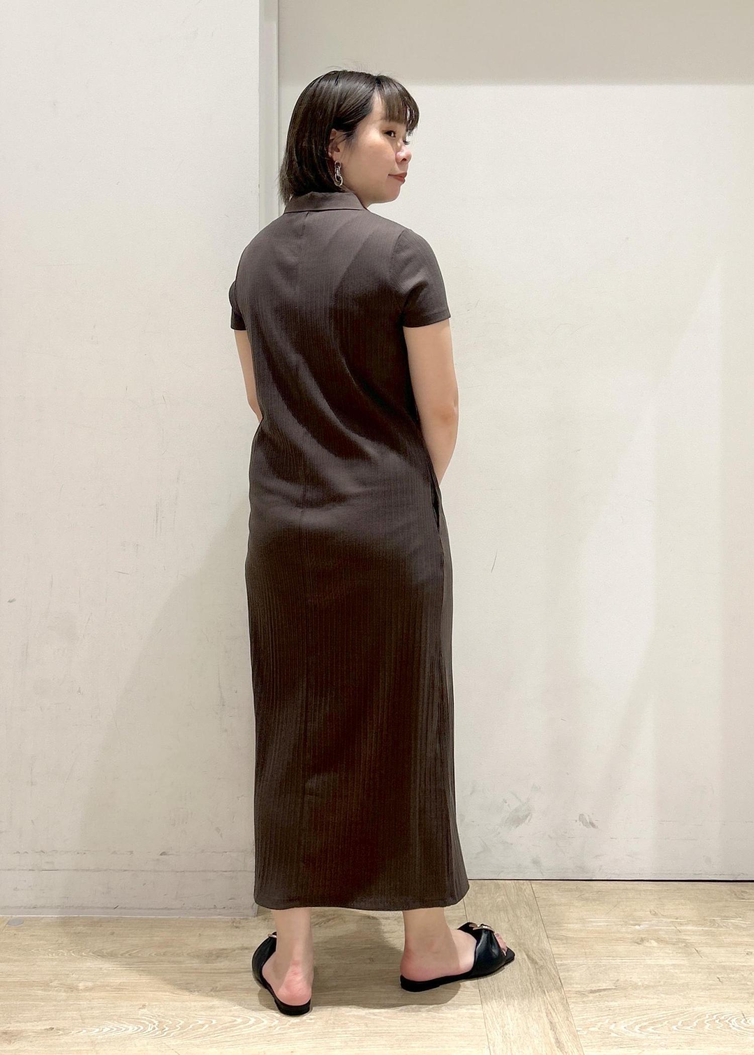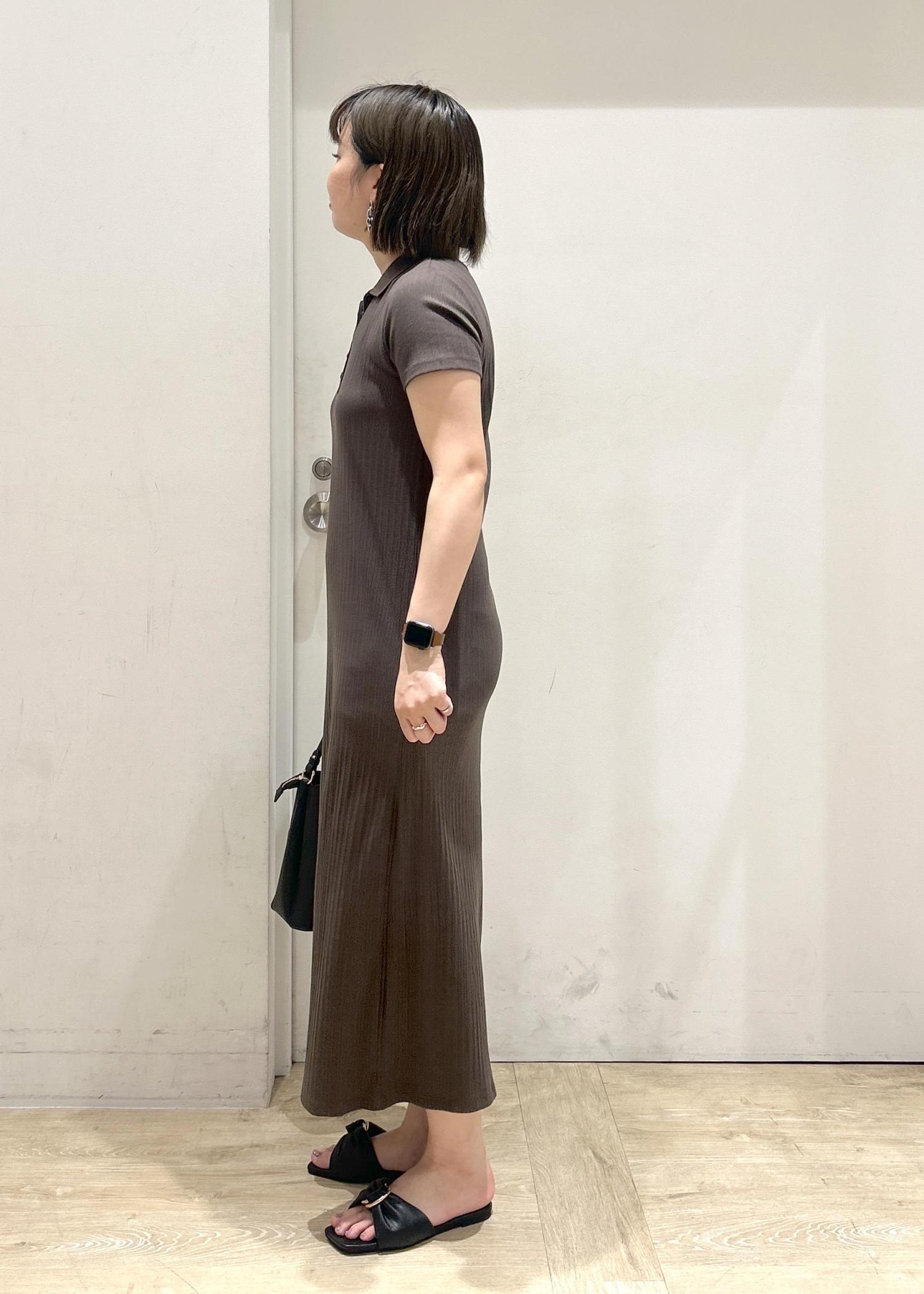 VISポロ衿ランダムリブワンピースダークブラウン / F¥4,612レビュー163cmでちょうど足首が見える着丈です。