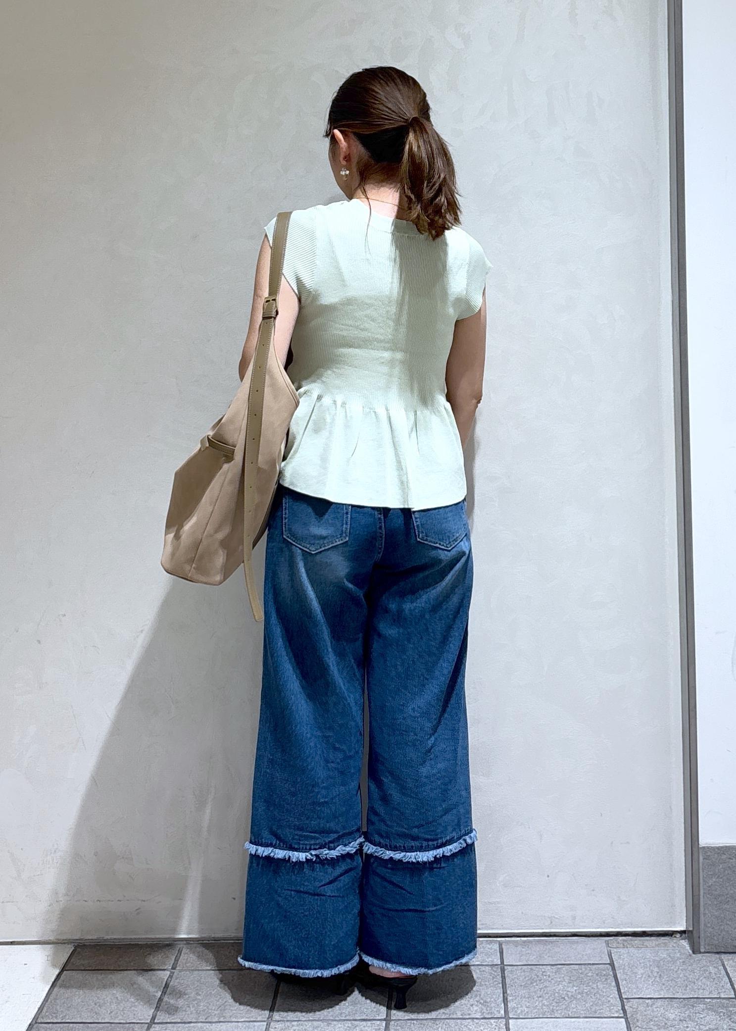 VIS【アンチピリング/洗える】美SMARTショートスリーブペプラムニットライトグリーン / F¥5,489レビューペプラムがふわっと広がりすぎないので